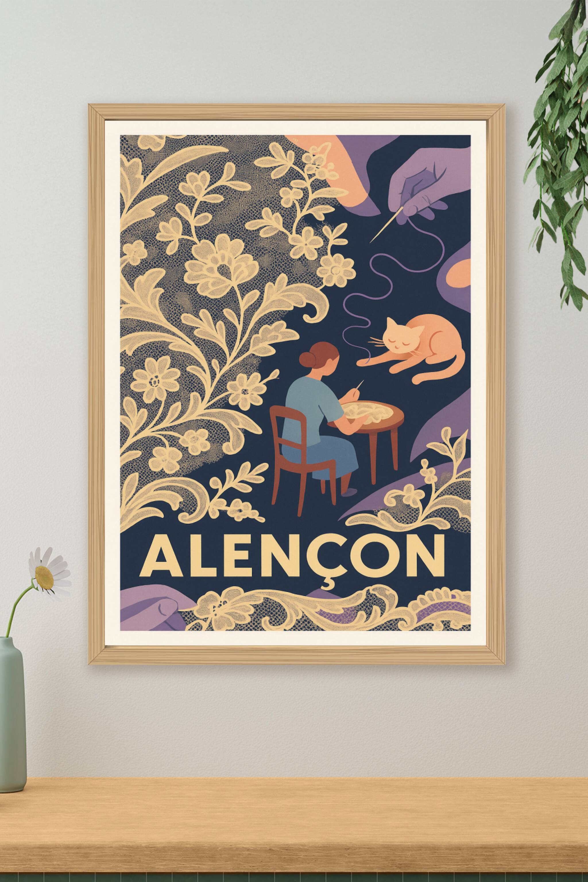 Célébrez le savoir-faire exceptionnel de la dentelle d’Alençon grâce à cette affiche illustrée à l’esthétique douce et poétique. Un hommage vibrant...