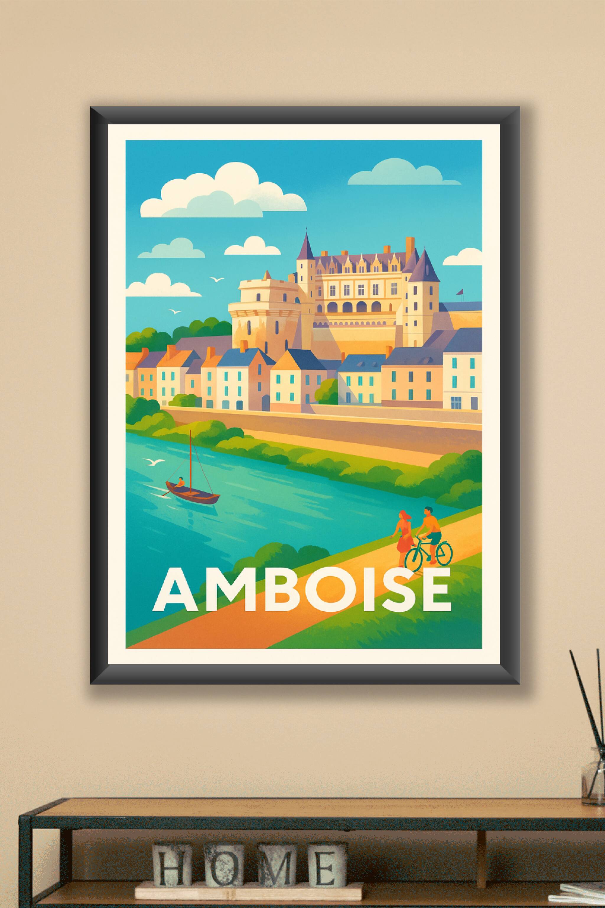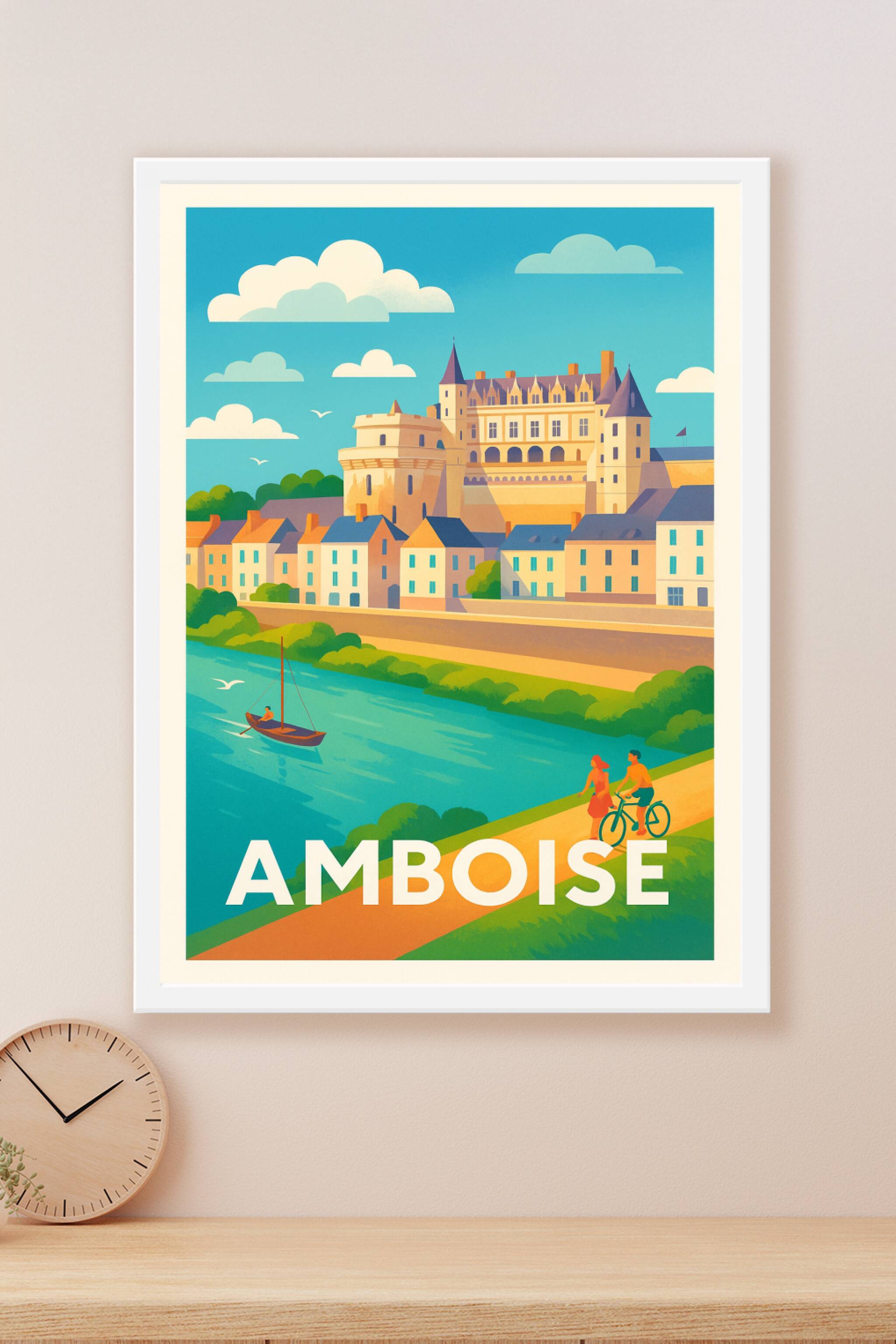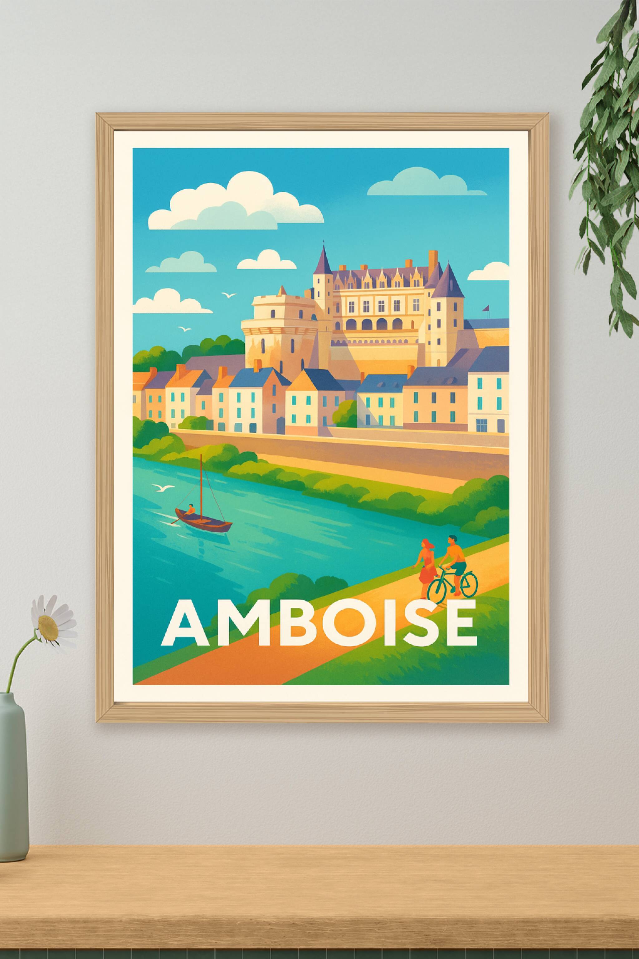 Laissez-vous séduire par la beauté intemporelle d’Amboise avec cette affiche décorative au style néo-rétro vibrant. Le célèbre château dominant la ...
