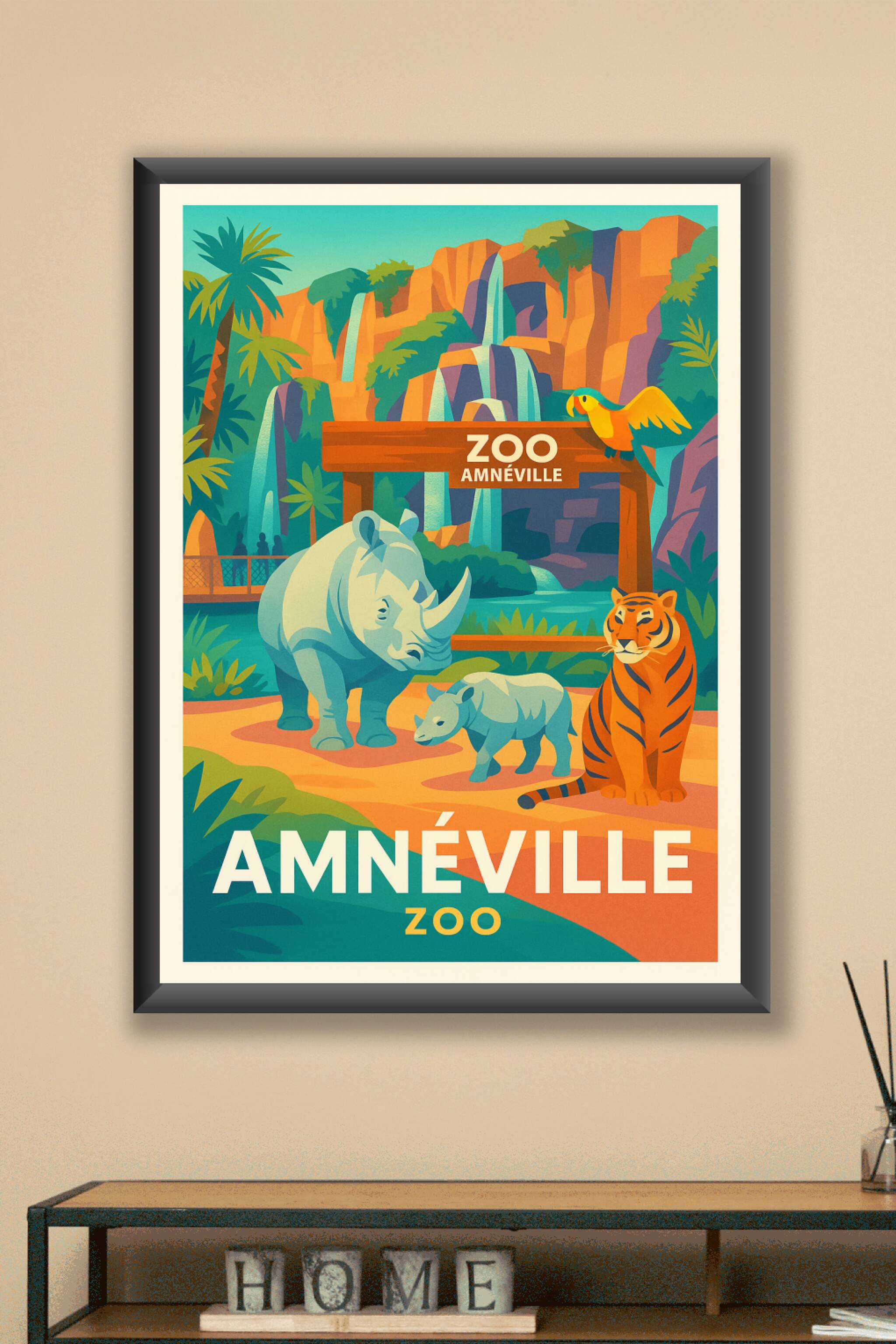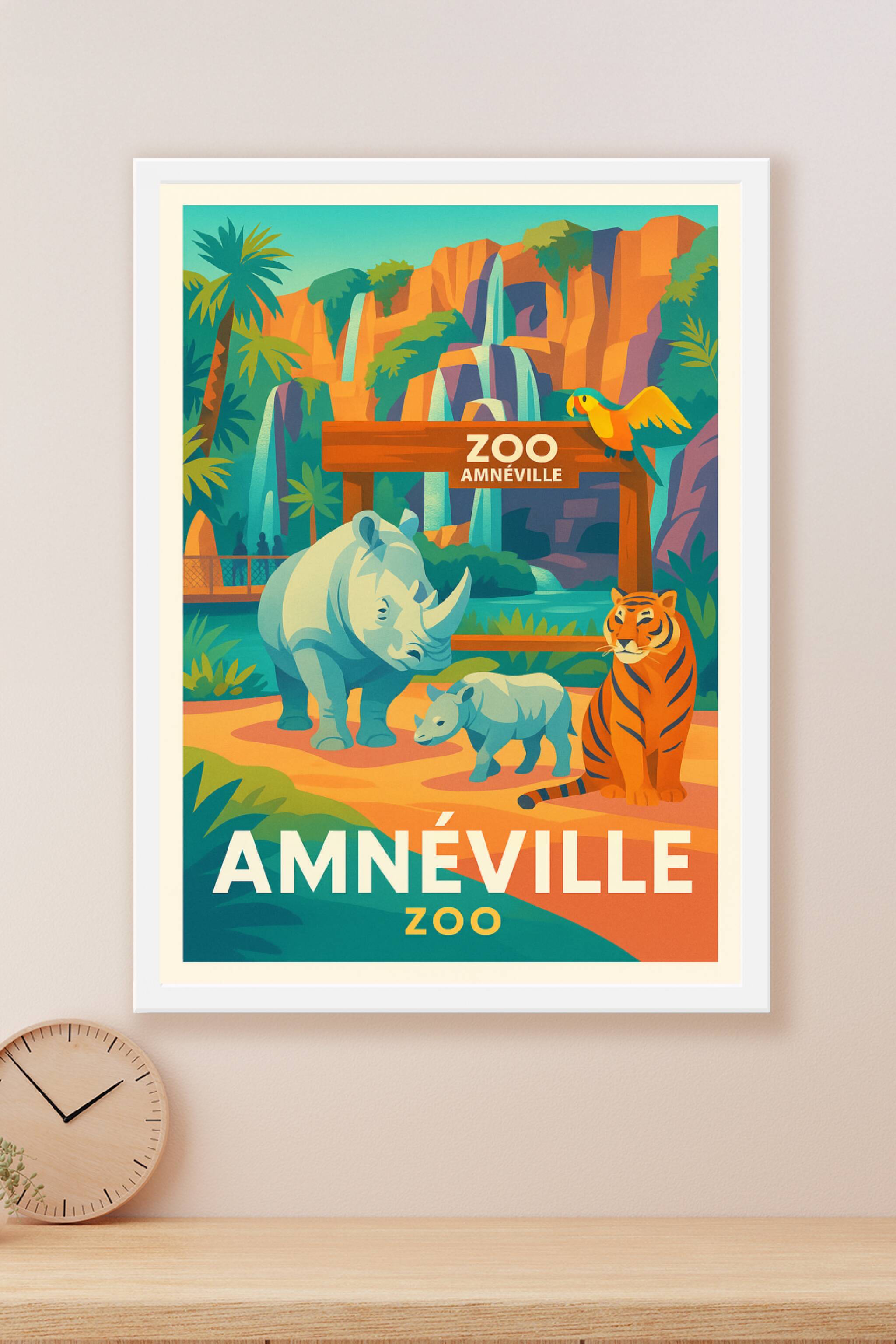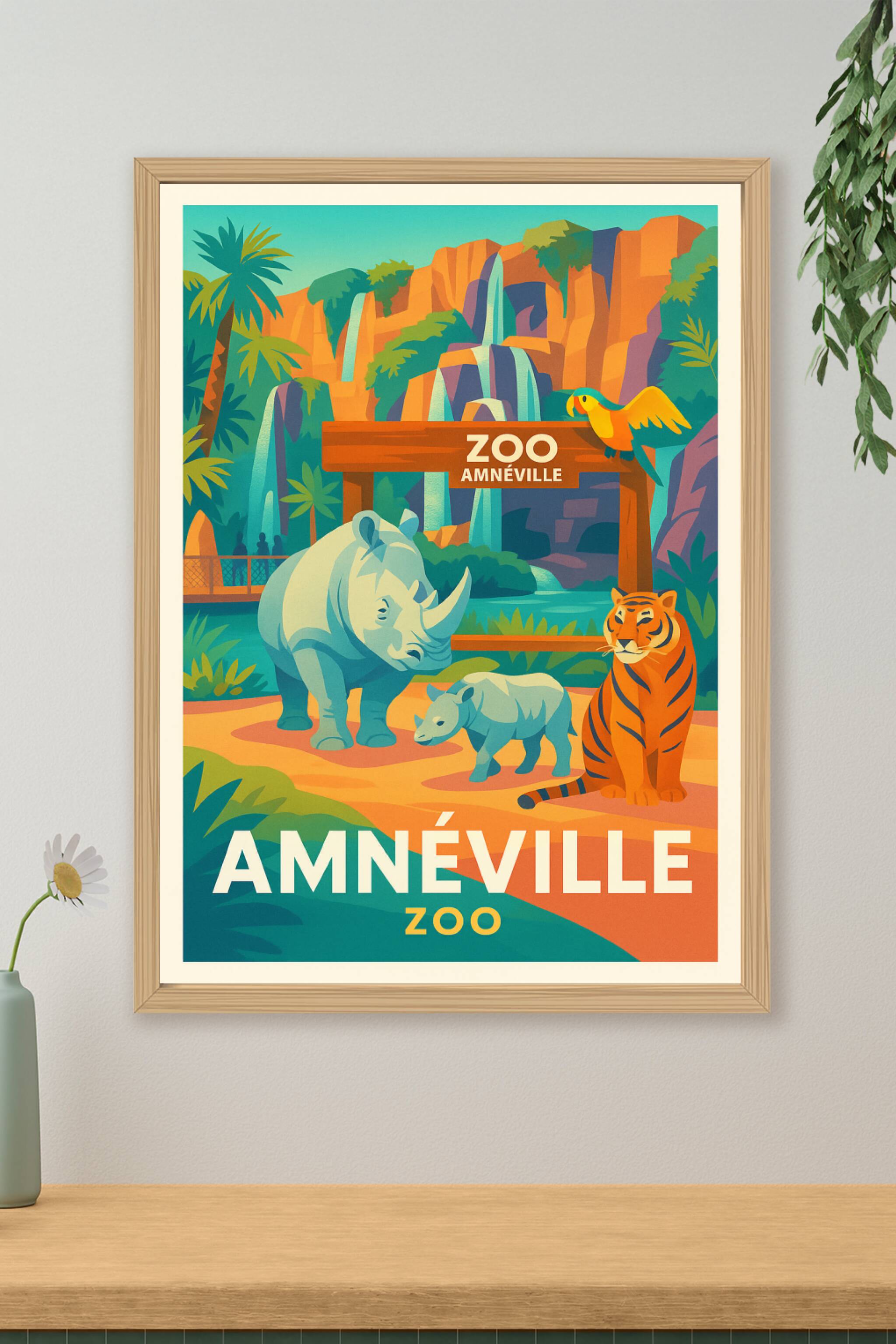 Découvrez l'univers vibrant et exotique du Zoo d'Amnéville avec cette affiche colorée et pleine de vie. Représentant des animaux iconiques comme le...