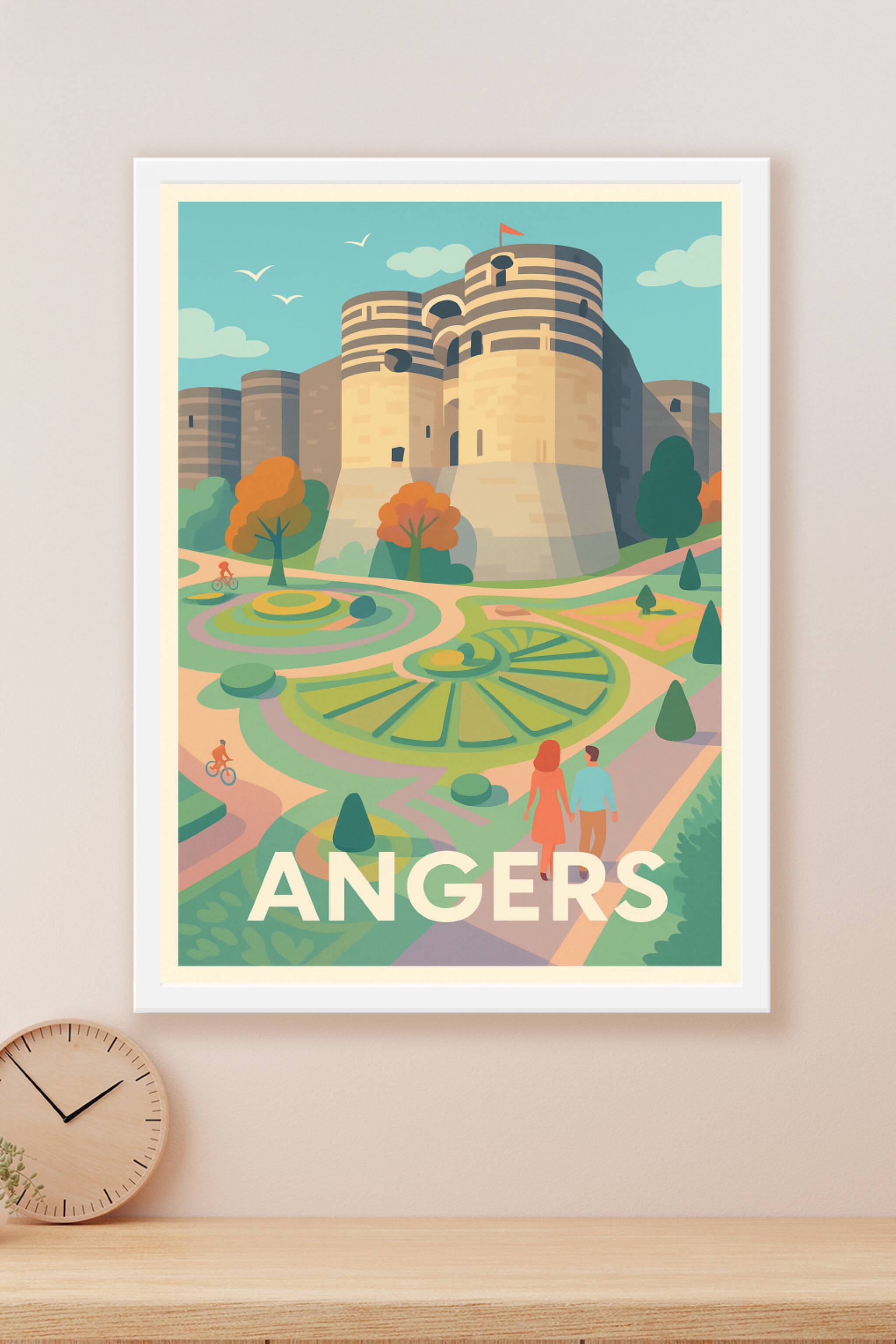 Découvrez la beauté intemporelle d'Angers avec cette affiche illustrée mettant en scène le célèbre château et ses jardins raffinés. Cette création ...