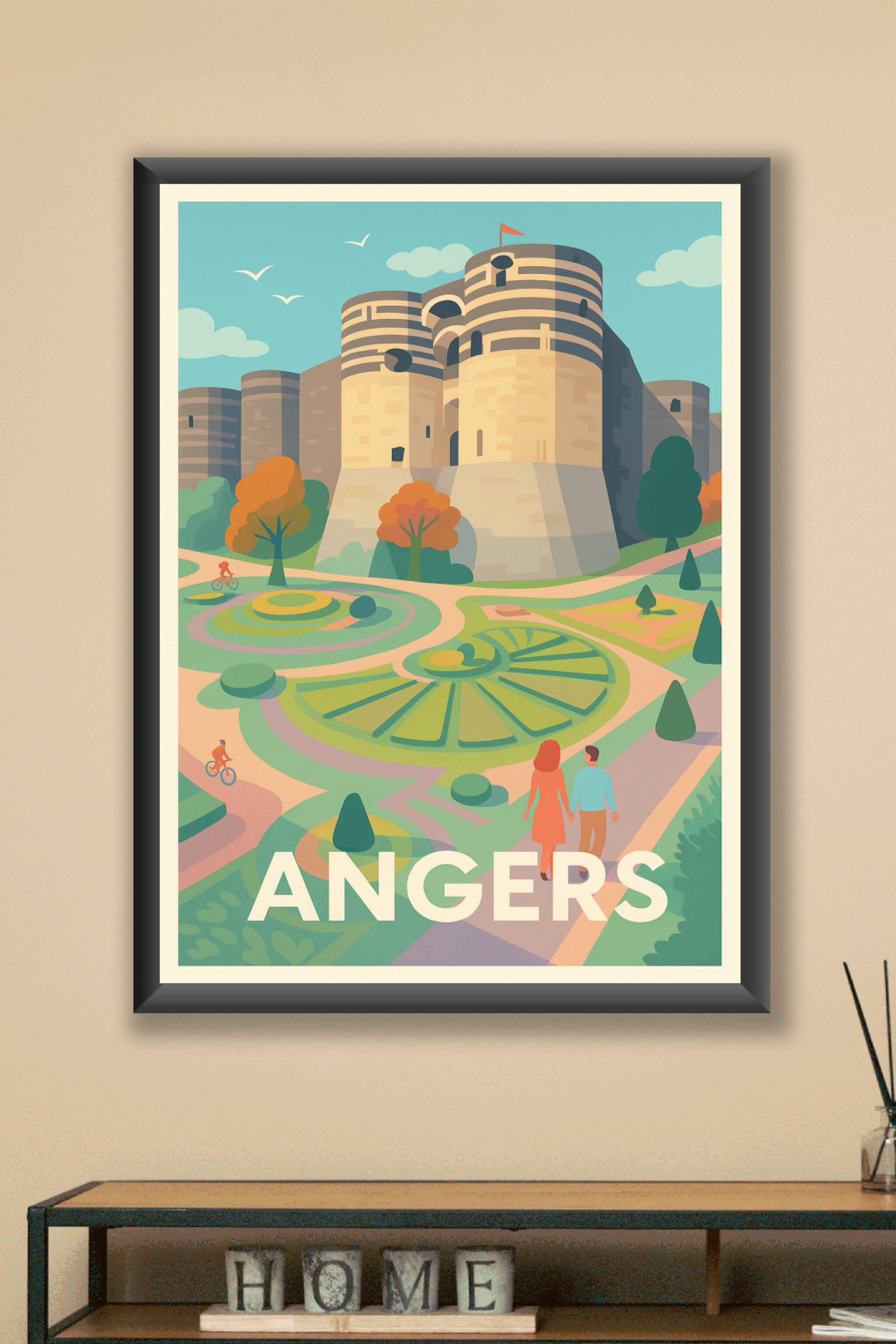 Découvrez la beauté intemporelle d'Angers avec cette affiche illustrée mettant en scène le célèbre château et ses jardins raffinés. Cette création au style vintage captivant offre une immersion dans l'architecture majestueuse et la nature apaisante de la ville.Ce poster est réalisé en tirage "Fine Art" sur papier 305g coton de qualité supérieure, garantissant des couleurs éclatantes et une texture luxueuse. Disponible en formats A1 à A4, avec ou sans cadre, cette affiche est parfaite pour embellir votre intérieur ou offrir un cadeau original aux passionnés de patrimoine.Offrez-vous une décoration élégante et artisanale, 100% fabriquée en France, pour revivre l'esprit d'Angers au quotidien.
