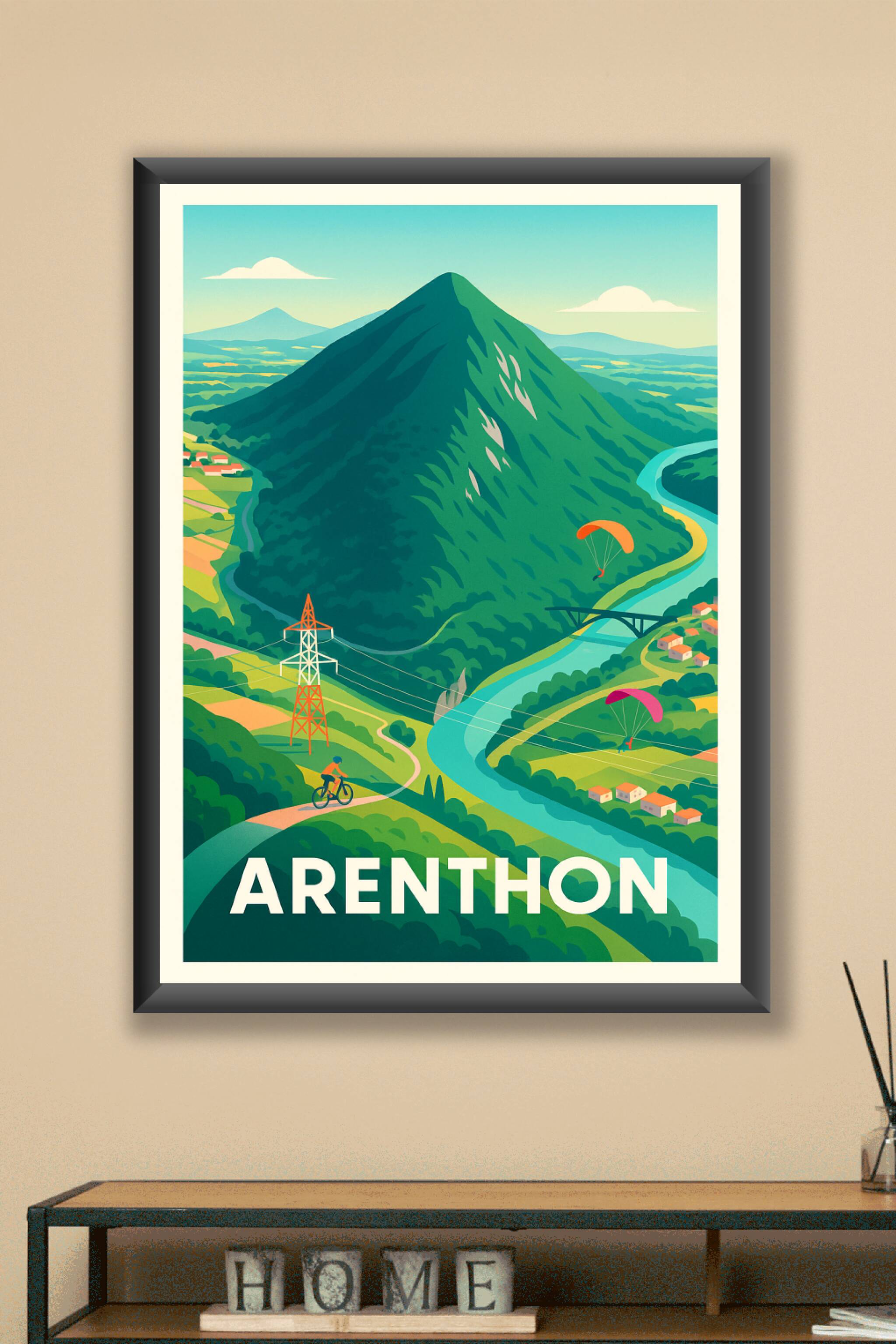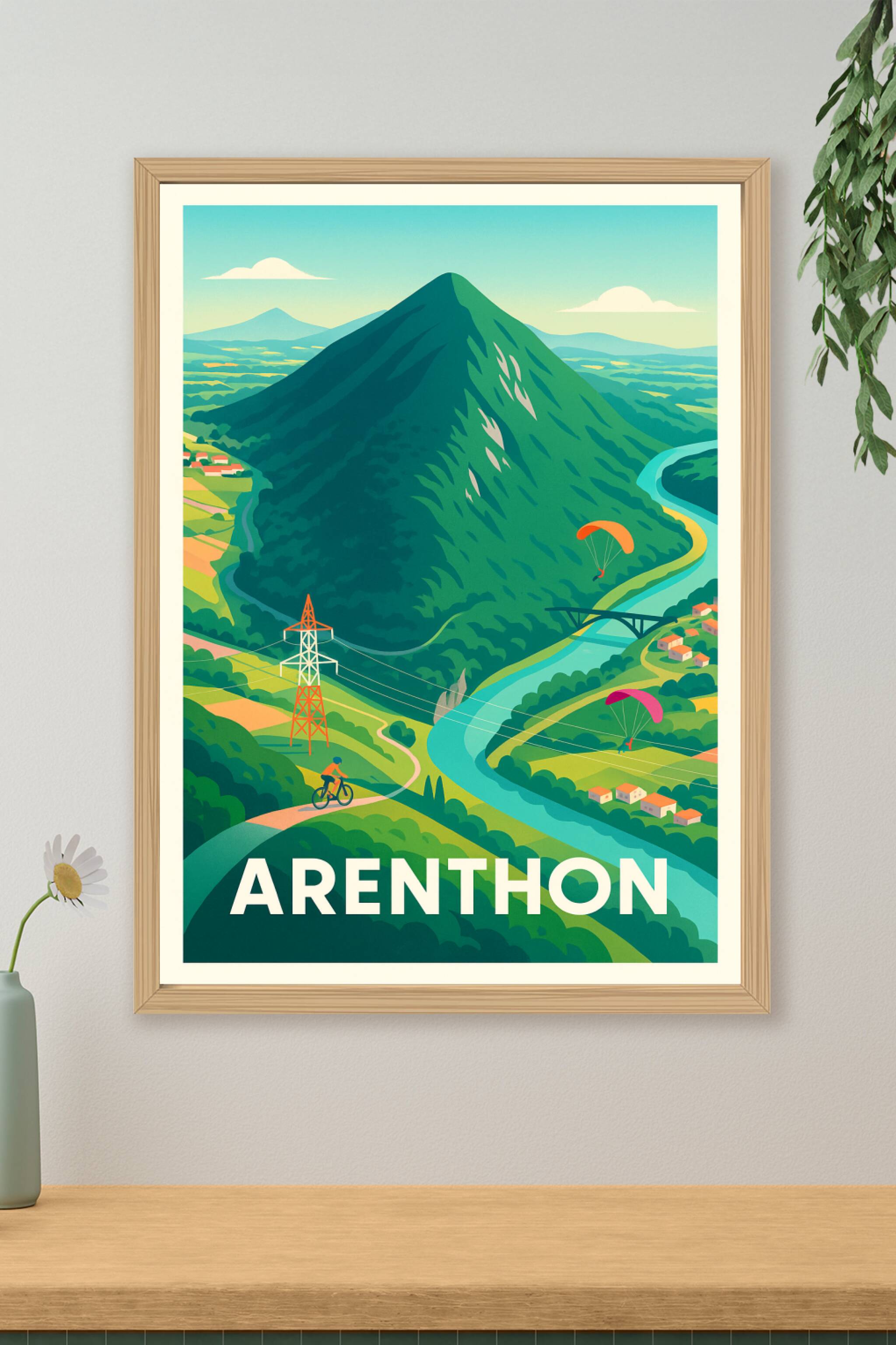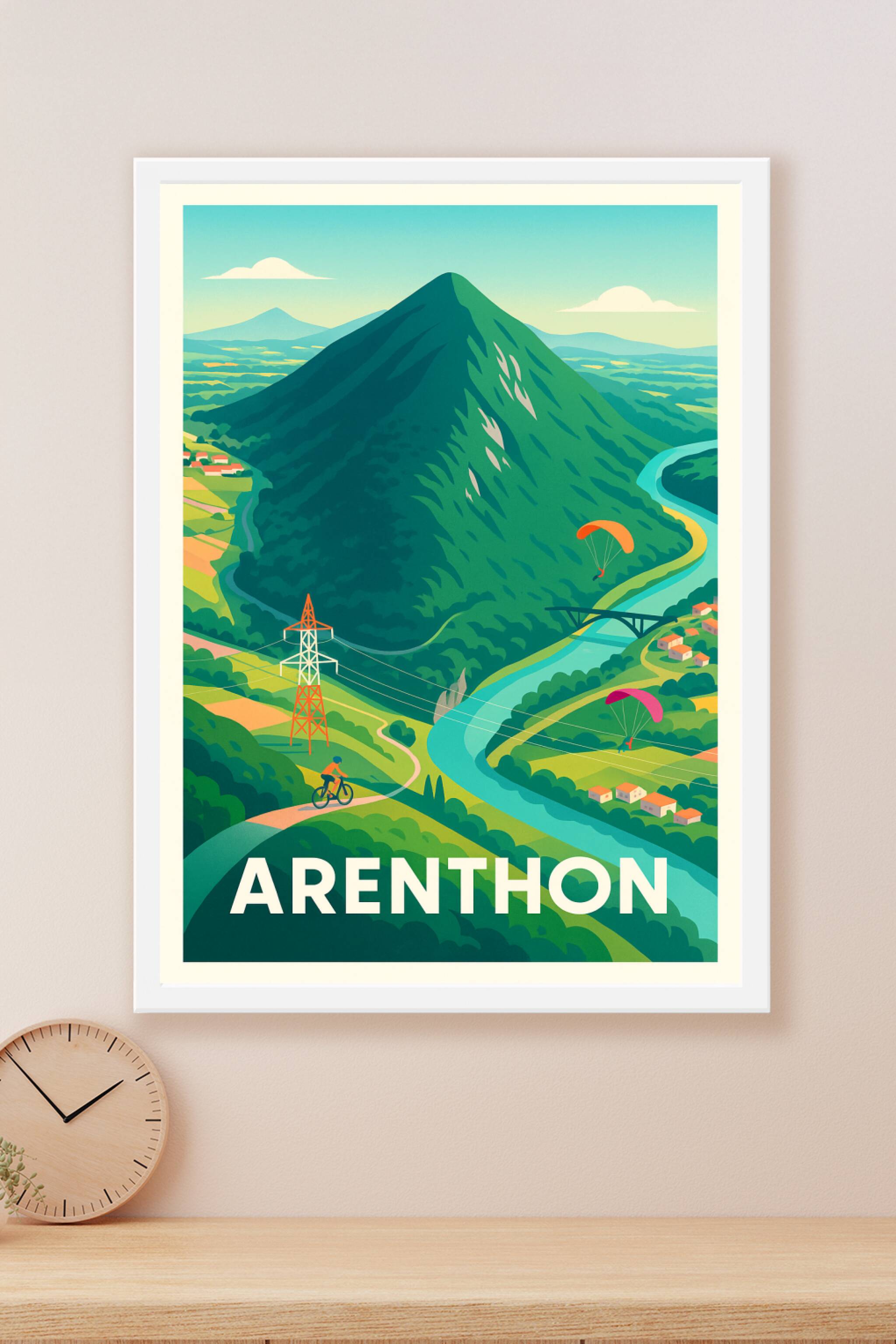 Découvrez la beauté naturelle d'Arenthon avec ce poster illustré mettant en avant ses paysages montagneux, sa rivière sinueuse et les activités de ...