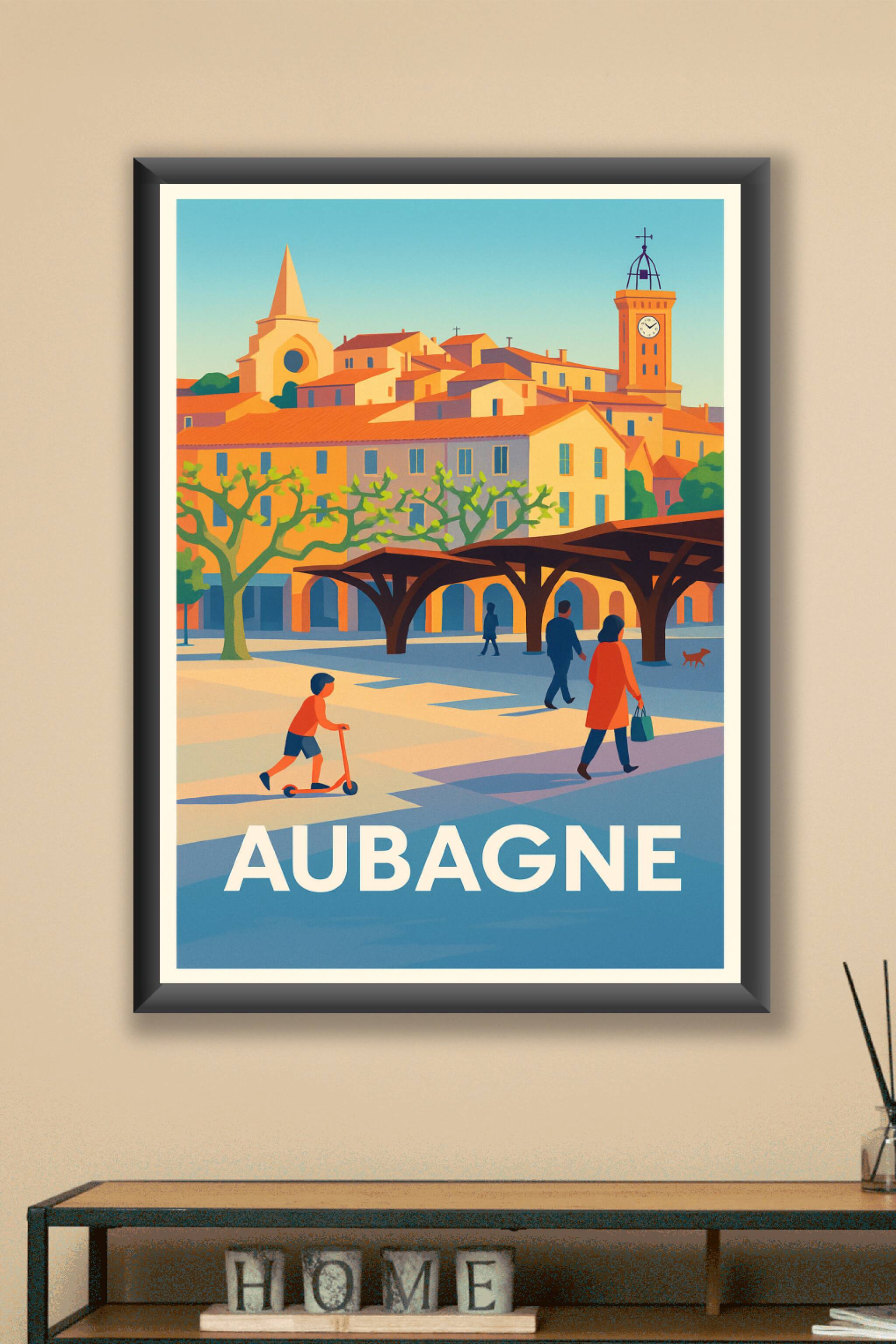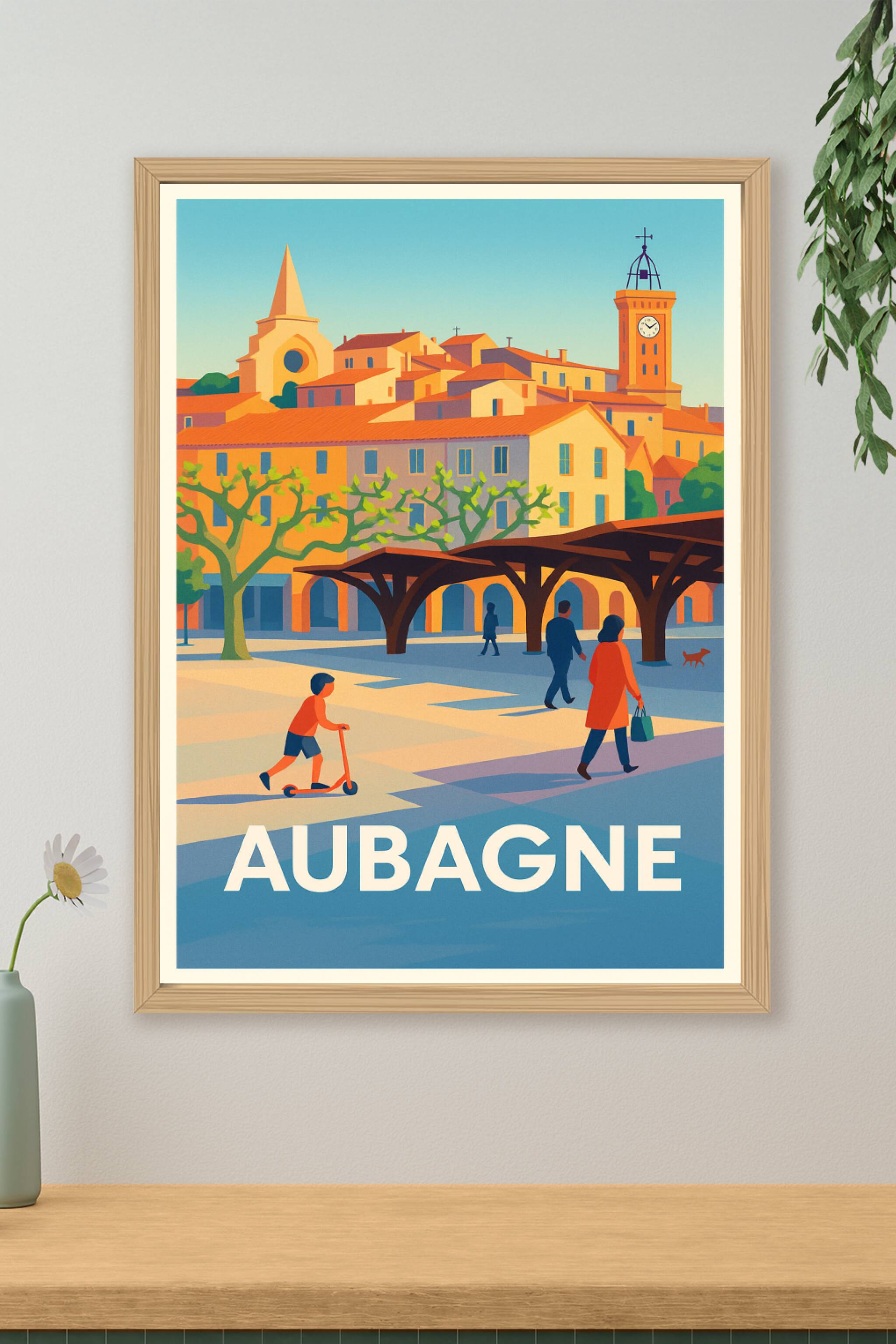 Découvrez toute la douceur de vivre provençale avec ce poster illustré d’Aubagne. Entre ruelles typiques, clochers charmants et vie de village anim...