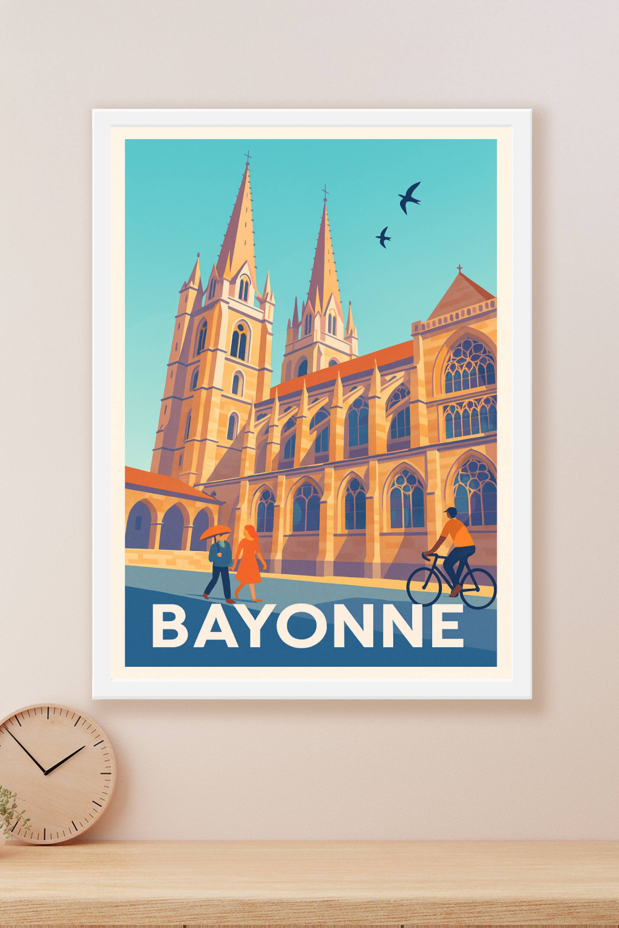 Affiche de Bayonne - Charme gothique entre ciel bleu et traditions
