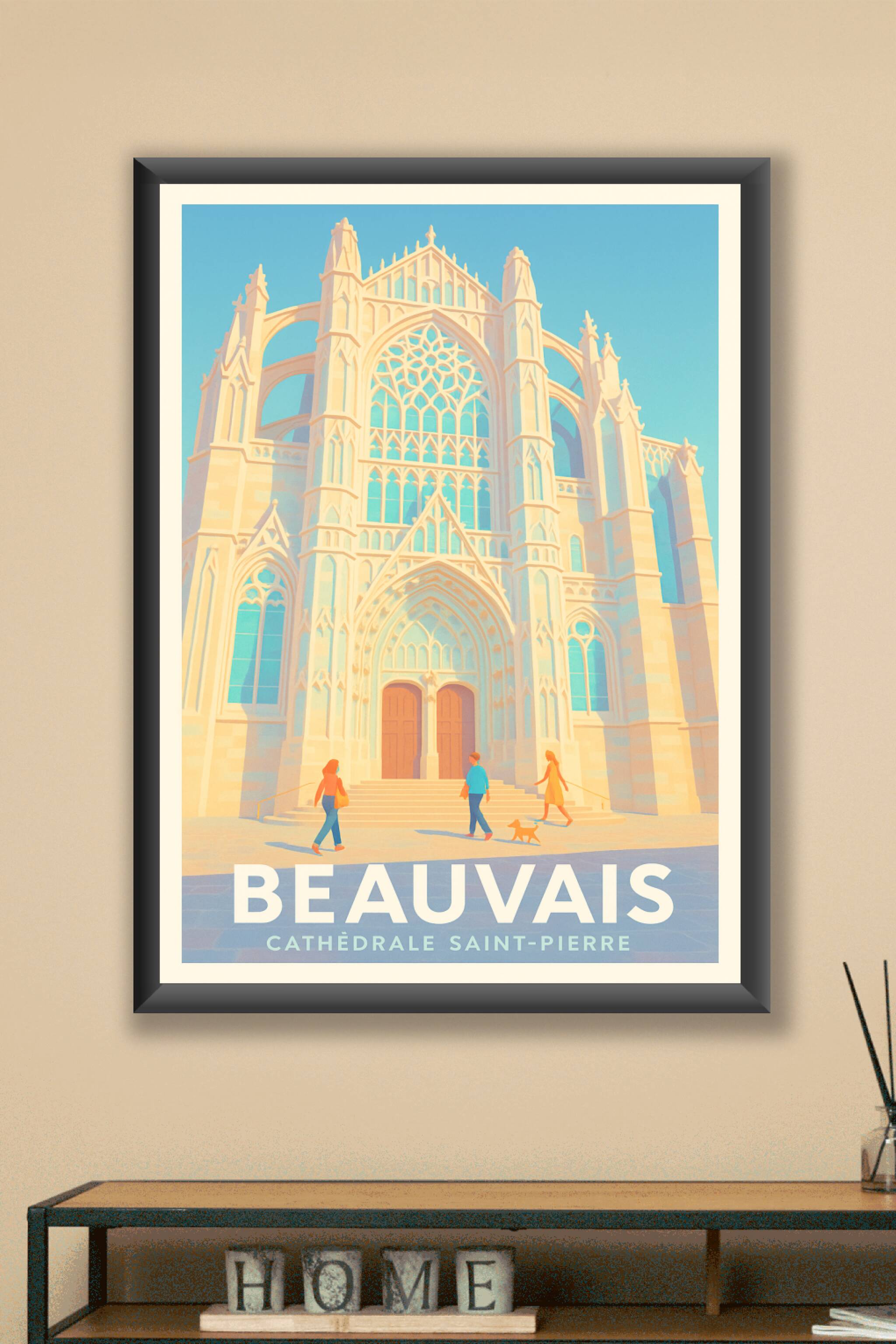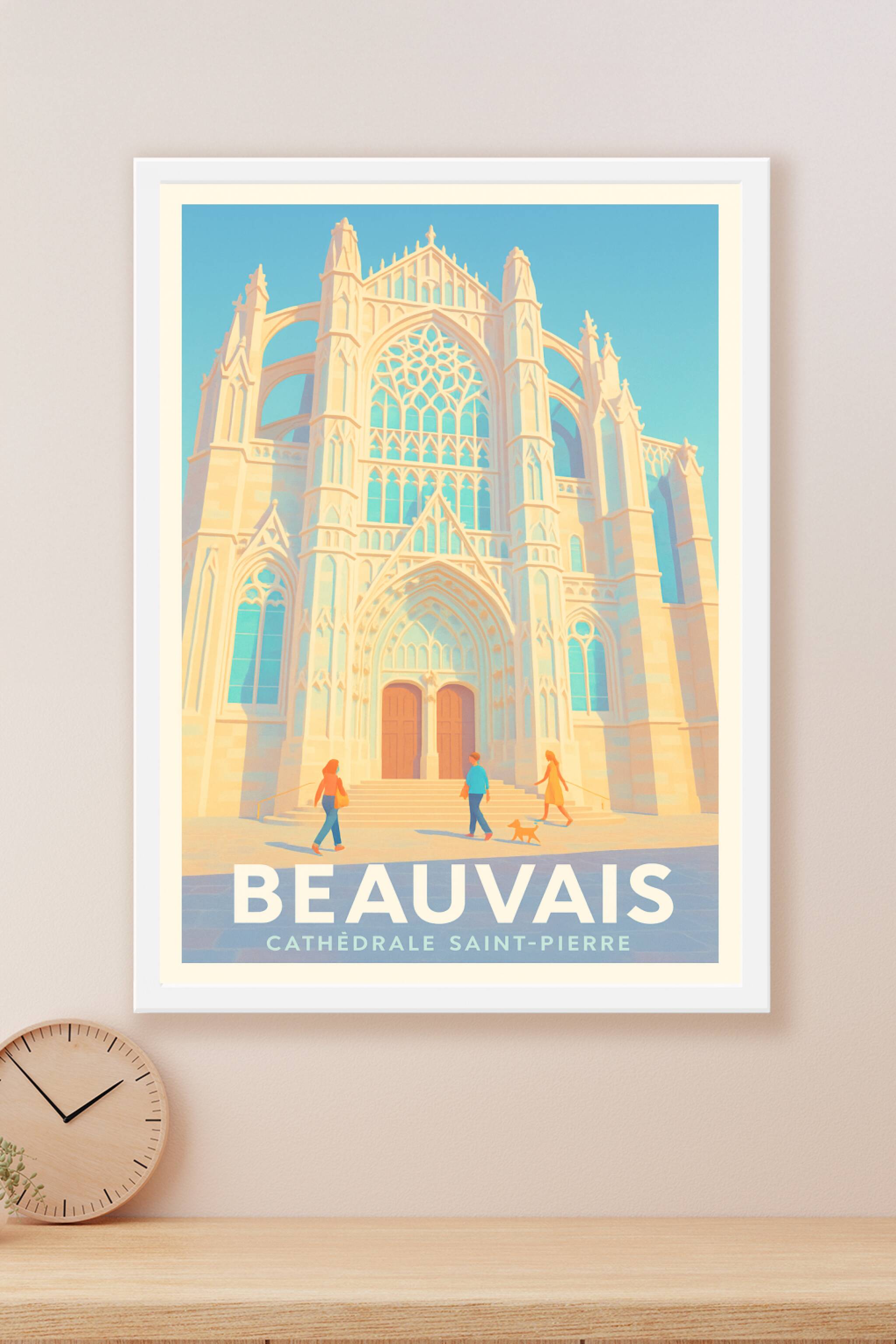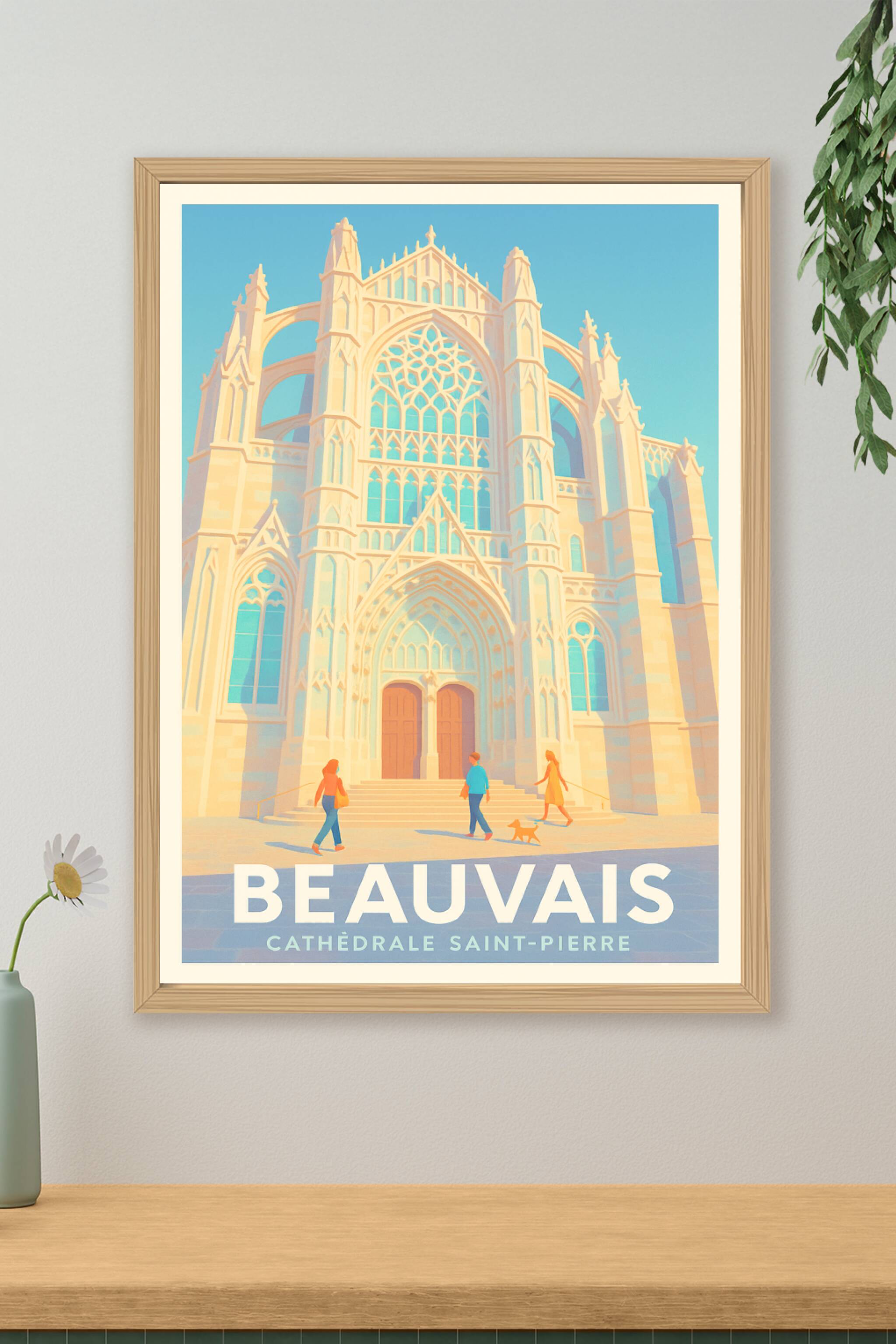 Découvrez la majesté de la Cathédrale Saint-Pierre de Beauvais à travers cette affiche élégante, capturant la lumière douce et les détails gothique...