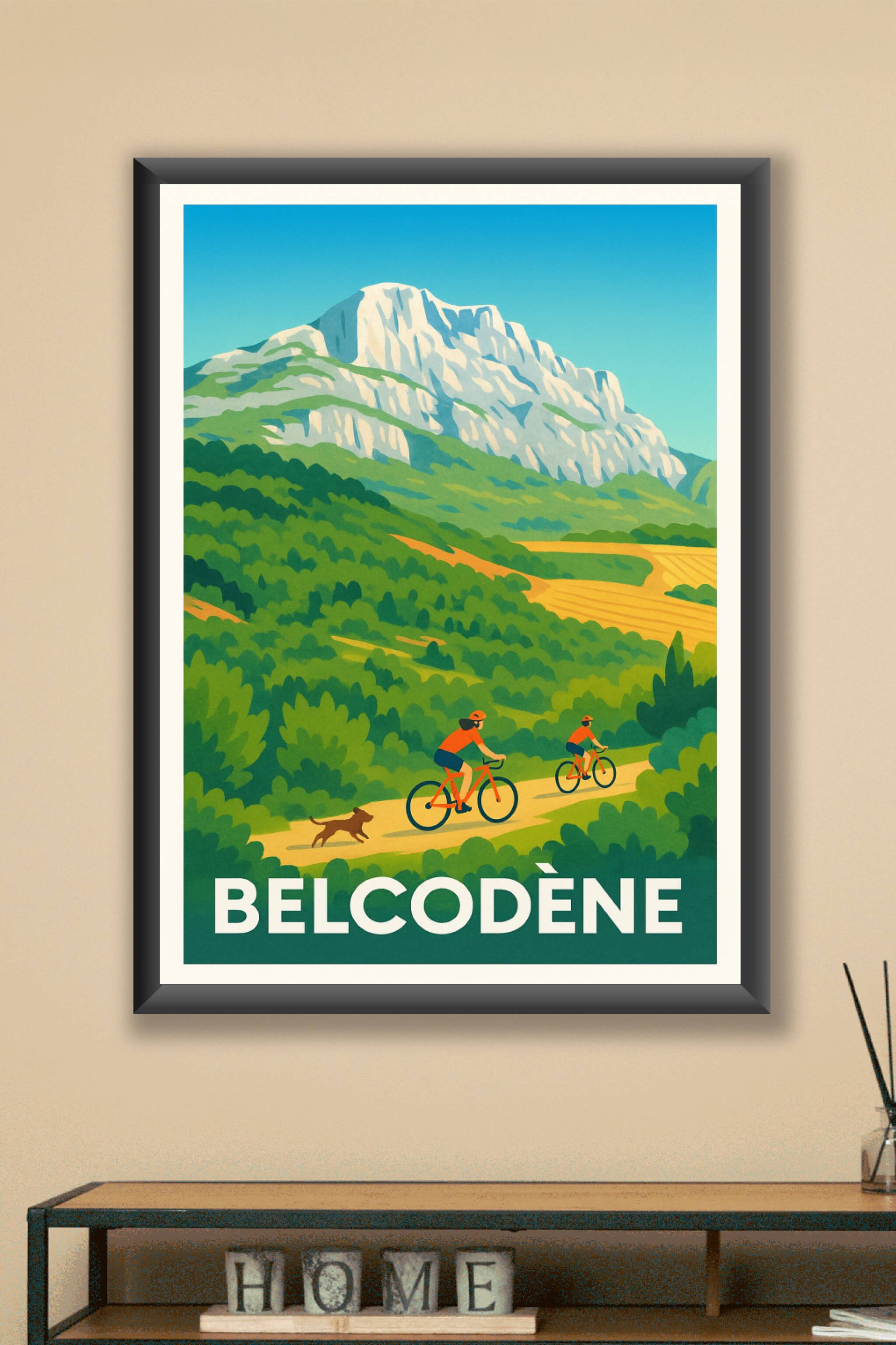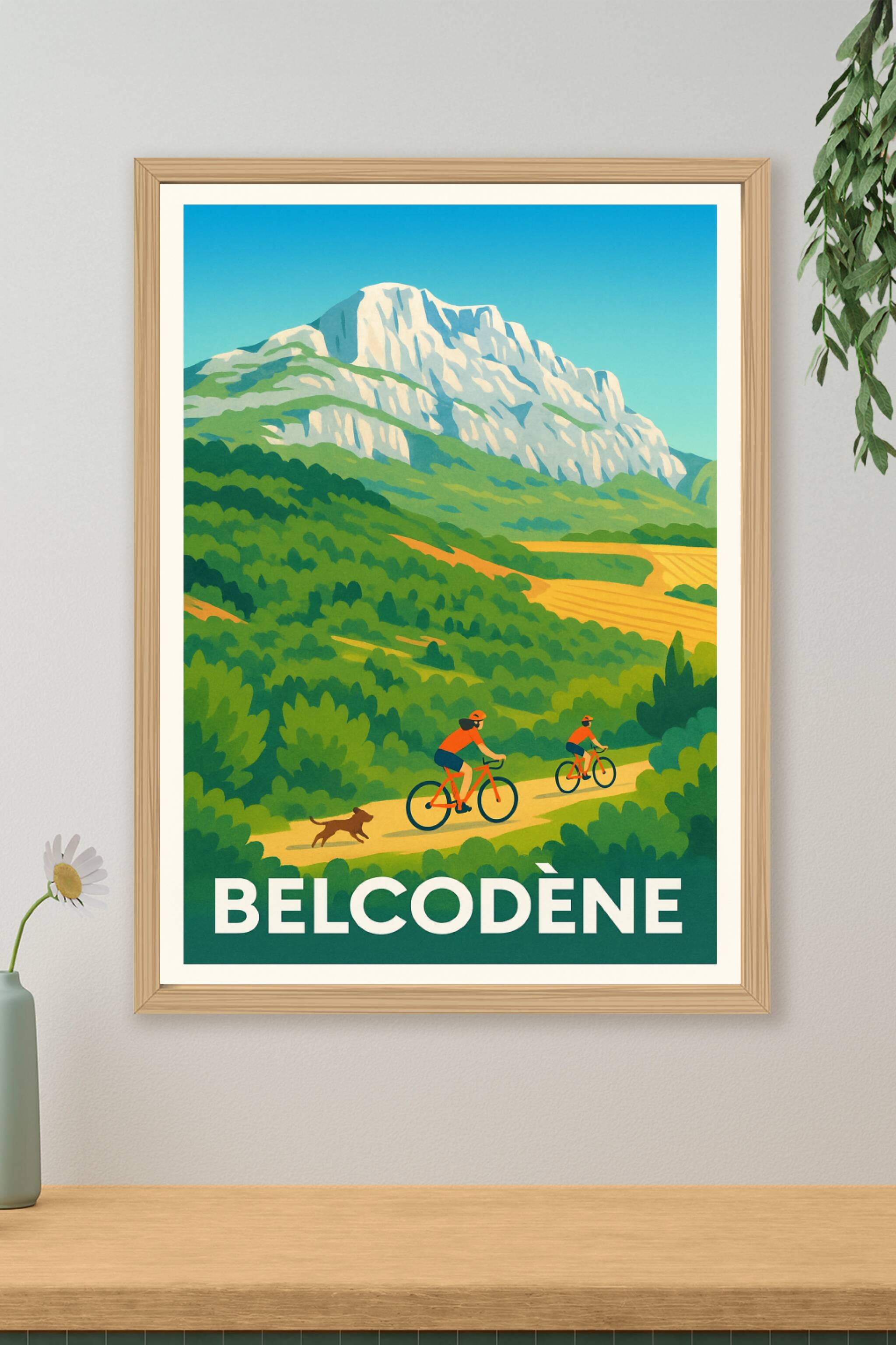 Découvrez la beauté naturelle et authentique de Belcodène à travers cette affiche illustrée qui met en scène une promenade à vélo dans un décor verdoyant et montagneux. Ce poster met en valeur le charme bucolique de cette commune, idéale pour les amateurs de randonnée et d'activités en plein air.Cette affiche est imprimée en tirage "Fine Art" sur un papier 305g coton de haute qualité, garantissant des couleurs vibrantes et une durabilité exceptionnelle. Disponible en plusieurs formats, du A1 au A4, avec ou sans cadre, ce poster s'adapte parfaitement à tous les espaces de votre intérieur.Offrez-vous ou faites plaisir avec cette affiche premium 100% fabriquée en France, parfaite pour apporter une touche d'évasion et de fraîcheur naturelle dans votre décoration.