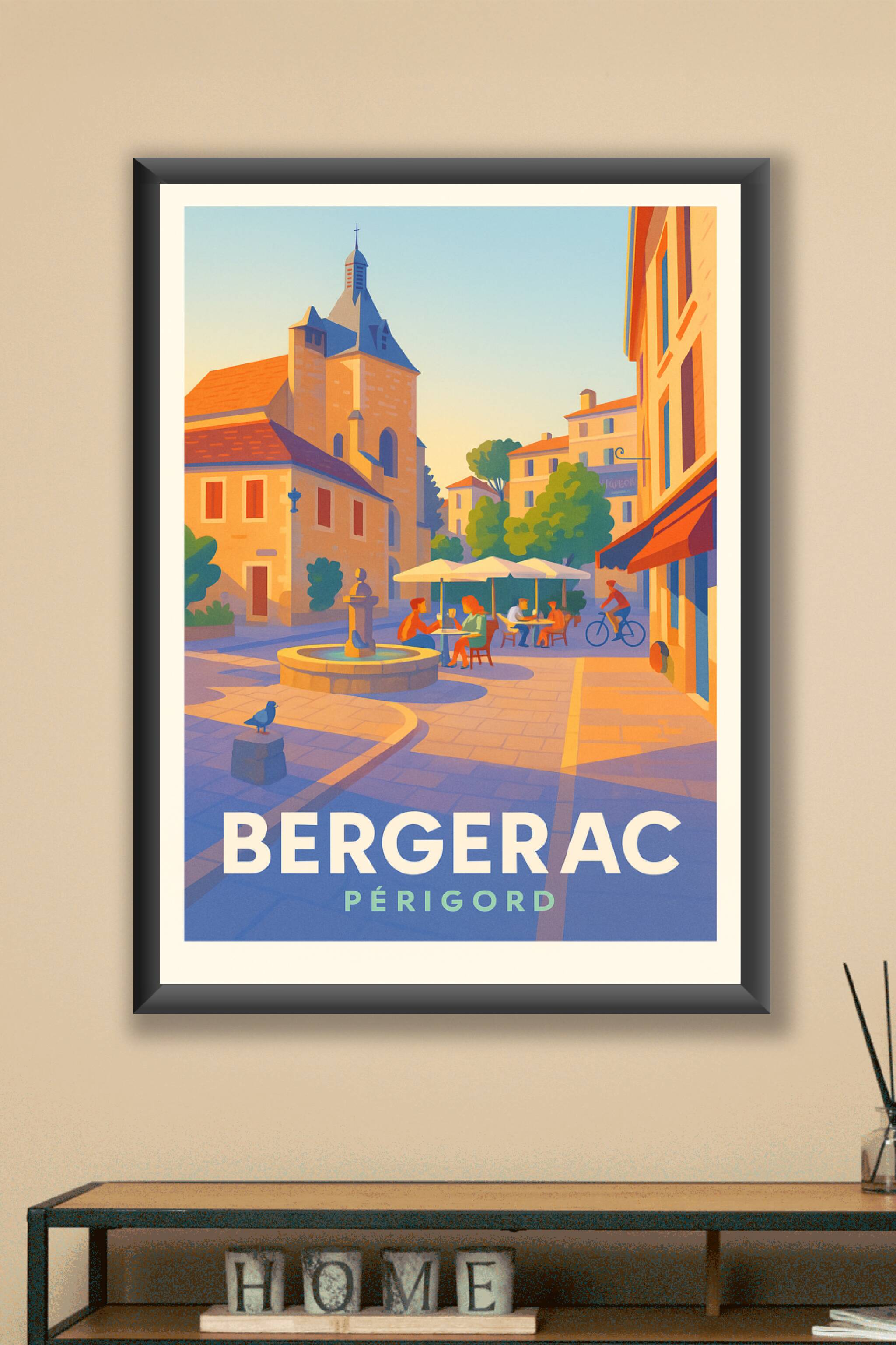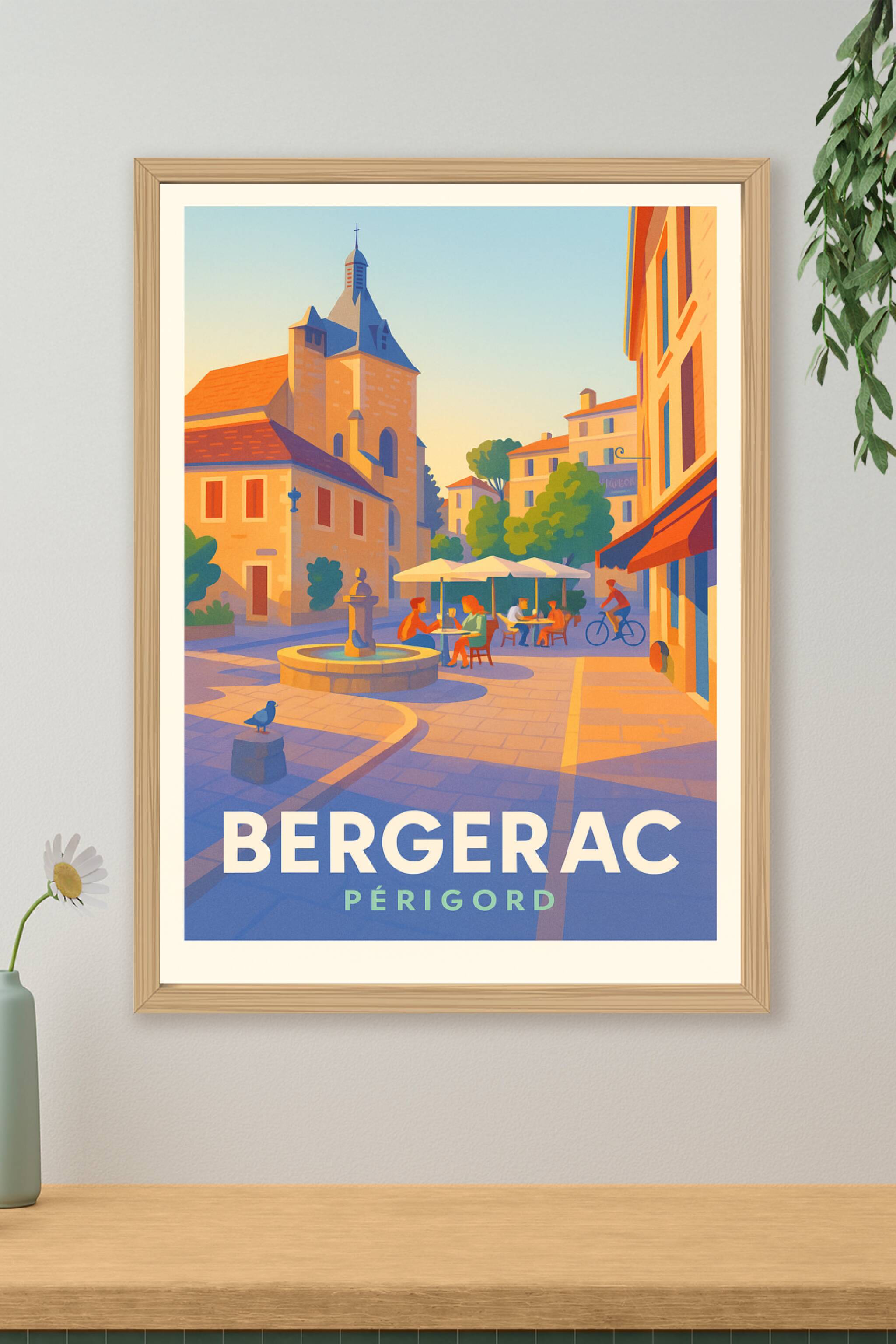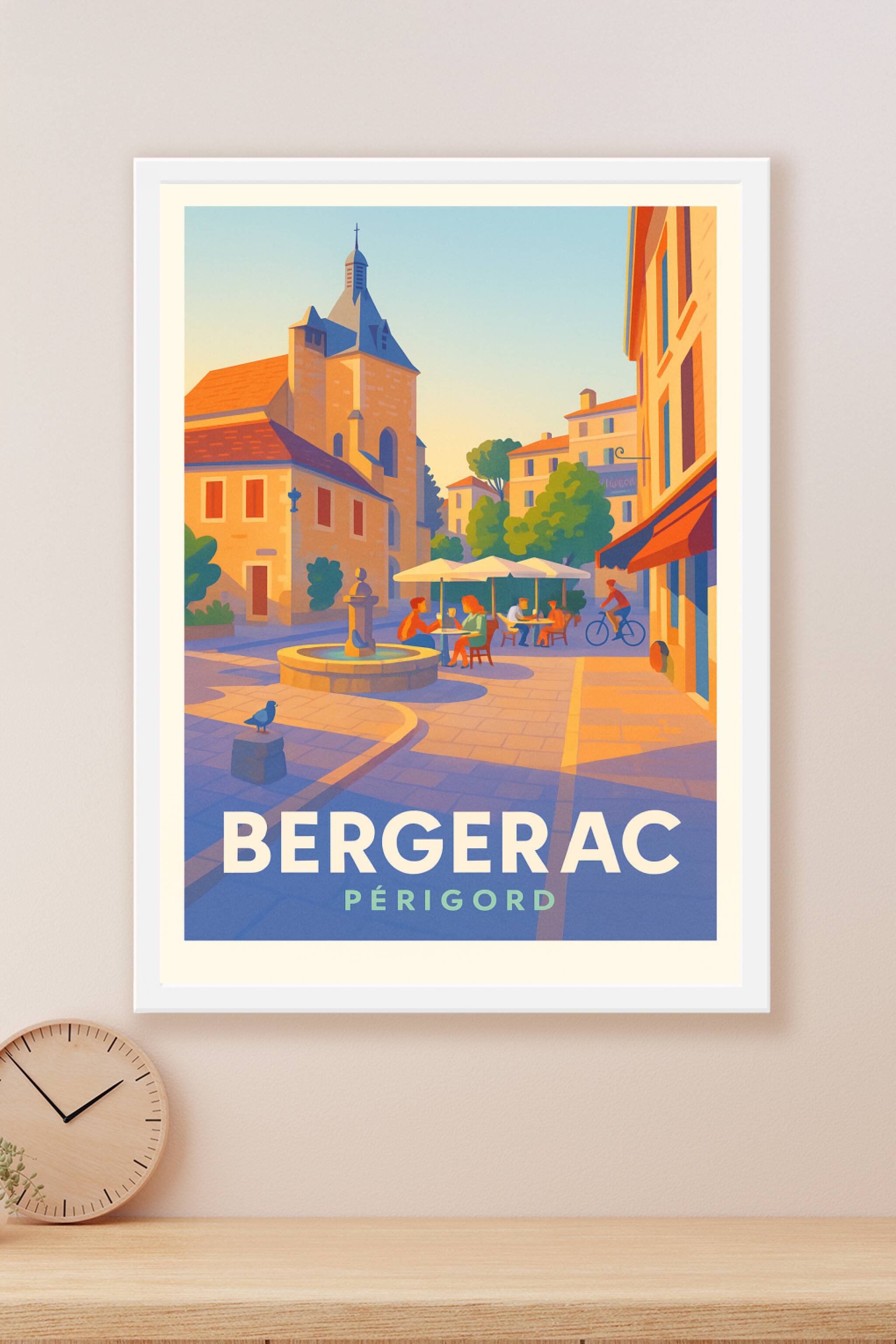 Découvrez l'atmosphère conviviale et ensoleillée de Bergerac, nichée au cœur du Périgord, avec cette magnifique affiche illustrée. Ce poster met en...
