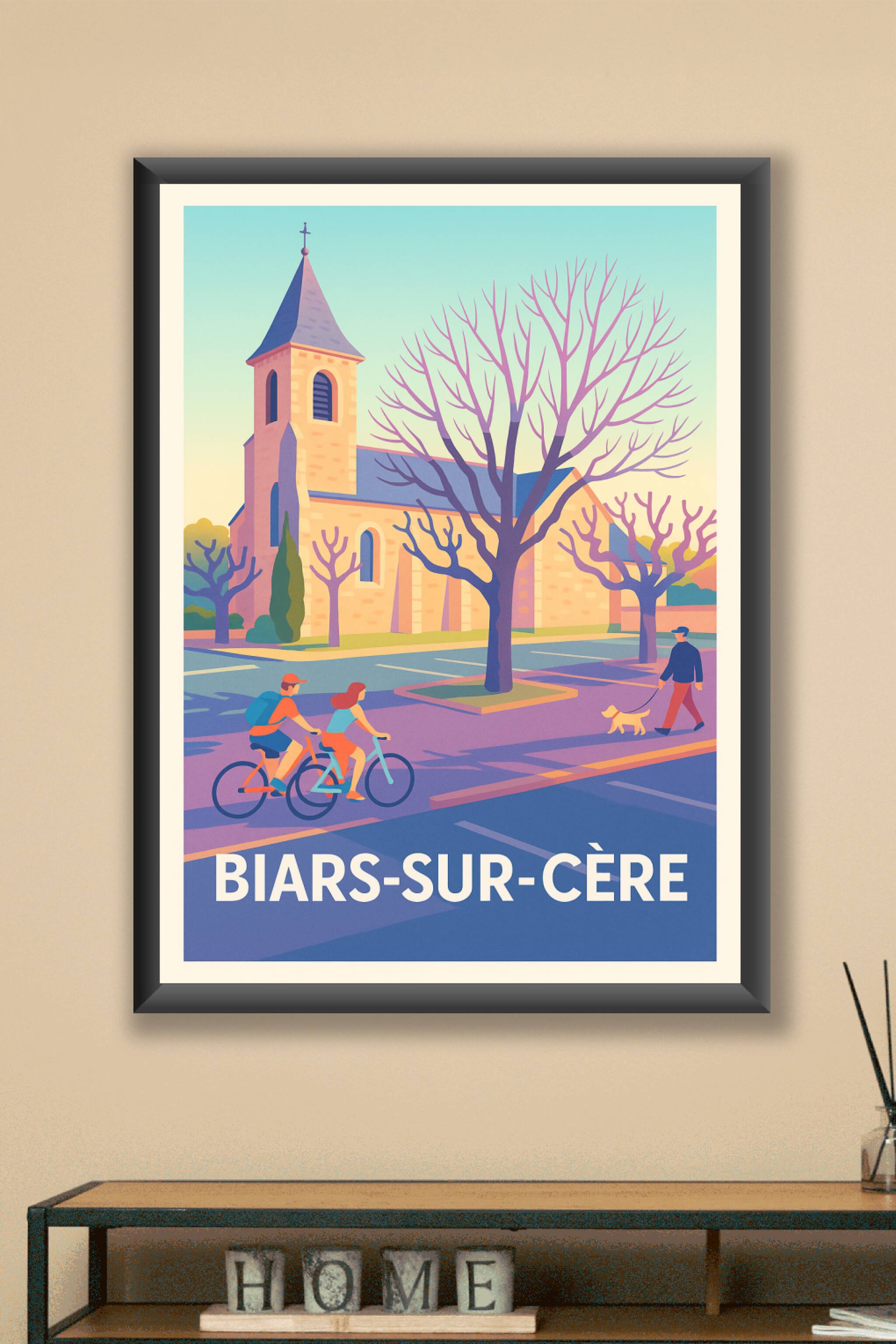 Découvrez l'atmosphère tranquille et charmante de Biars-sur-Cère avec cette affiche illustrée mettant en scène une église typique et une balade quotidienne à vélo ou à pied. Ce poster capture la douceur de vivre d'une petite ville au cœur du Sud-Ouest français. Imprimée en tirage "Fine Art" sur un papier 305g coton d'exception, cette affiche offre une qualité d'impression remarquable et durable, idéale pour sublimer votre décoration intérieure. Disponible du format A1 au format A4, avec ou sans cadre, ce poster est parfait pour apporter une touche d'authenticité et de sérénité à votre habitat ou comme cadeau pour les amoureux de cette belle région.