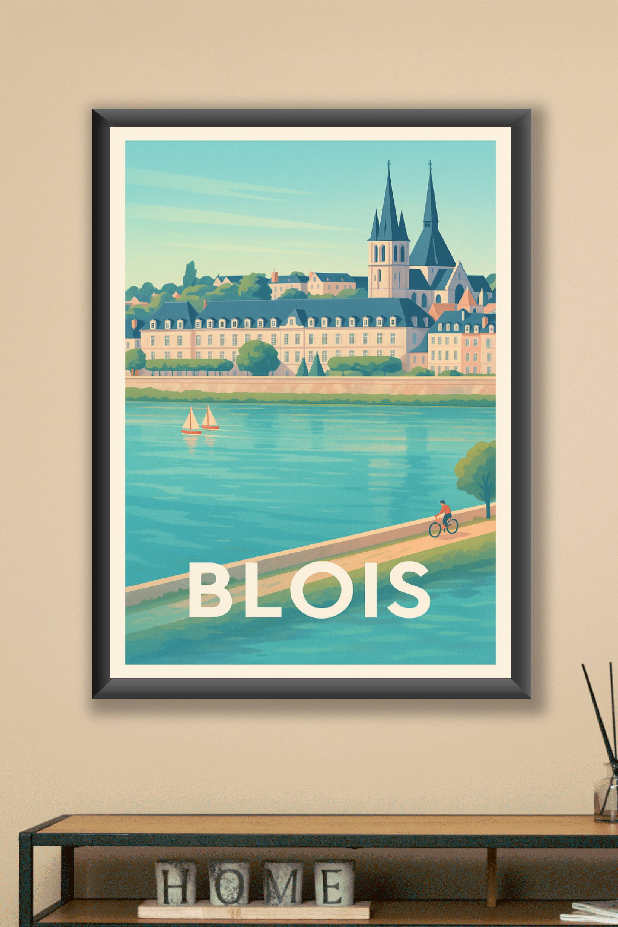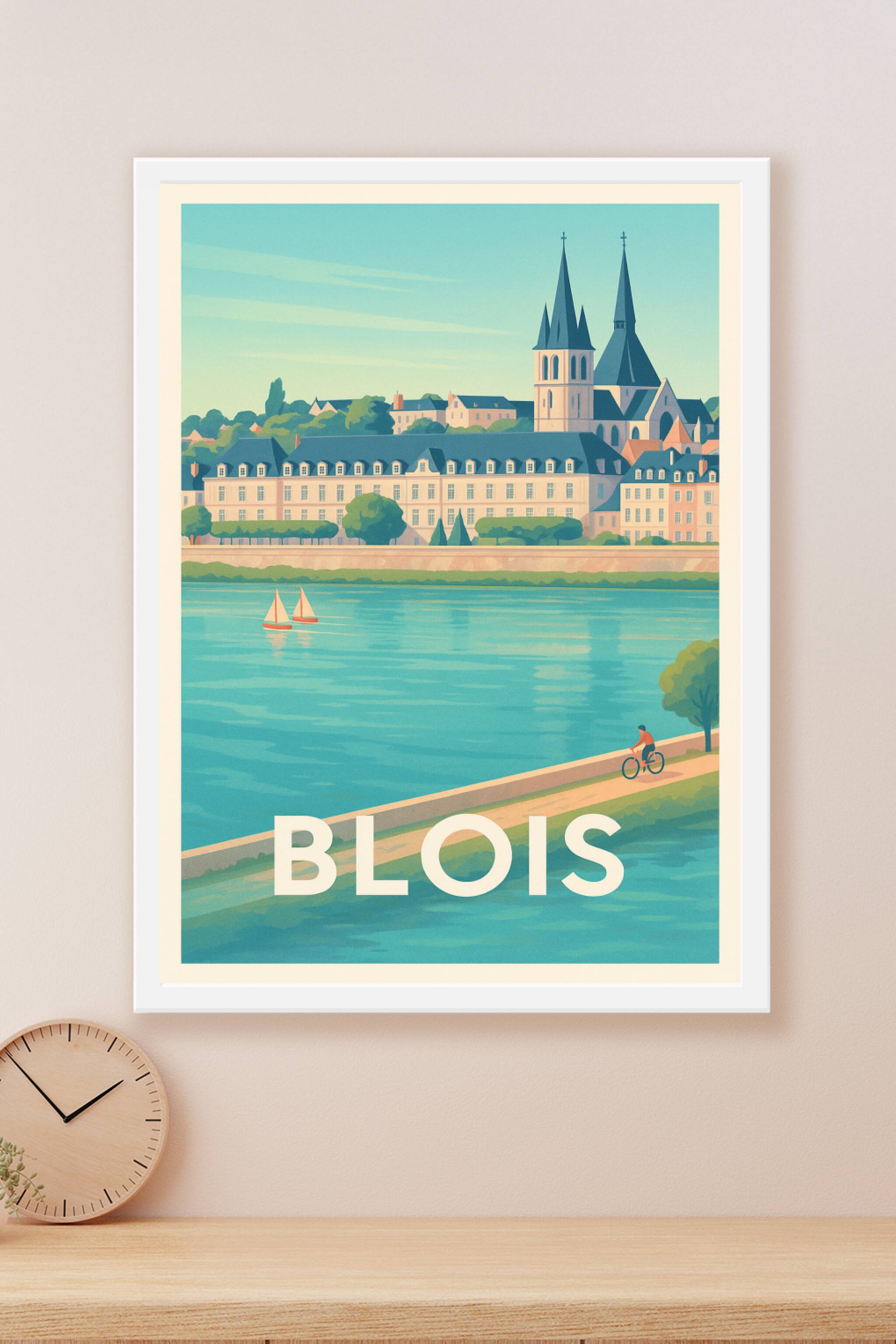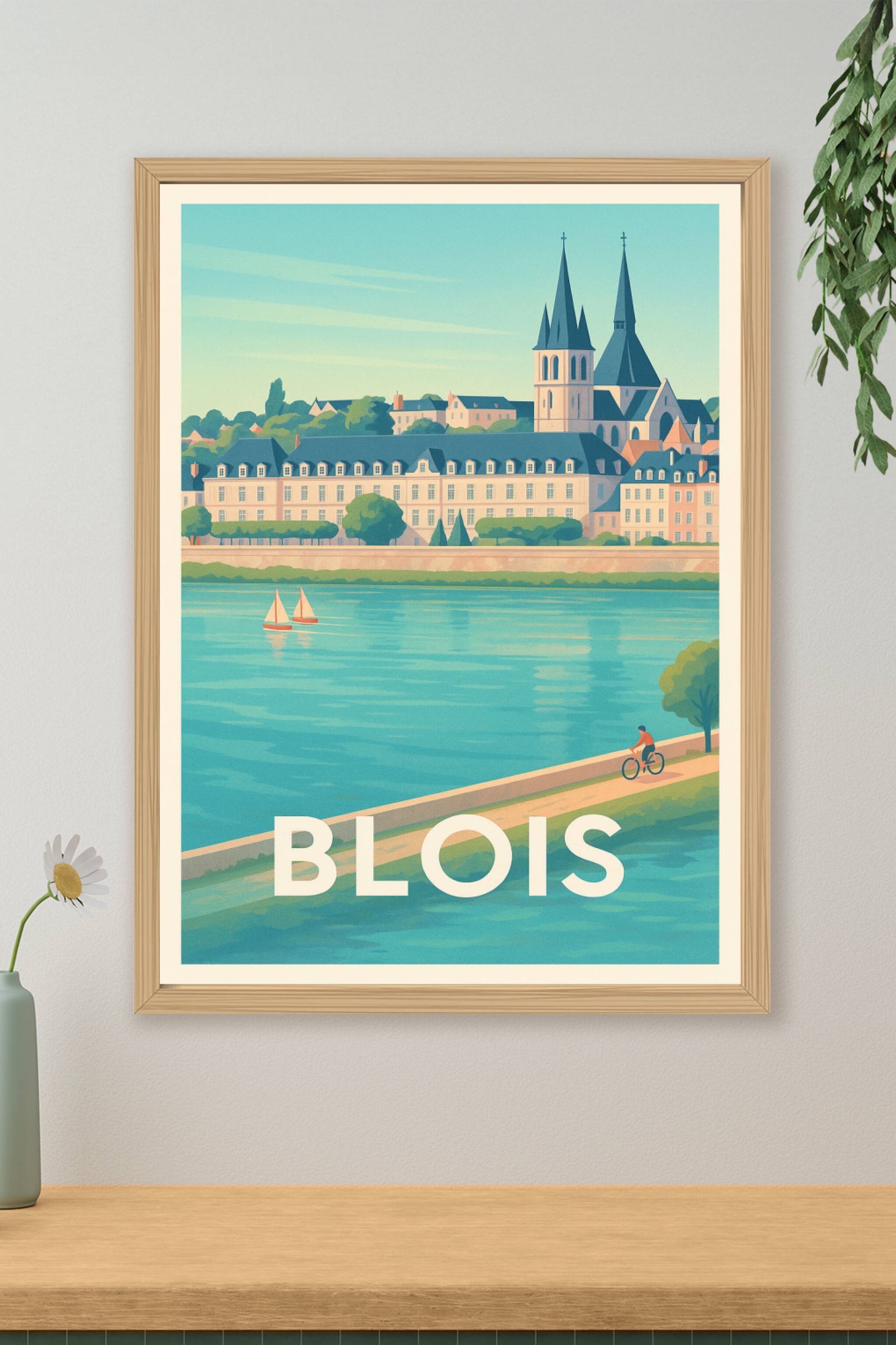 Découvrez la sérénité de Blois avec cette affiche illustrée qui capture la beauté paisible des rives de la Loire et l'élégance de son architecture ...