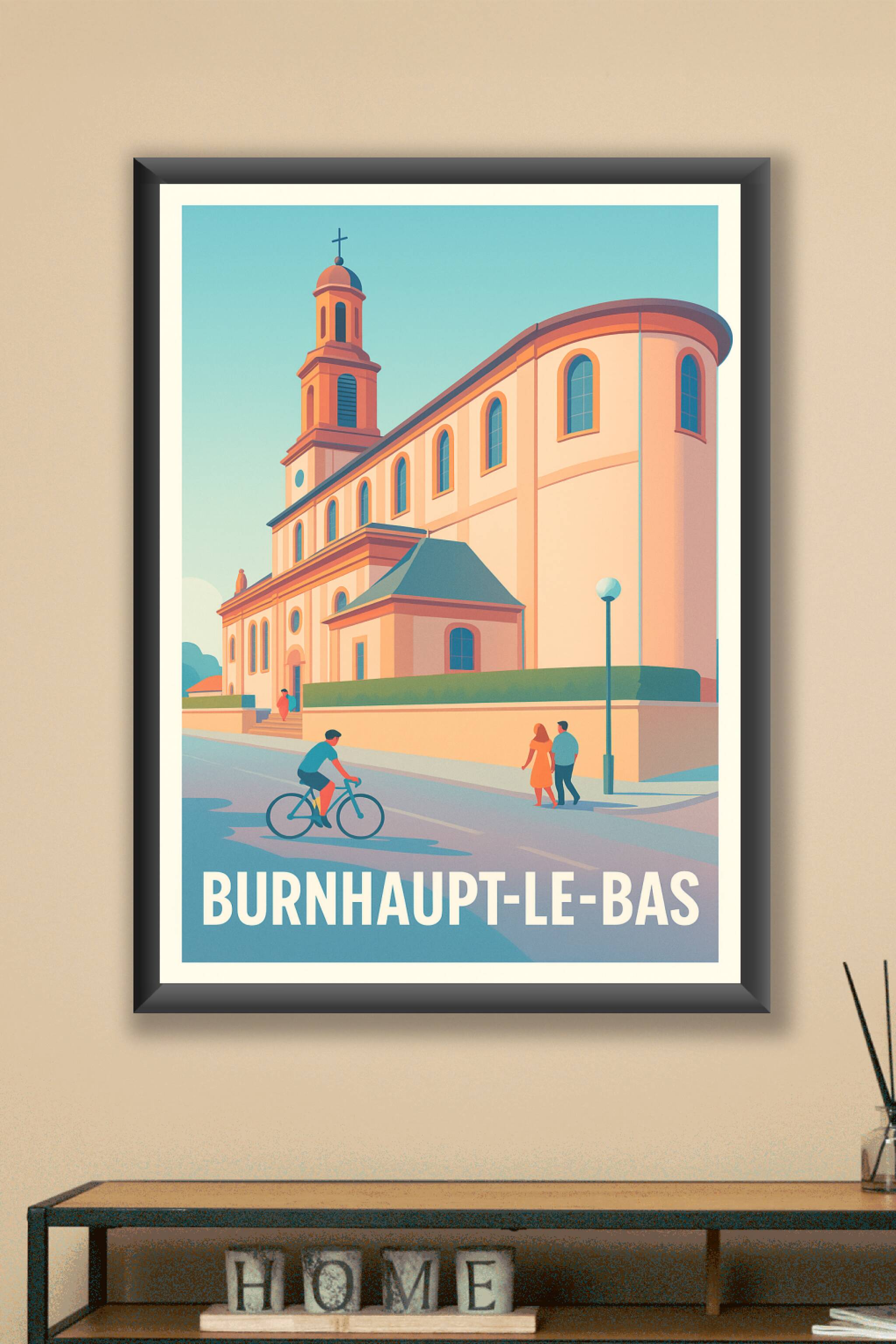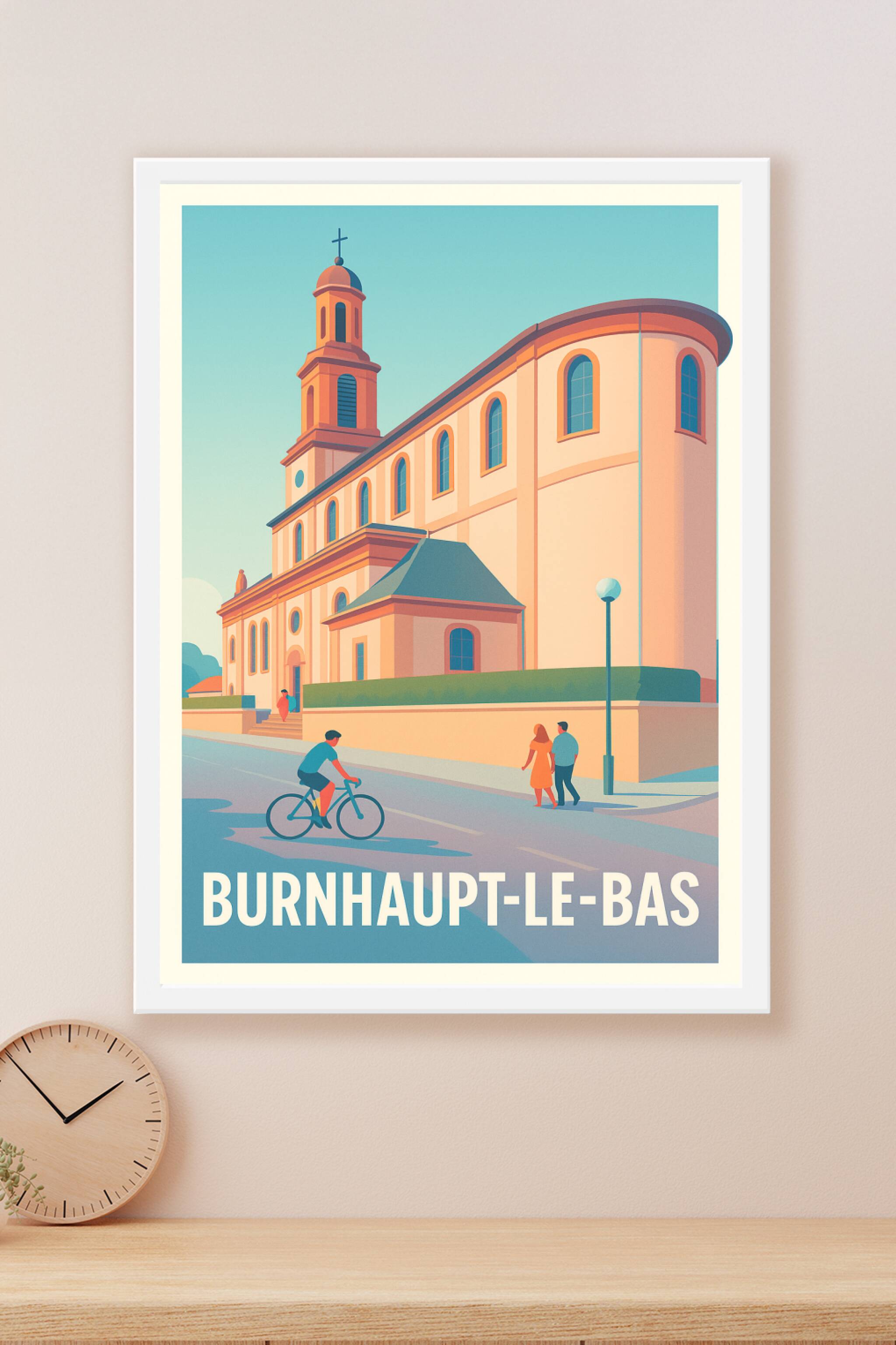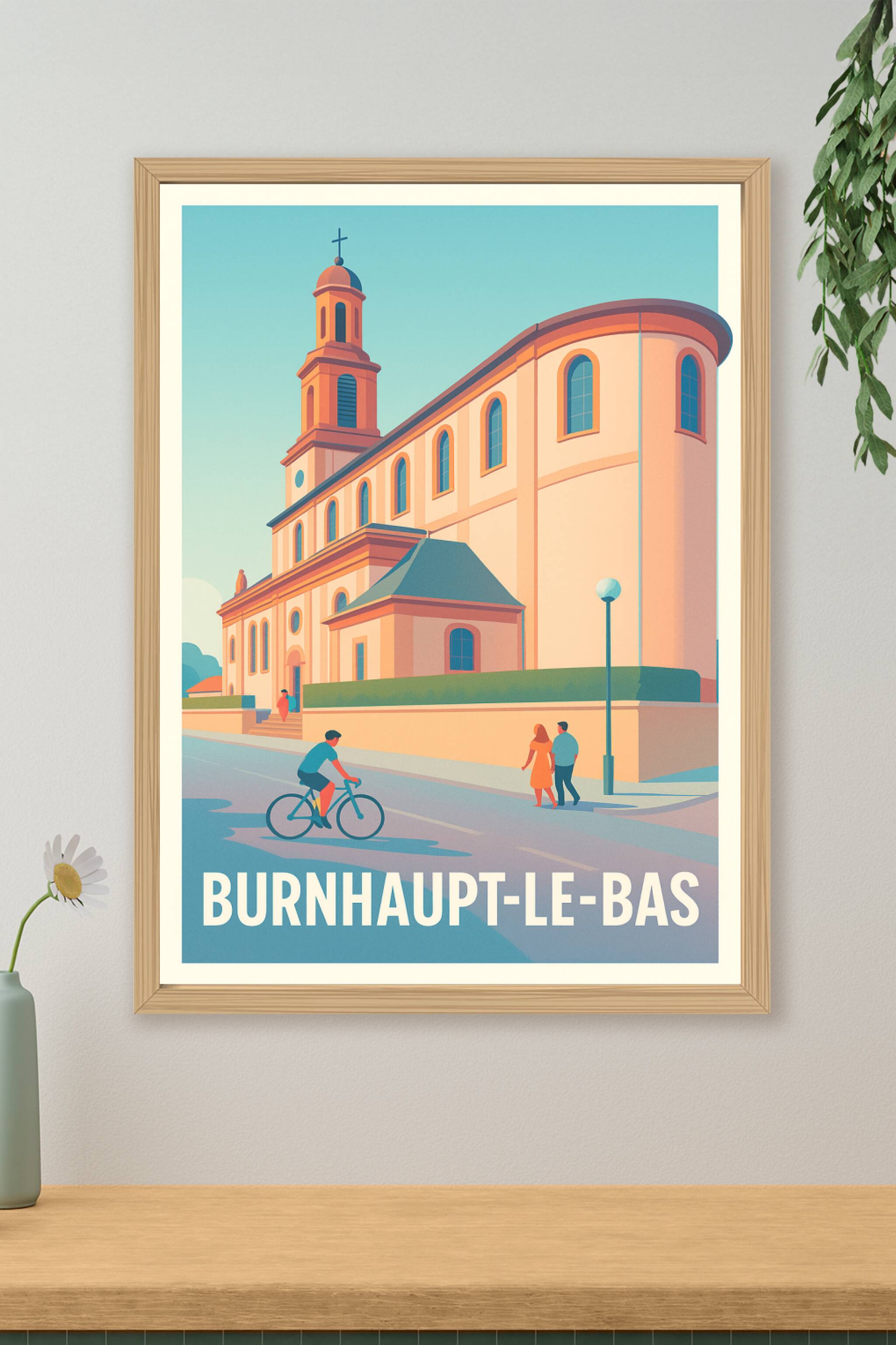 Découvrez l'élégance et la tranquillité de Burnhaupt-le-Bas avec cette affiche illustrée mettant en lumière l'architecture remarquable de sa princi...