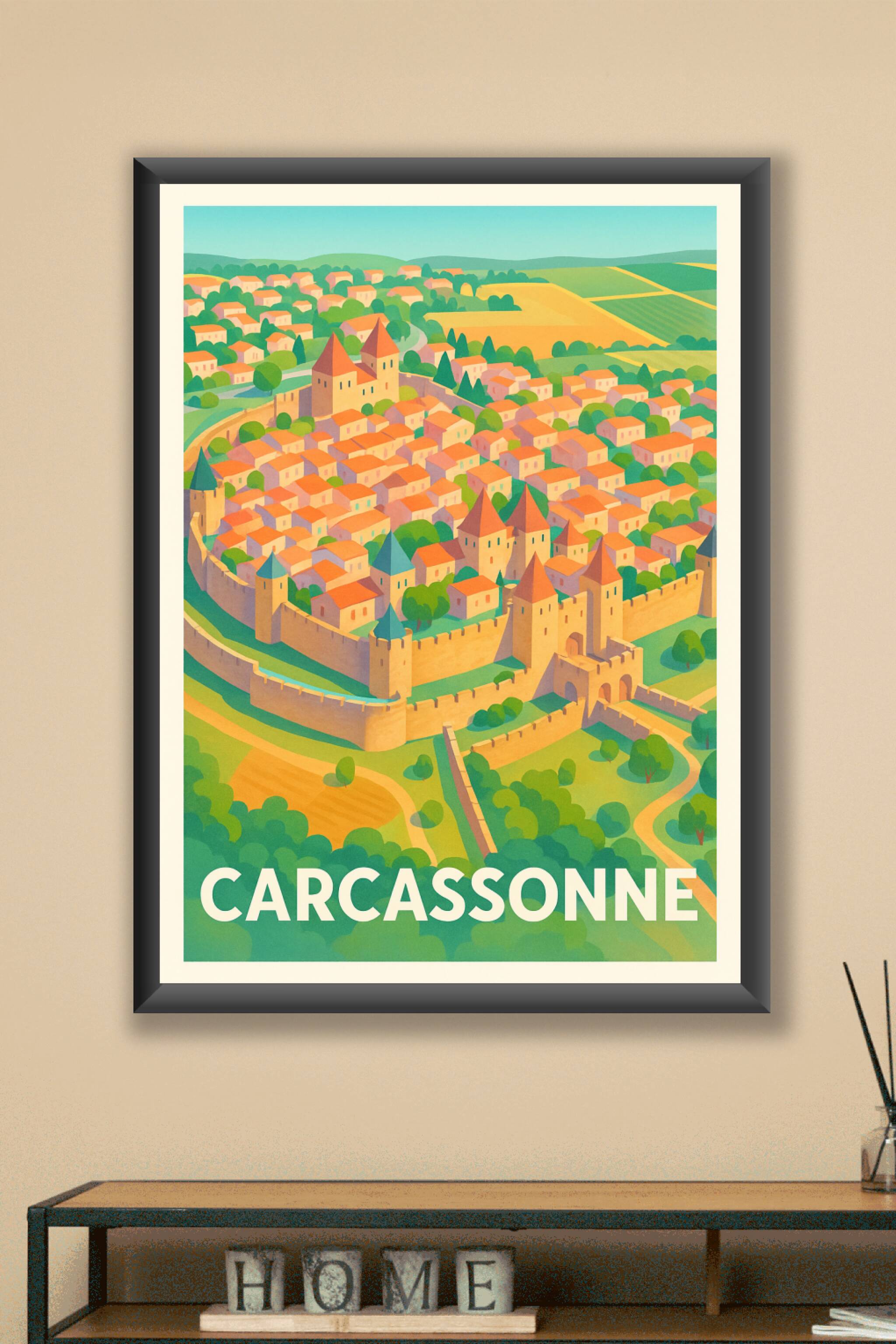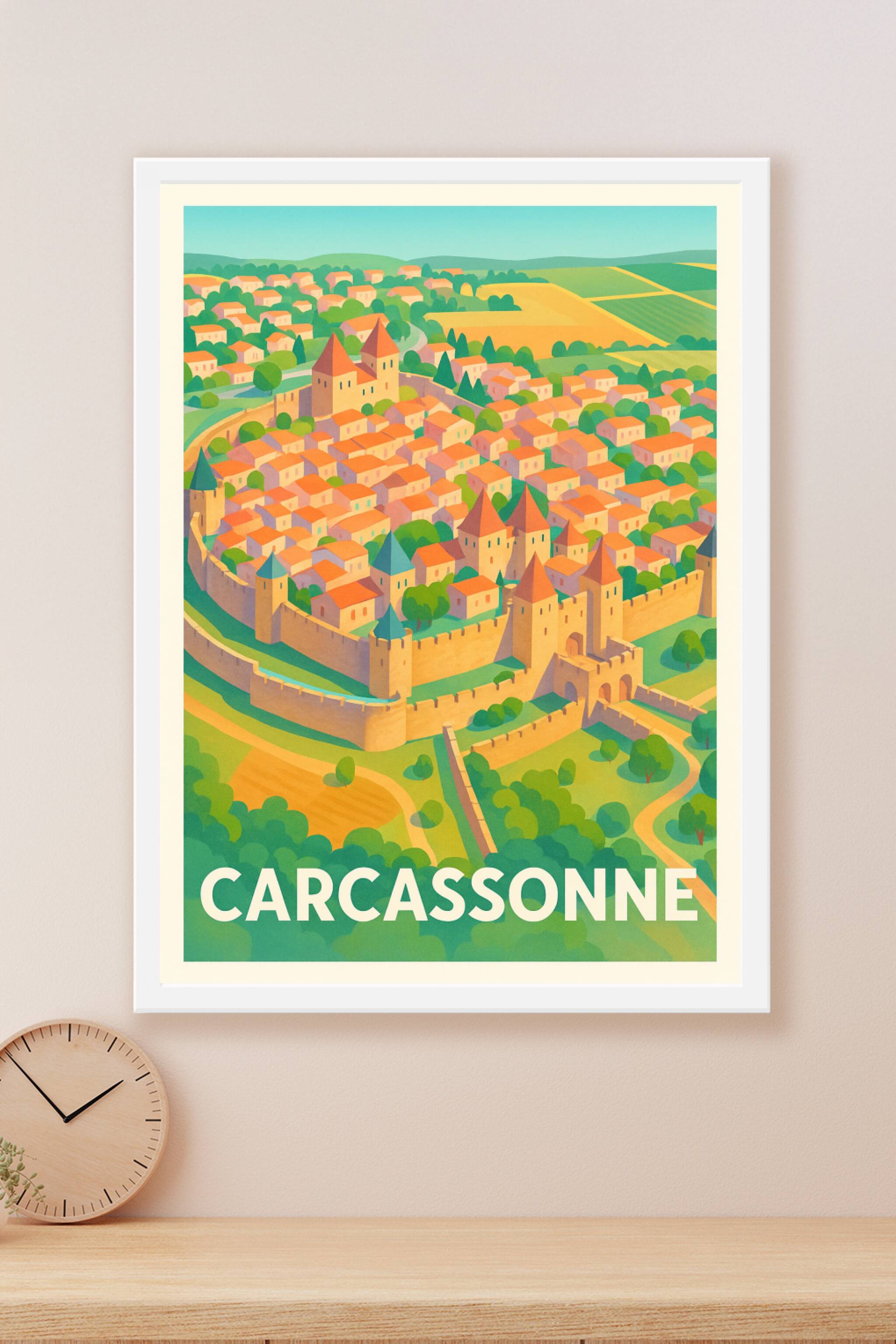 Découvrez la cité fortifiée de Carcassonne à travers cette affiche illustrée au style vibrant et coloré, idéalisant la beauté architecturale de ses...
