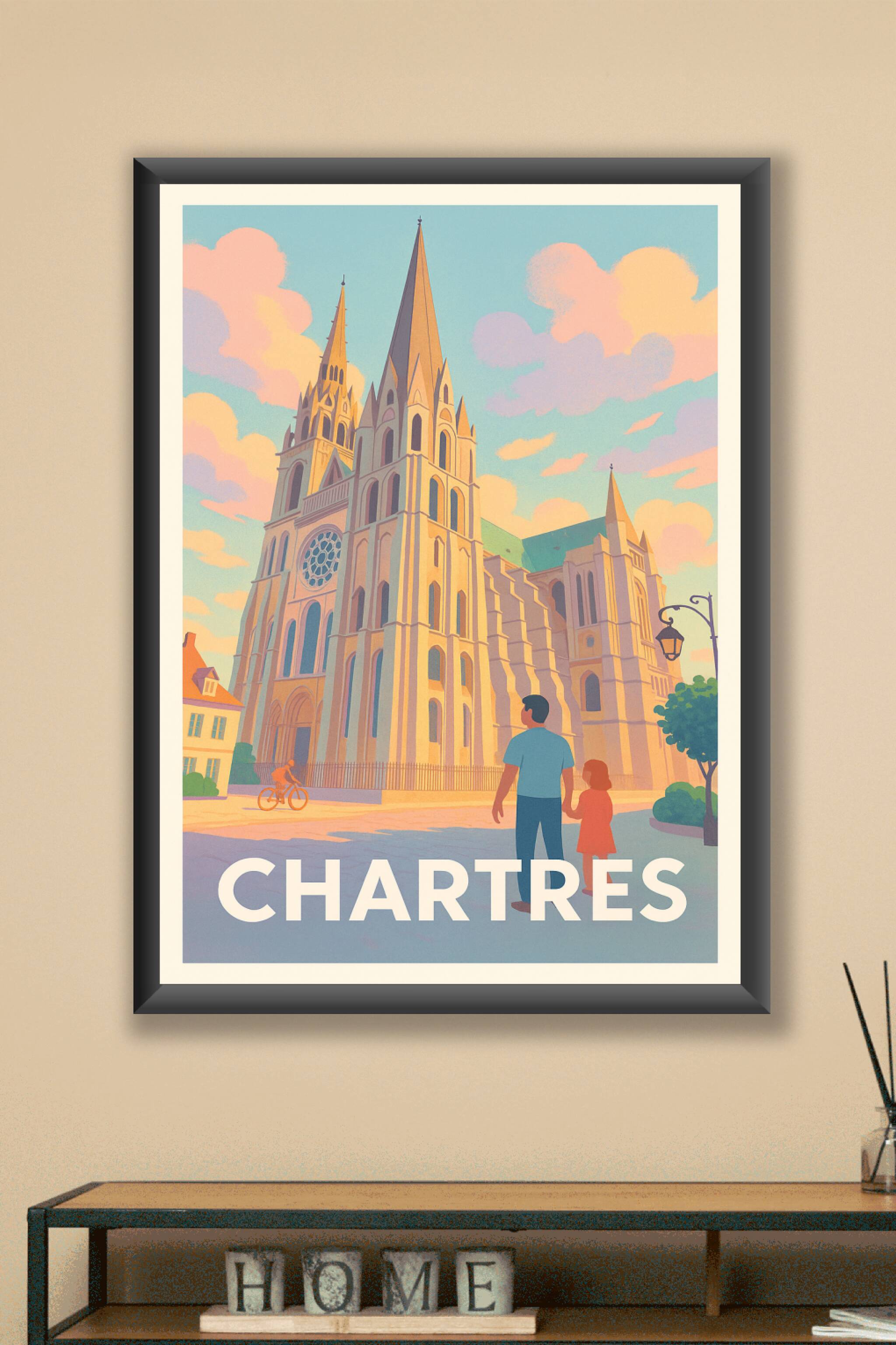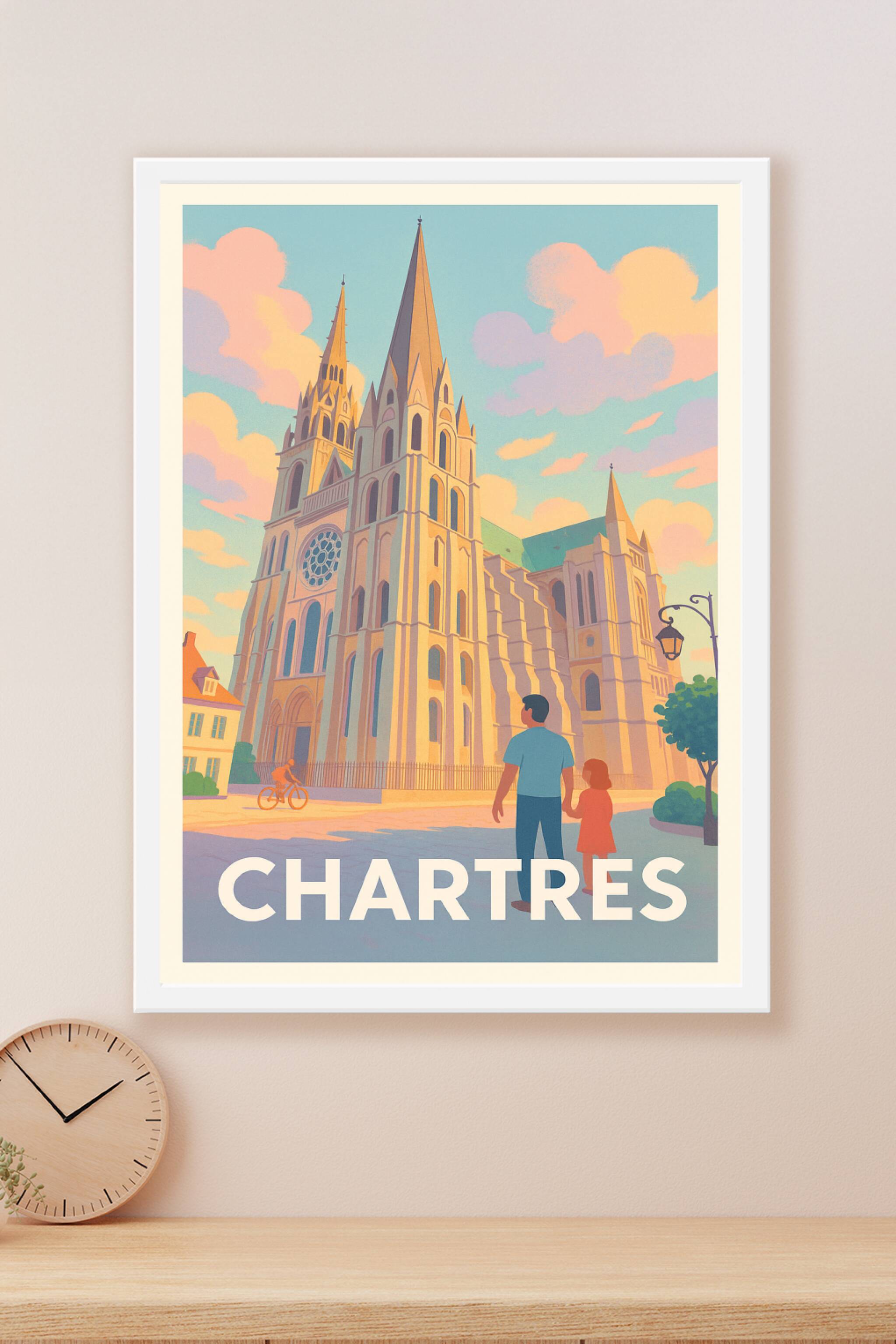 Affiche Chartres - L'emblématique cathédrale au cœur de la cité