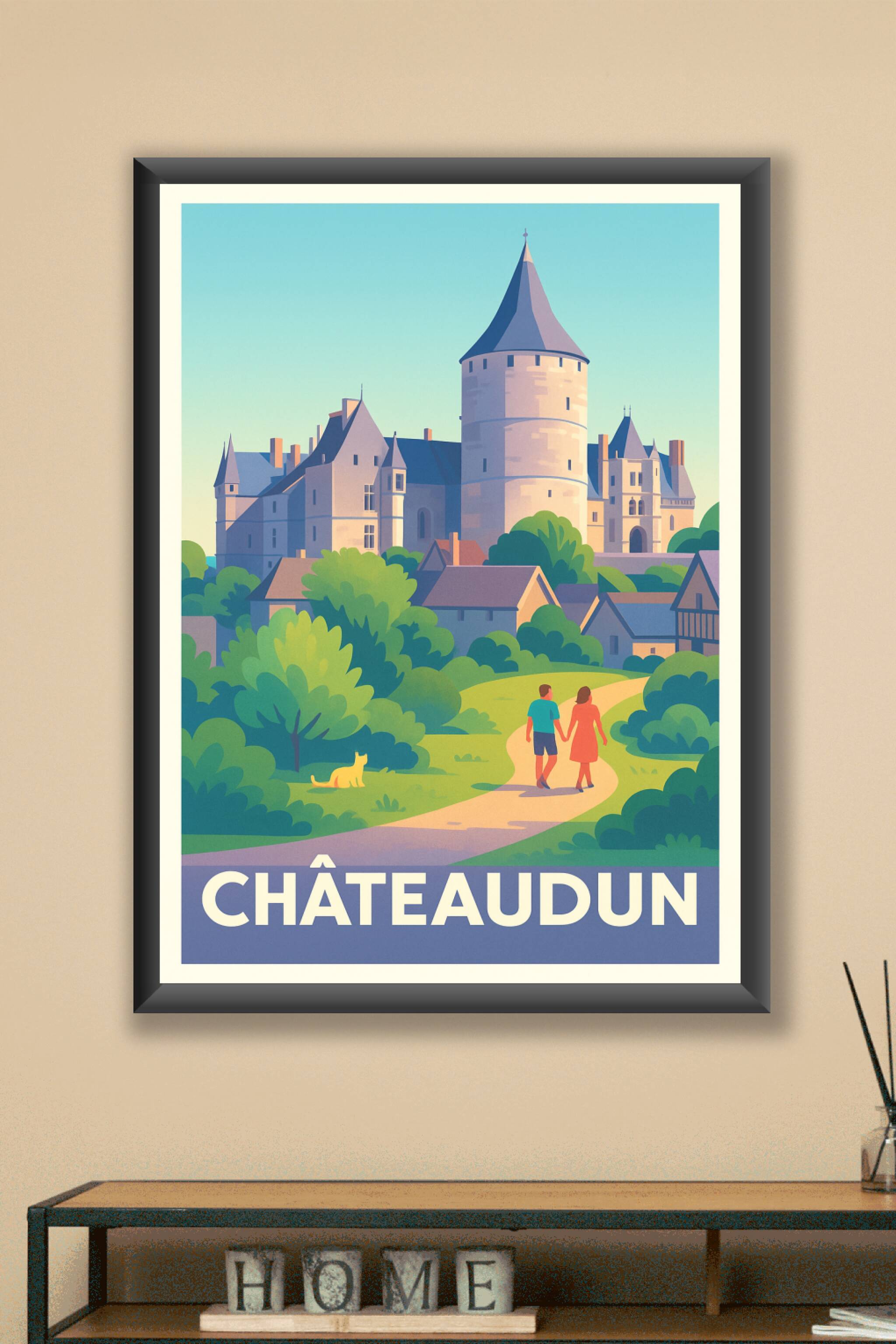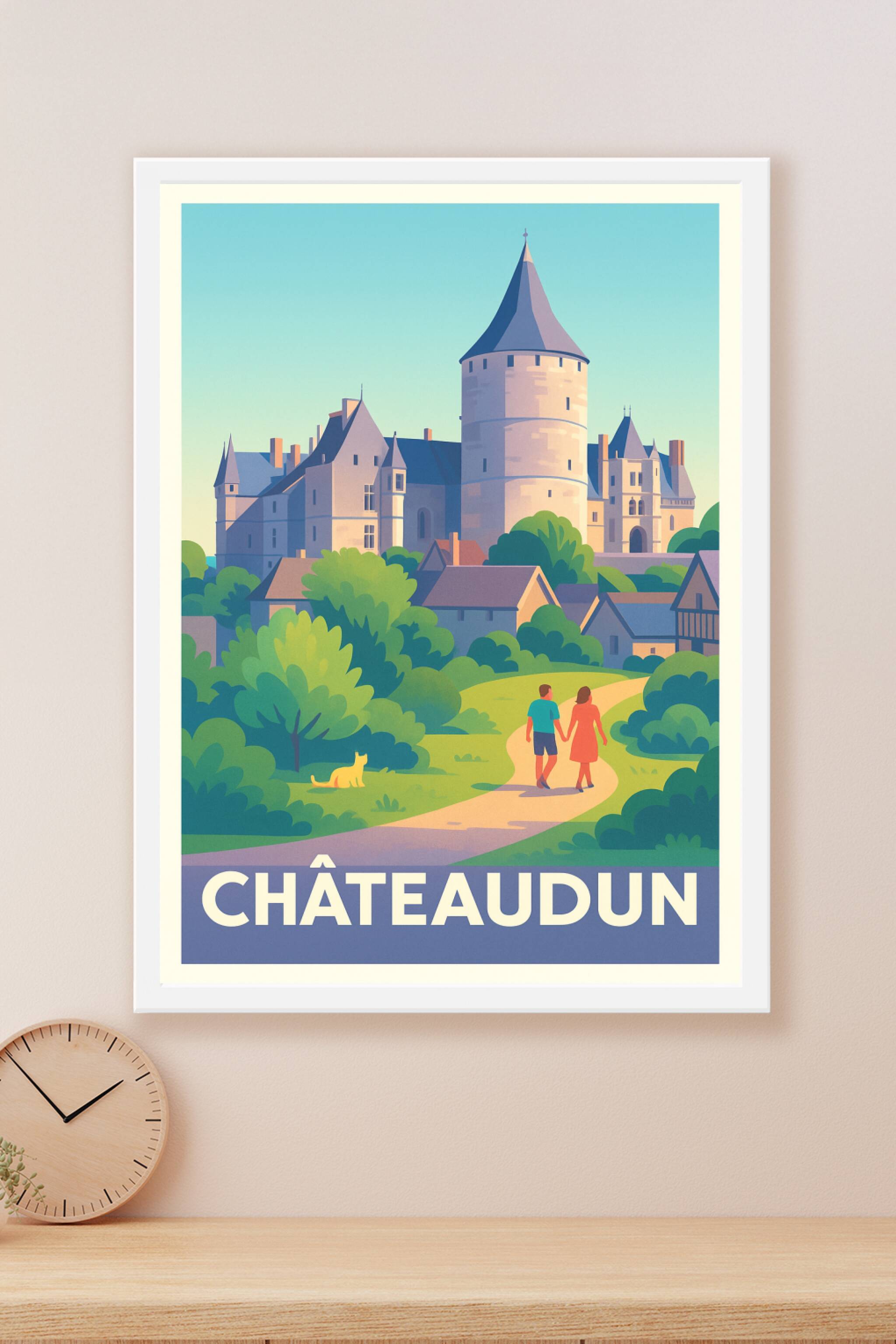 Découvrez la beauté intemporelle de Châteaudun avec cette affiche illustrée mettant en scène son célèbre château et ses paysages verdoyants. Cette représentation douce et colorée invite à une promenade romantique au sein d'un cadre historique unique. Ce poster est imprimé en tirage "Fine Art" sur papier 305g coton de haute qualité, garantissant des couleurs vibrantes et une longévité exceptionnelle de votre décoration. Disponible en formats A1 à A4, avec ou sans cadre, cette affiche apportera une touche élégante et apaisante à votre intérieur. Fabriquée en France avec un savoir-faire premium, elle est parfaite pour les amateurs d'art et les passionnés de patrimoine.