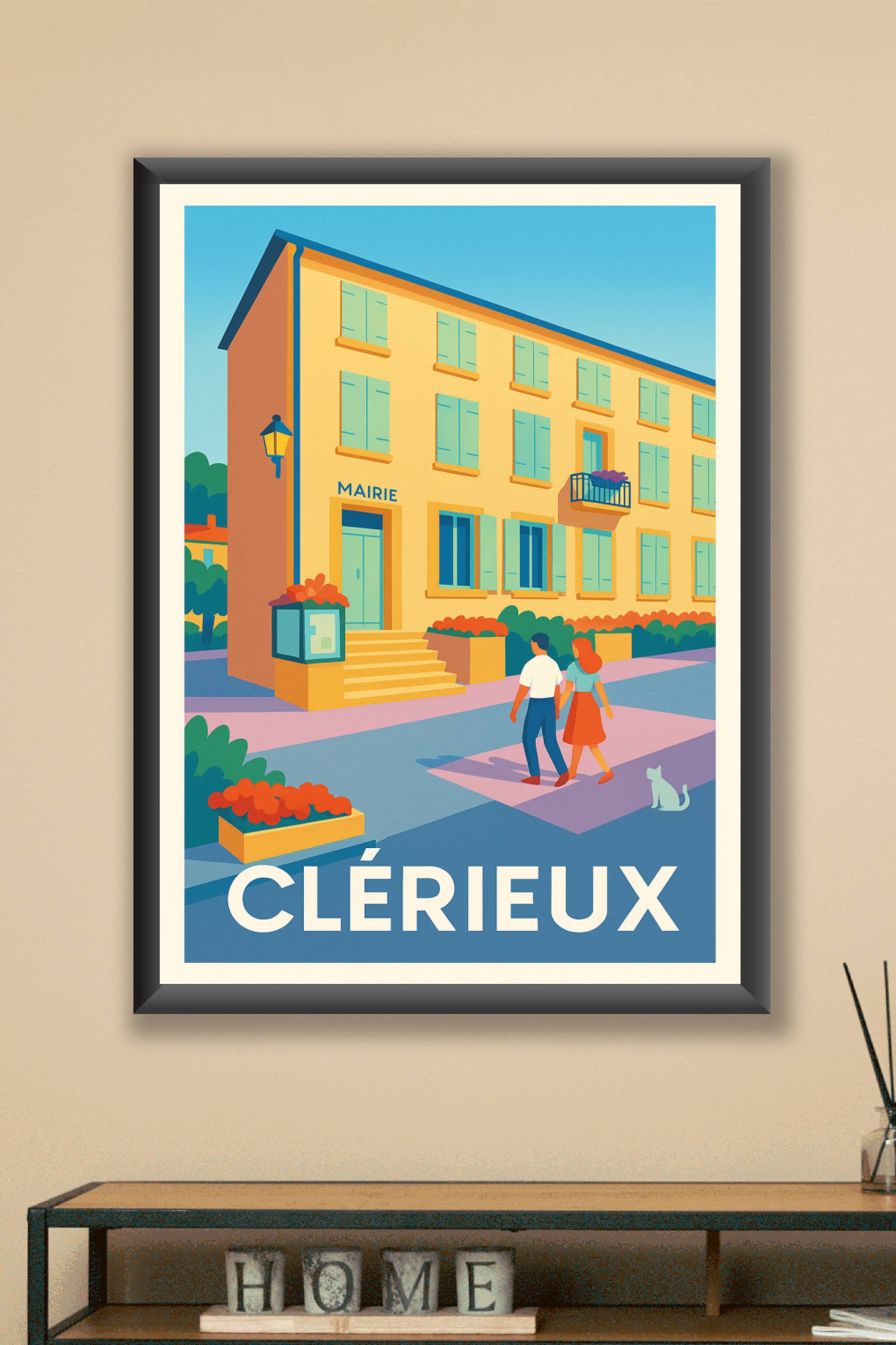 Découvrez cette affiche représentant la mairie de Clérieux dans une ambiance douce et lumineuse, idéale pour apporter une touche de sérénité à votre décoration intérieure. Ce poster illustré avec des couleurs vives et harmonieuses capture l'essence paisible de ce village typique. Imprimée en tirage "Fine Art" sur papier coton 305g, cette affiche bénéficie d'une qualité d'impression exceptionnelle qui sublimera chaque détail. Disponible en formats A1 à A4, avec ou sans cadre, elle s'adapte parfaitement à tous les espaces, que ce soit pour décorer un salon, un bureau ou offrir un cadeau unique et raffiné aux amateurs de charme provincial.