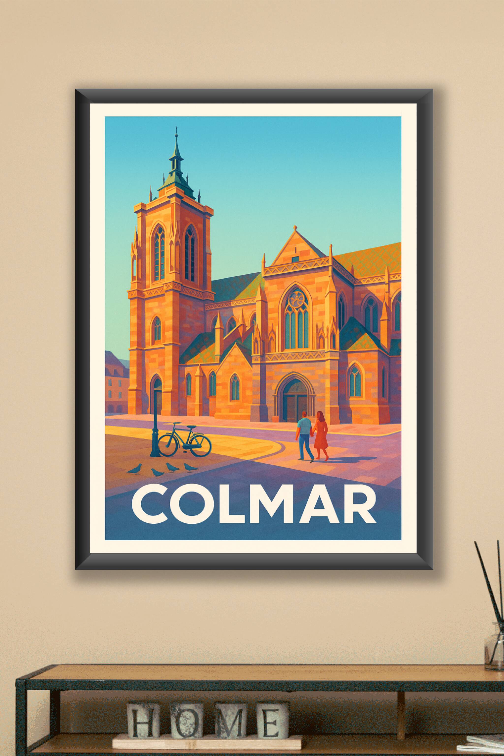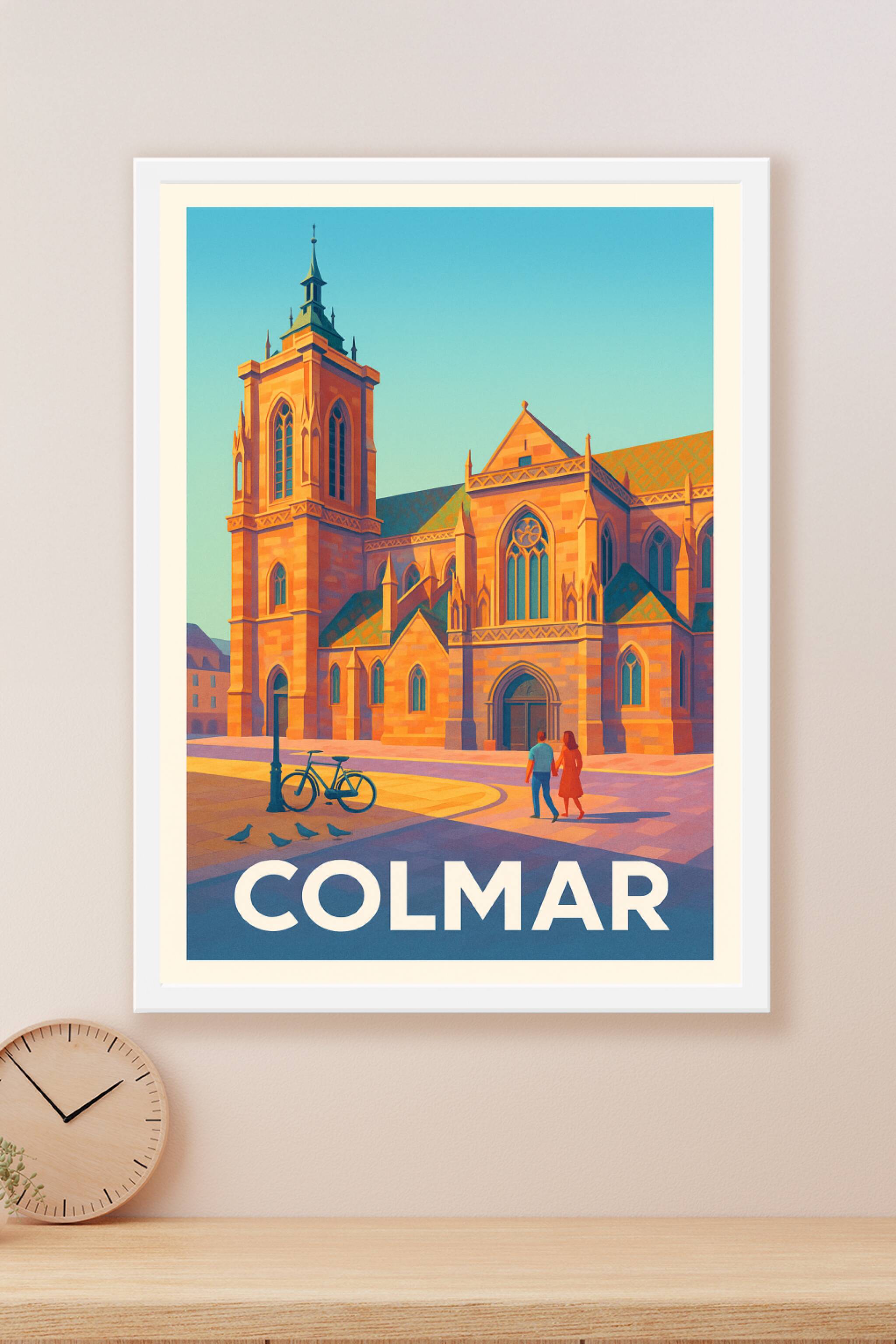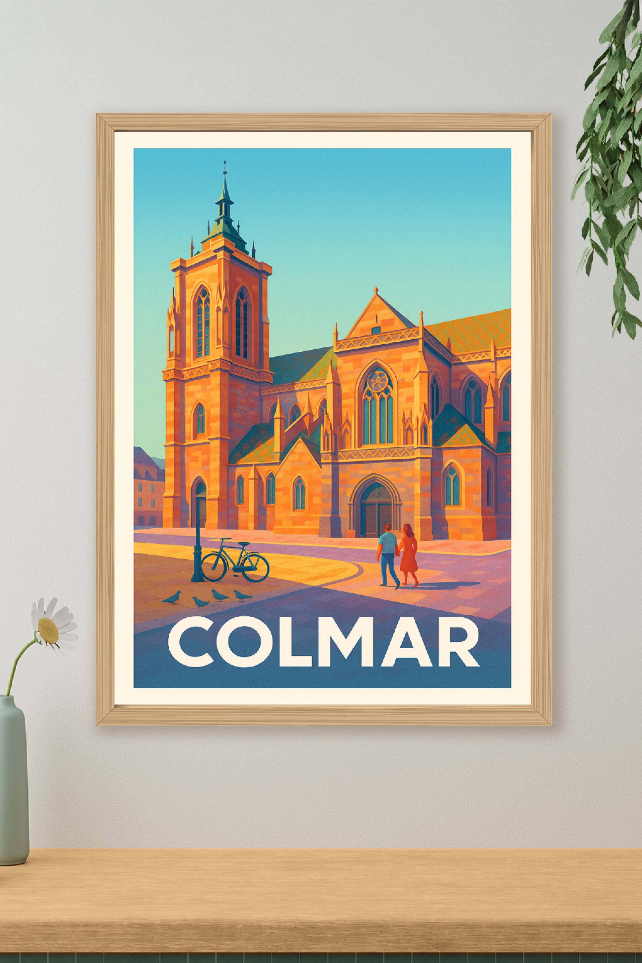 Découvrez l'élégance architecturale de Colmar avec cette affiche au style illustratif vibrant, mettant en lumière un édifice emblématique sous une ...