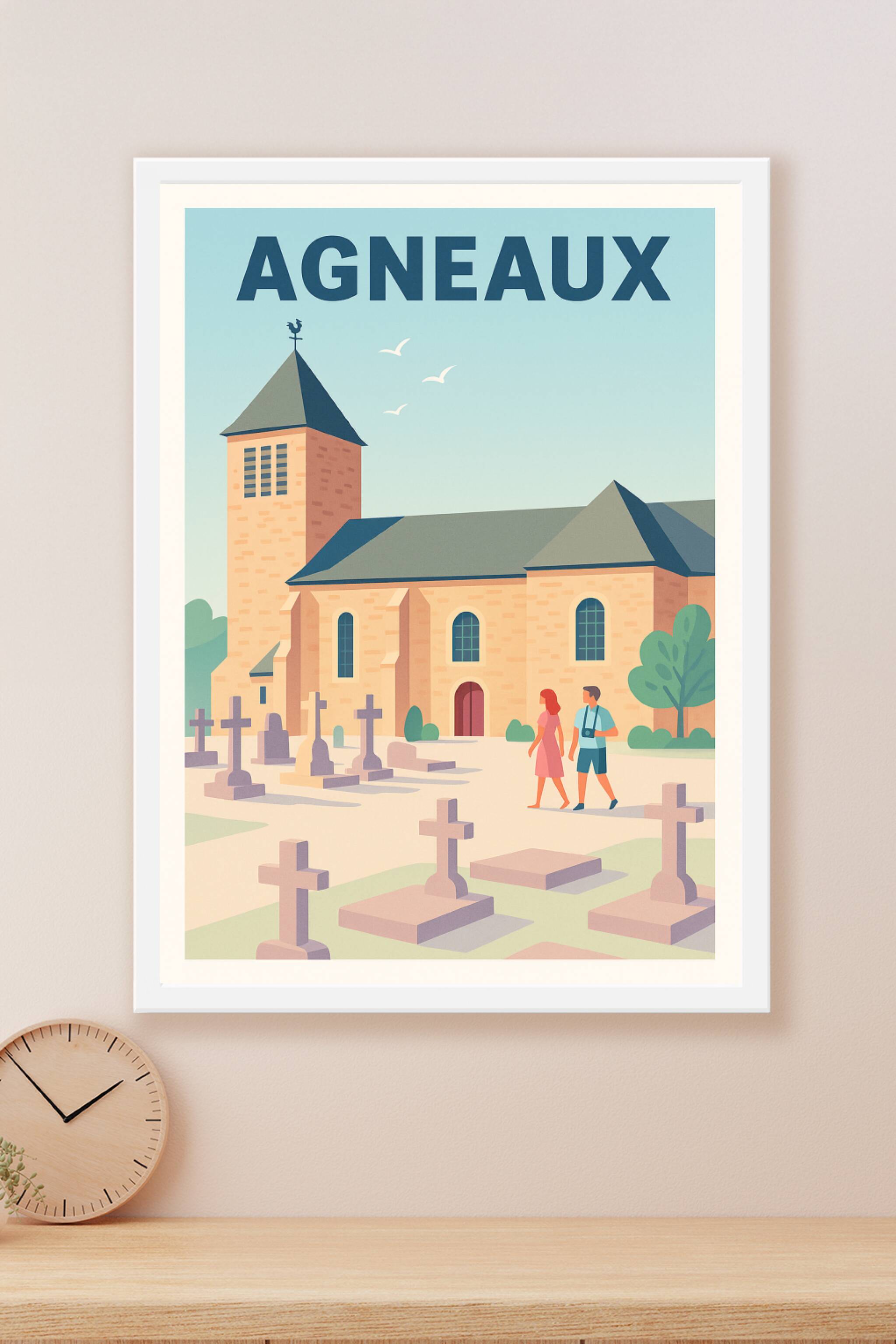 Découvrez l'élégance tranquille d'Agneaux à travers cette affiche illustrée mettant en avant son architecture authentique et son ambiance sereine. ...