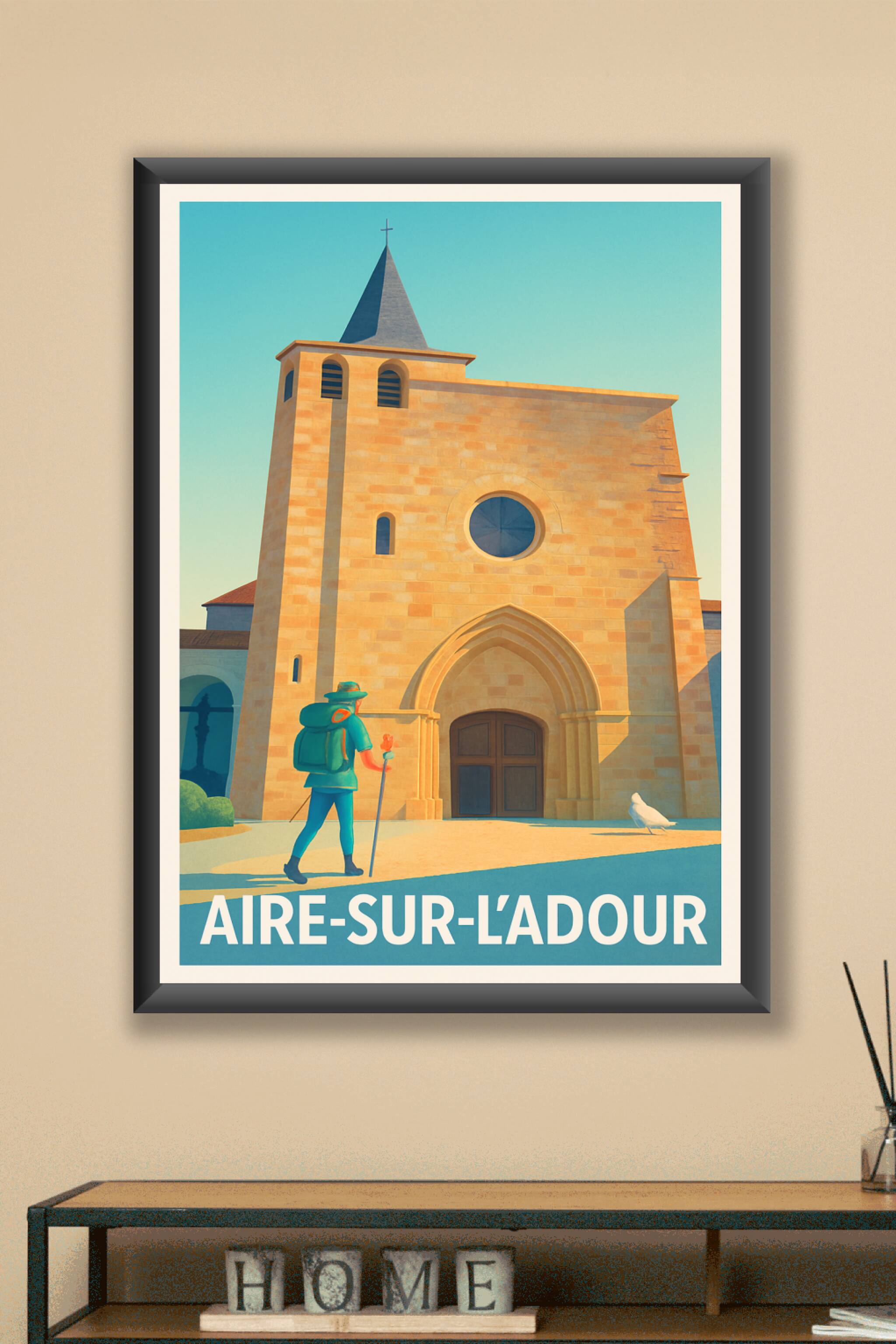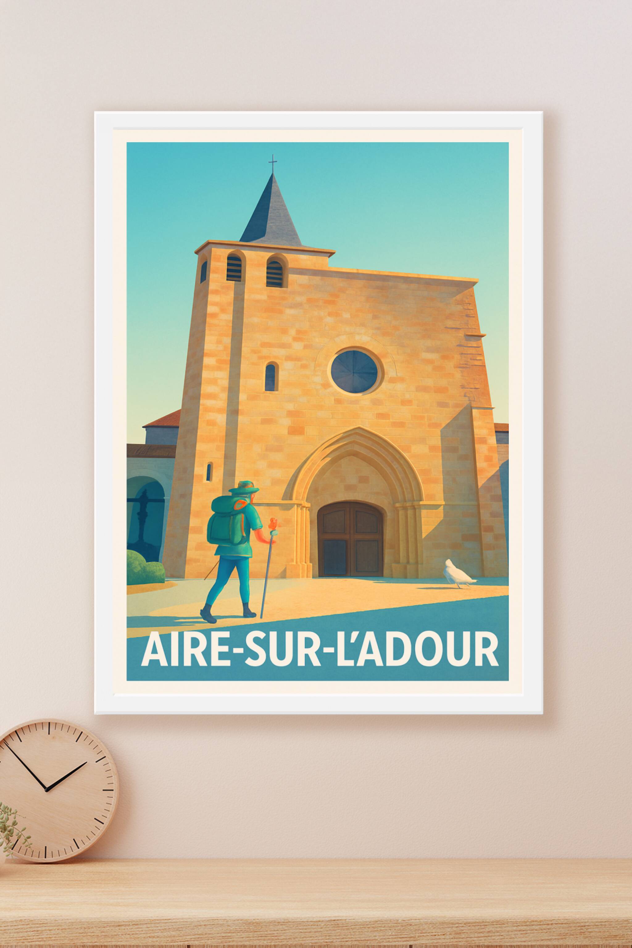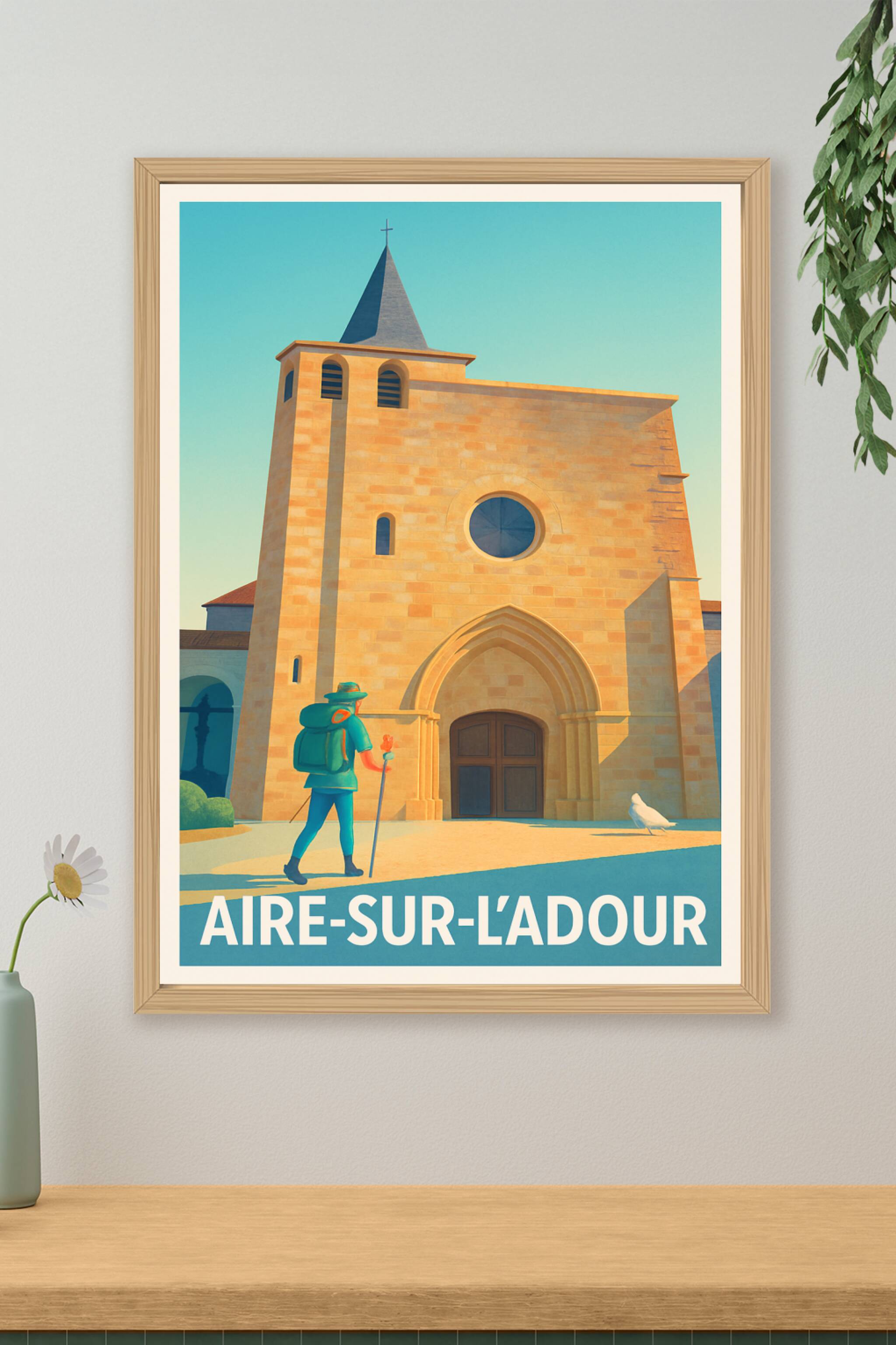 Découvrez la quiétude et le charme authentique d'Aire-sur-l'Adour avec cette affiche illustrée mettant en scène son architecture emblématique sous ...