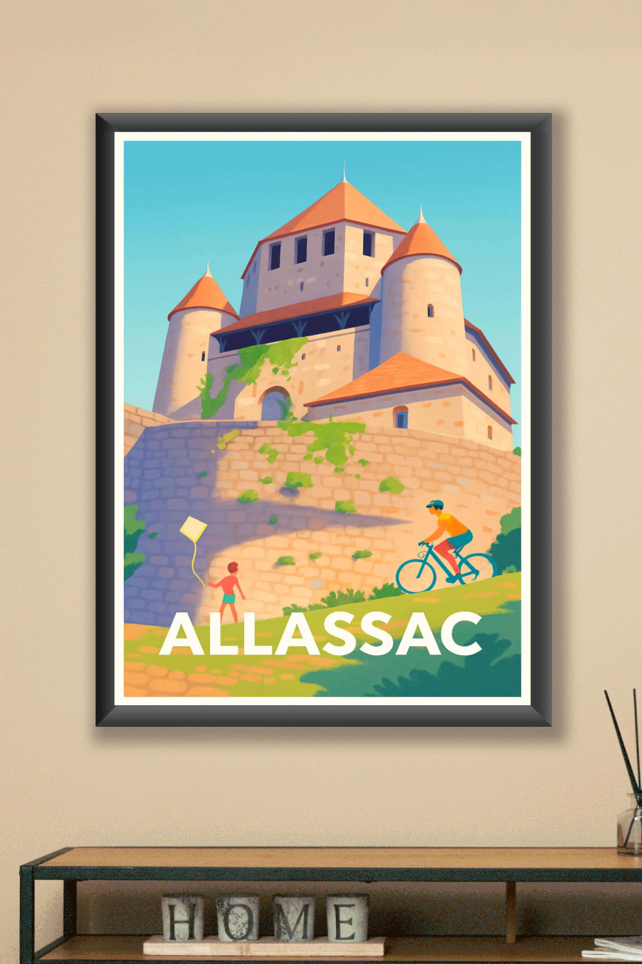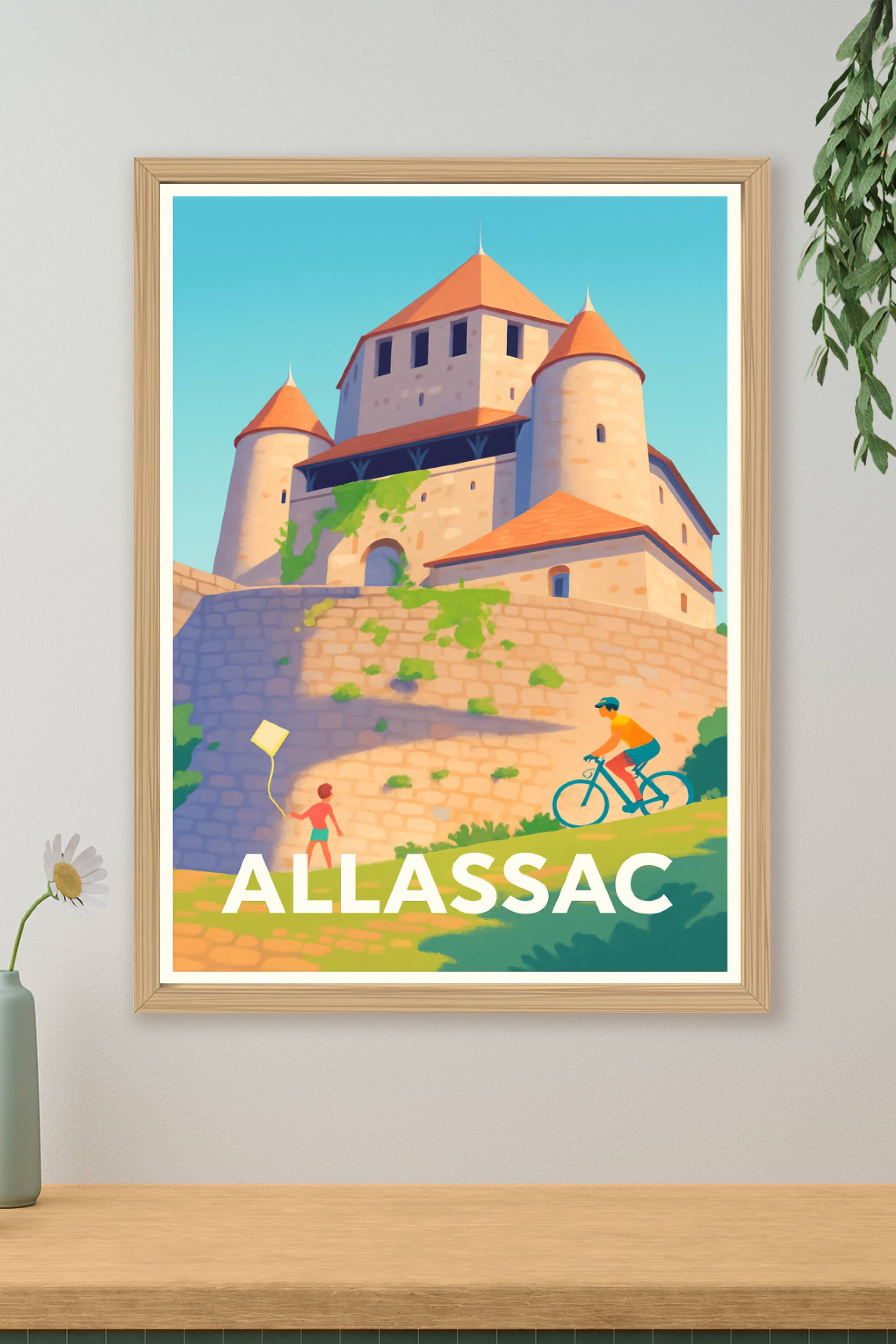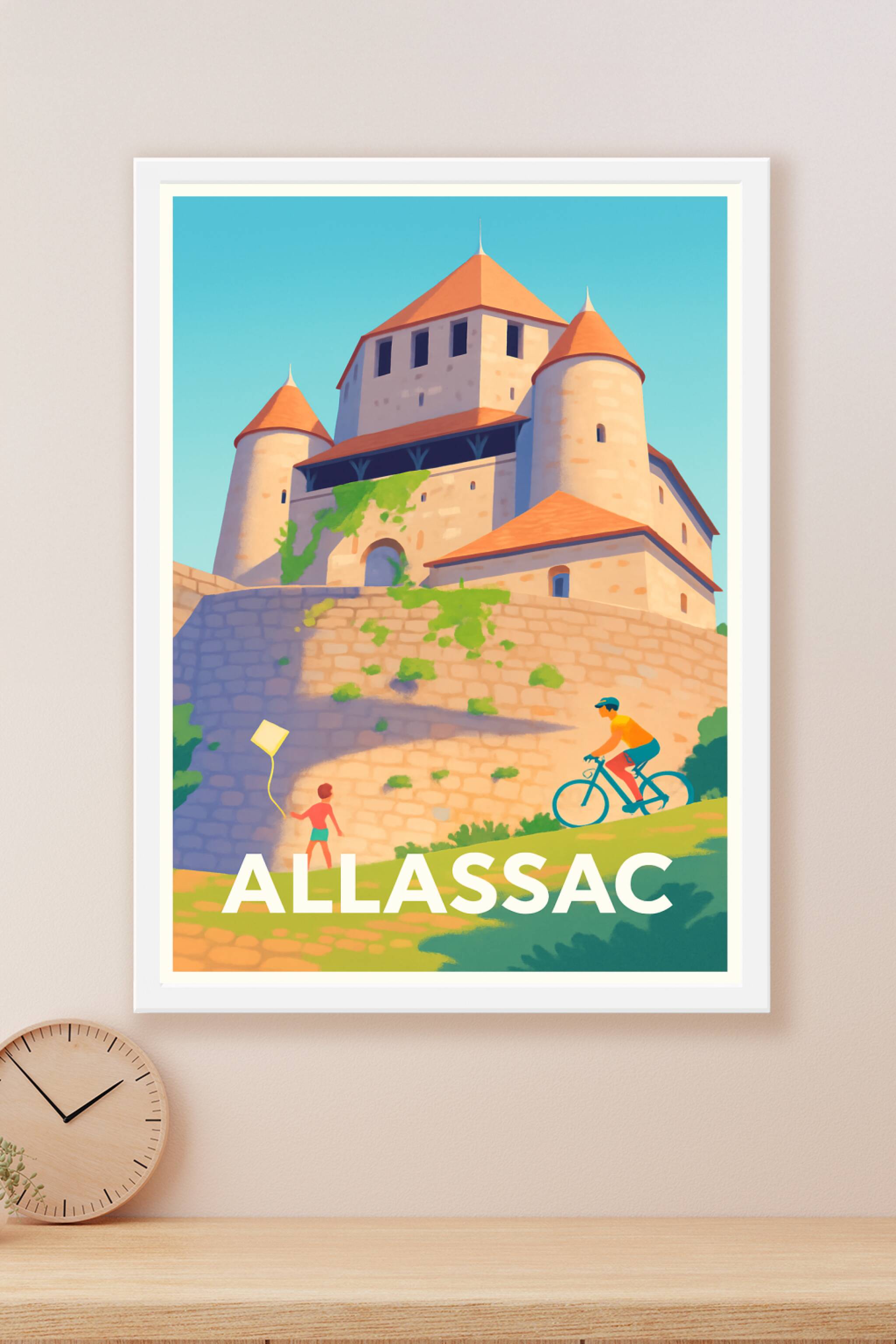 Découvrez le charme historique et la douceur de vivre d'Allassac avec cette affiche illustrée représentant son emblématique château et ses environs...