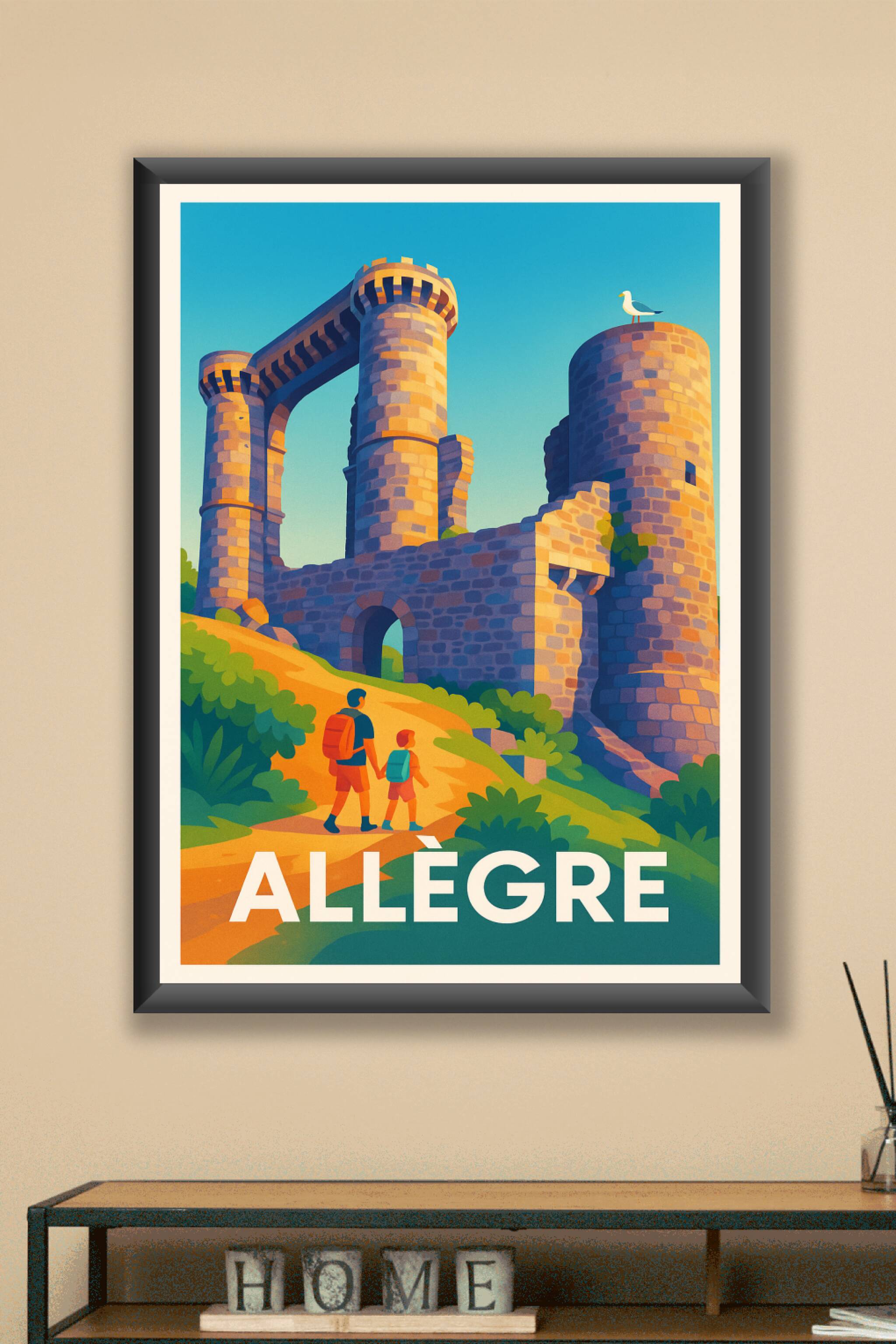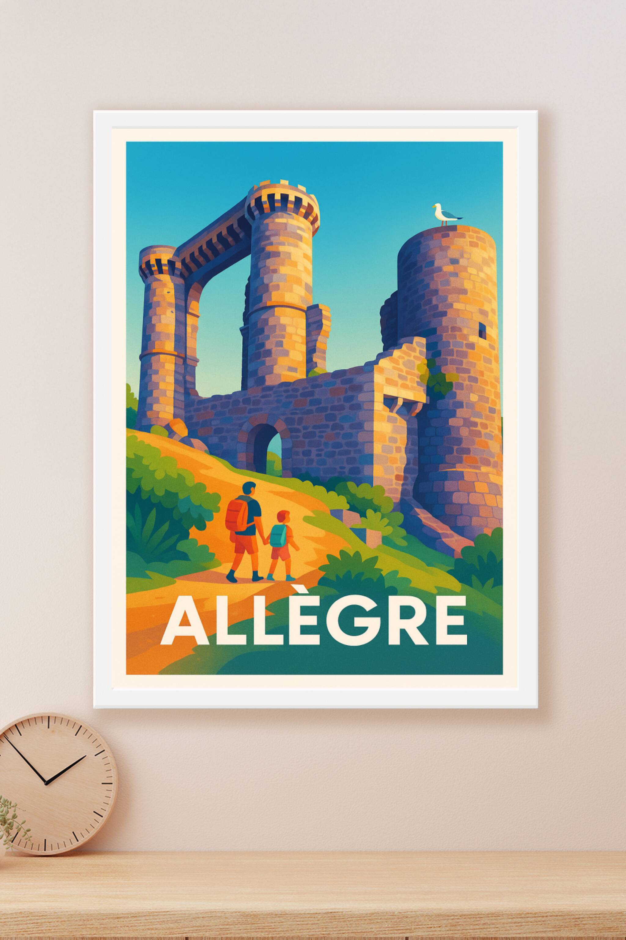 Découvrez l'affiche qui célèbre la magnifique cité d'Allègre avec son emblématique château médiéval. Ce poster vibrant, mêlant douceur des couleurs...