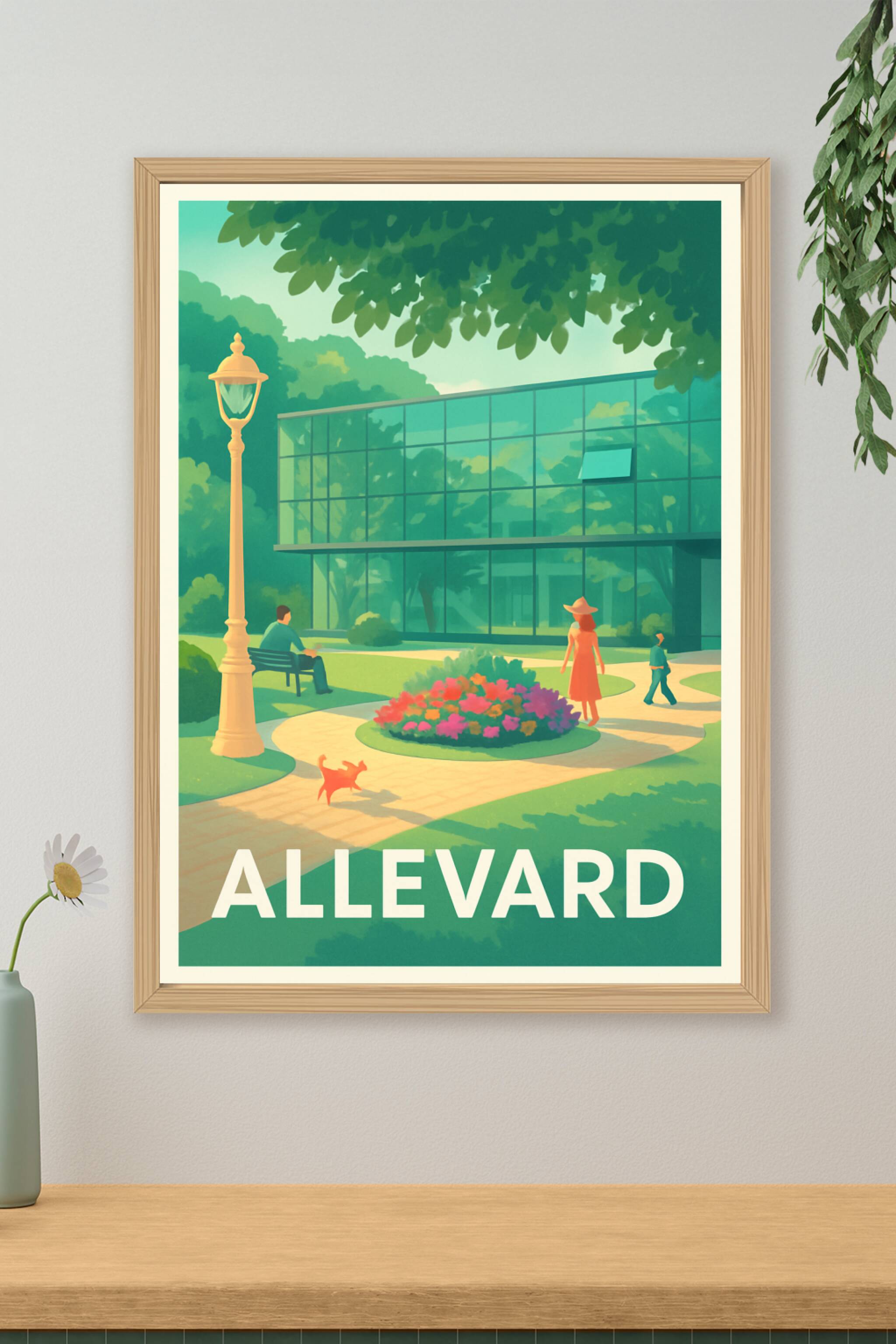 Découvrez la sérénité d'Allevard avec cette affiche inspirante qui capture un moment de quiétude dans un parc verdoyant, aux contours lumineux et a...
