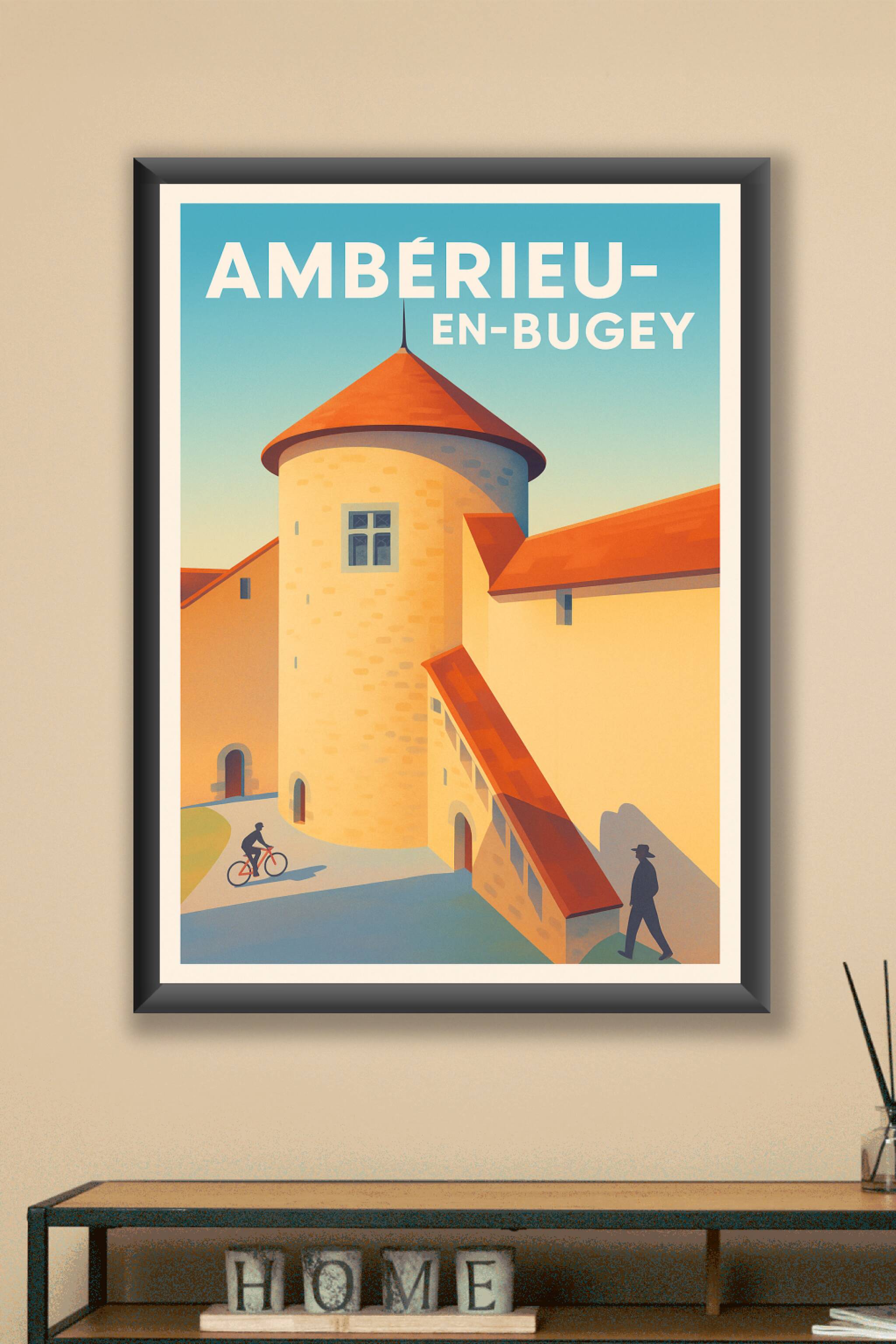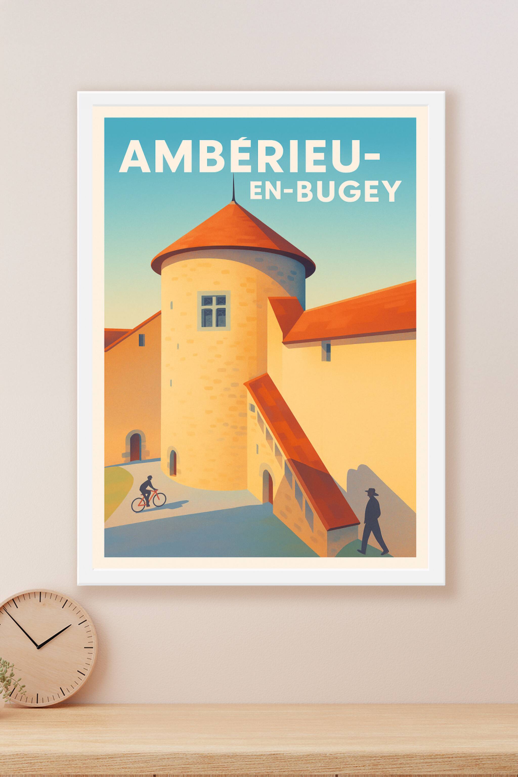 Découvrez l'élégance et la sérénité d'Ambérieu-en-Bugey avec cette affiche au design épuré et lumineux. Ce poster met en valeur l'architecture typi...