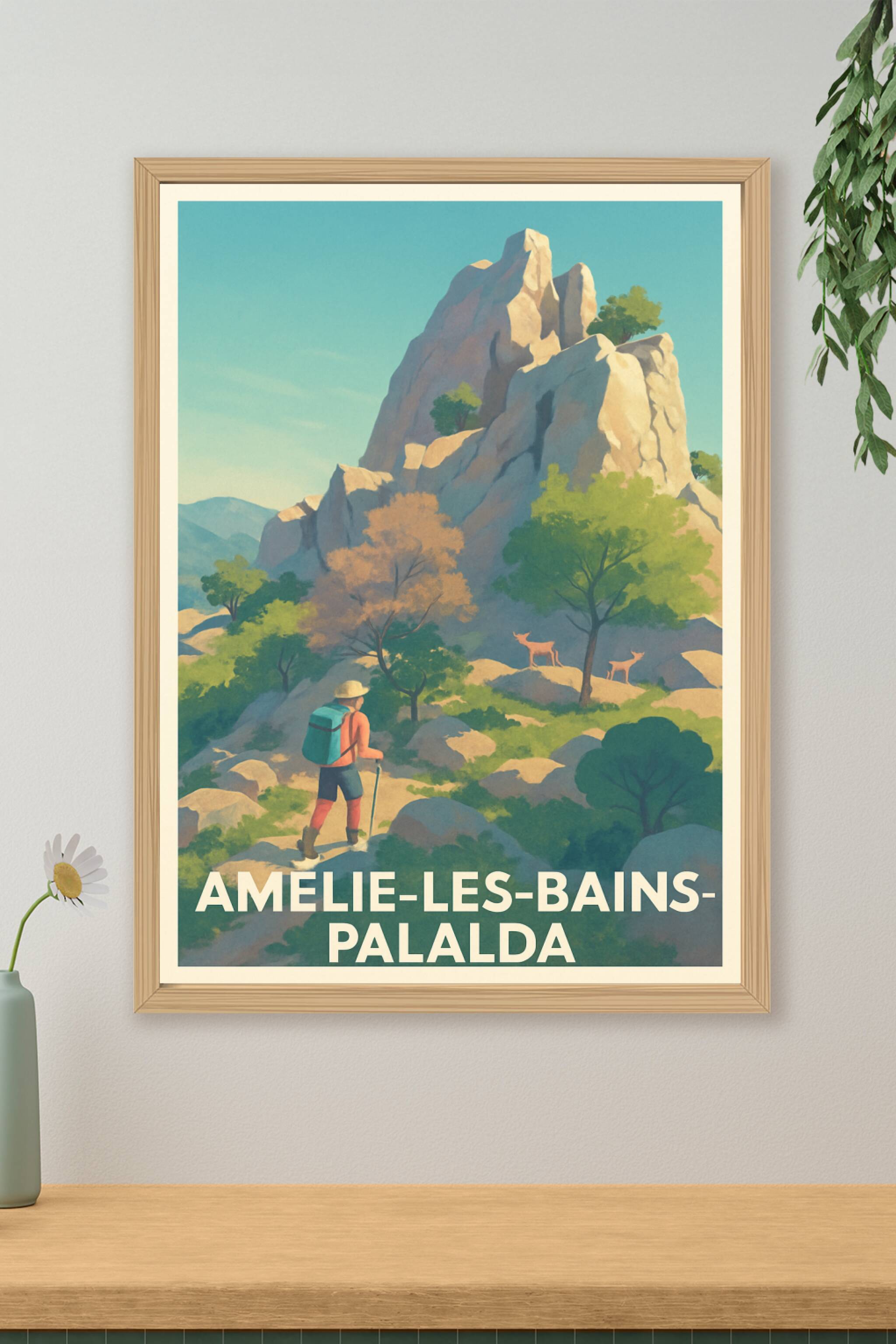 Découvrez l'authenticité et la beauté sauvage d'Amélie-les-Bains-Palalda à travers cette superbe affiche illustrée, idéale pour les amoureux de ran...