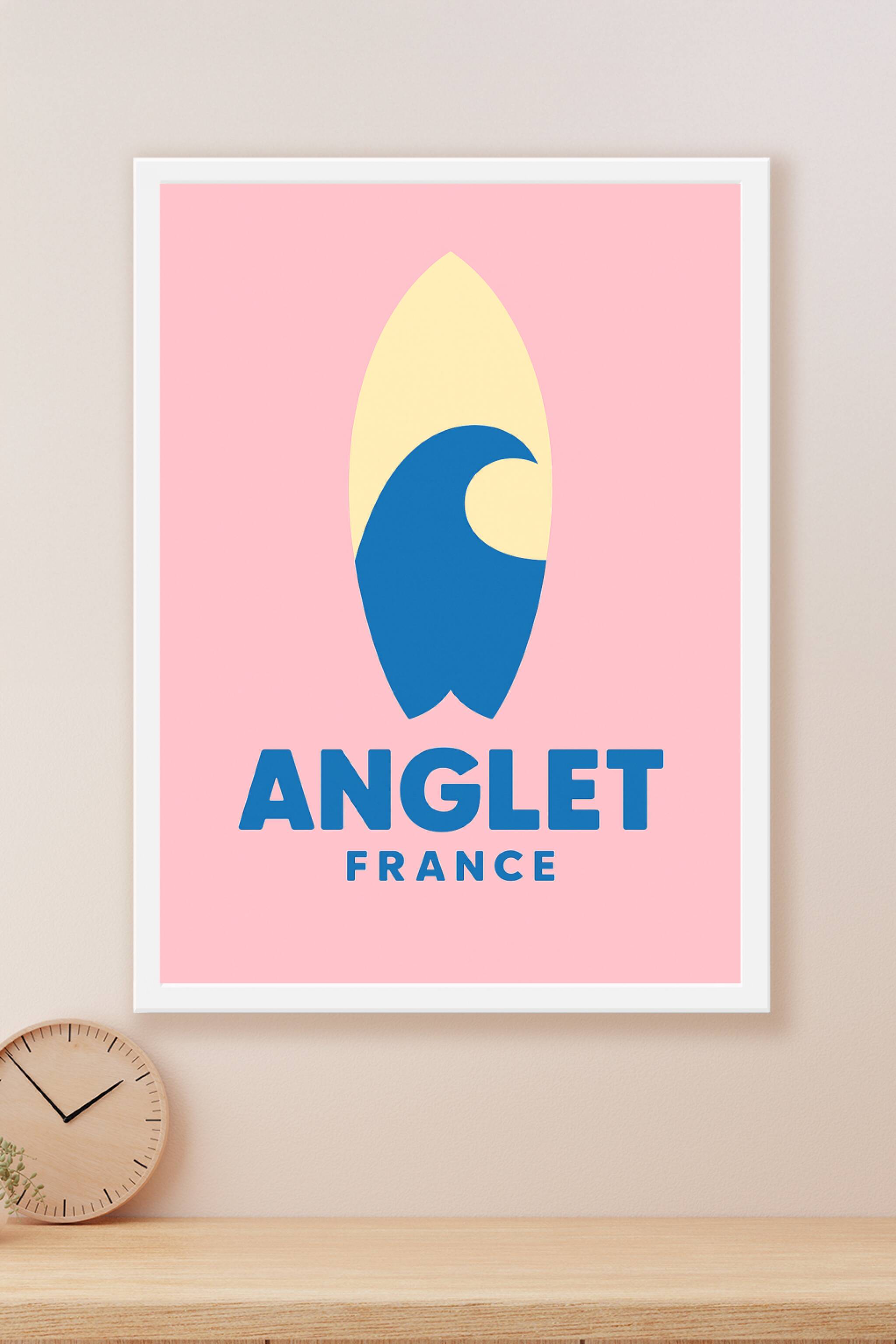 Apportez une touche moderne et colorée à votre intérieur avec cette affiche évoquant Anglet, célèbre pour ses plages et son ambiance surf unique. C...