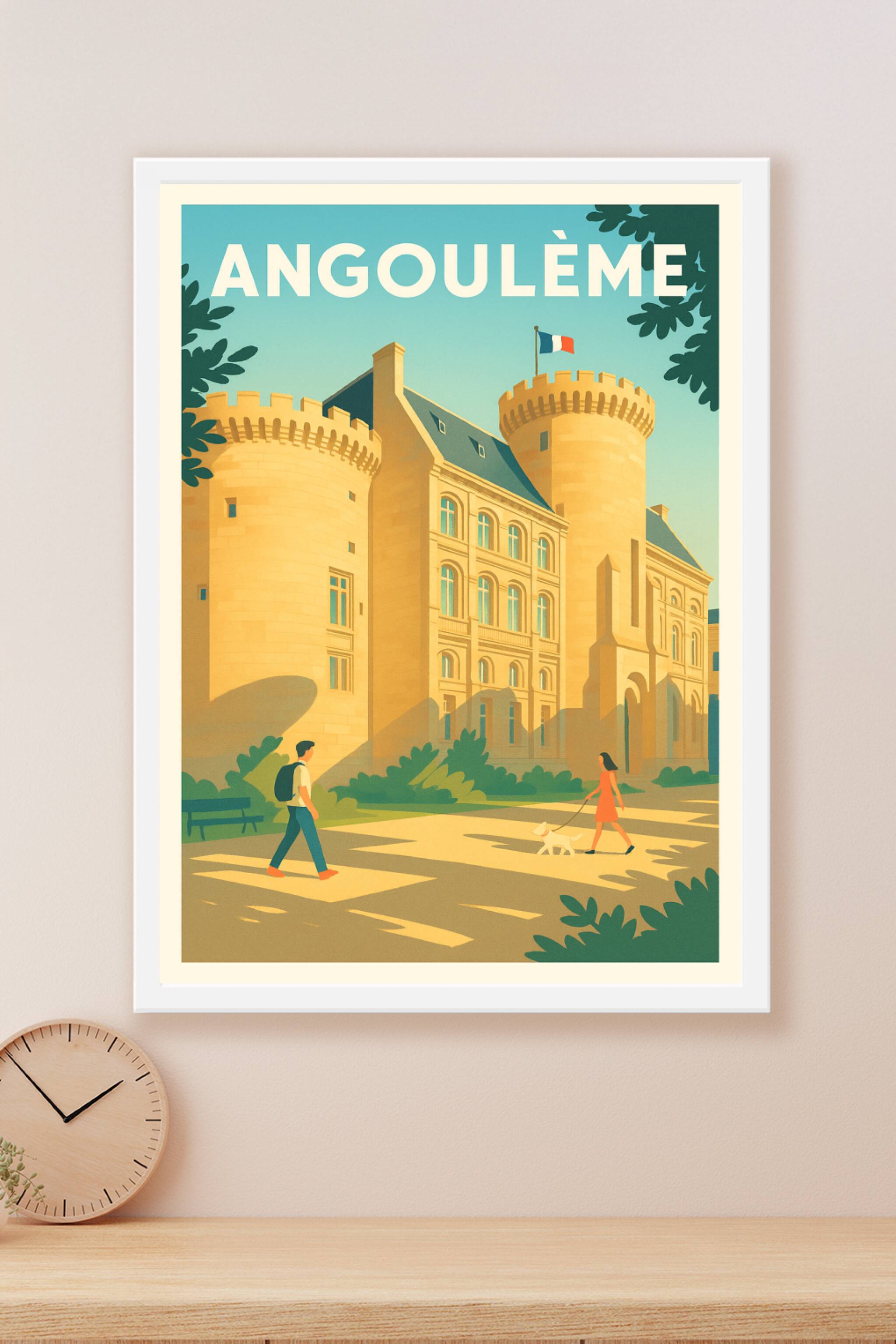 Découvrez la beauté architecturale d'Angoulême avec cette affiche illustrée mettant en lumière un bâtiment emblématique baigné dans une lumière chaleureuse. Ce poster élégant capture l'atmosphère paisible et authentique de la ville, avec ses grandes tours et ses ruelles ombragées.Ce poster est proposé en tirage "Fine Art", réalisé sur un papier coton 305g pour garantir une qualité d'impression exceptionnelle et une durabilité optimale. Disponible en formats A1 à A4, avec ou sans cadre, cette affiche s'intègre parfaitement à tous les styles d'intérieur, apportant une touche de patrimoine et de sérénité. Profitez d'une impression haut de gamme, 100% fabriquée en France, pour embellir votre déco ou offrir un souvenir raffiné aux amoureux d'Angoulême.
