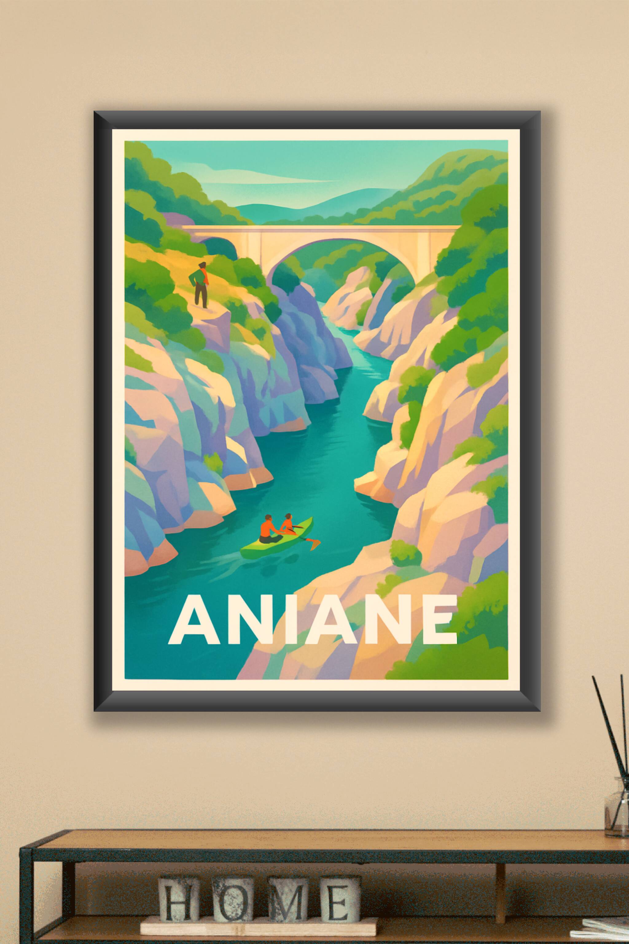 Découvrez le charme authentique d'Aniane à travers cette affiche illustrée qui met en avant ses magnifiques gorges et son cours d'eau turquoise. Ce poster invite à l'évasion et aux promenades en plein air, parfait pour les amoureux de la nature et des paysages apaisants. Imprimée en tirage "Fine Art" sur papier 305g coton, cette affiche garantit une qualité d'impression exceptionnelle et une durabilité remarquable. Disponible en formats A1 à A4, avec ou sans cadre, elle s'adapte à tous les styles de décoration d'intérieur. Offrez-vous un souvenir unique d'Aniane ou un cadeau raffiné, 100% fabriqué en France.
