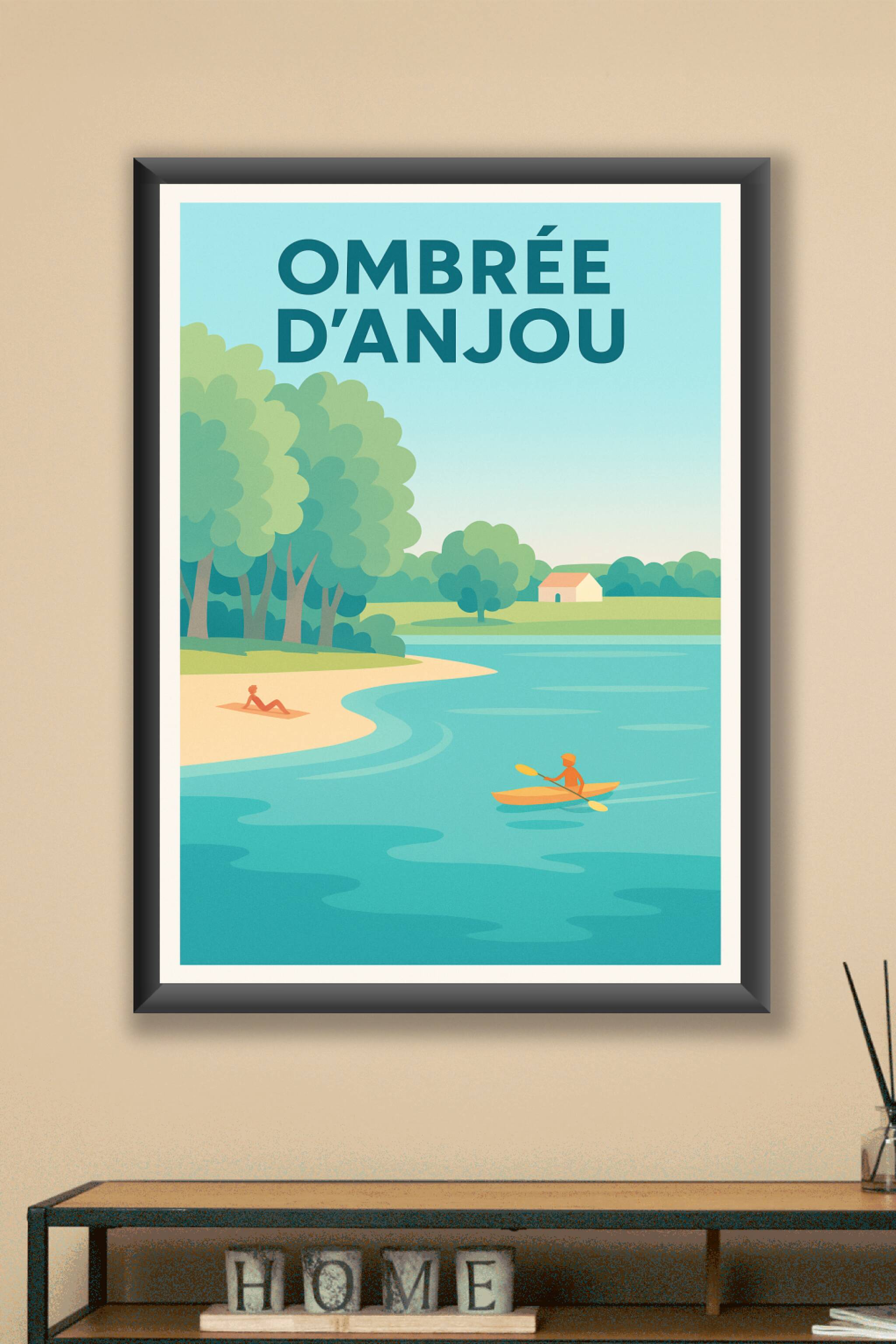Découvrez l'atmosphère paisible de l'Anjou avec cette affiche illustrée où la nature luxuriante rencontre une rivière calme. Un poster parfait pour...