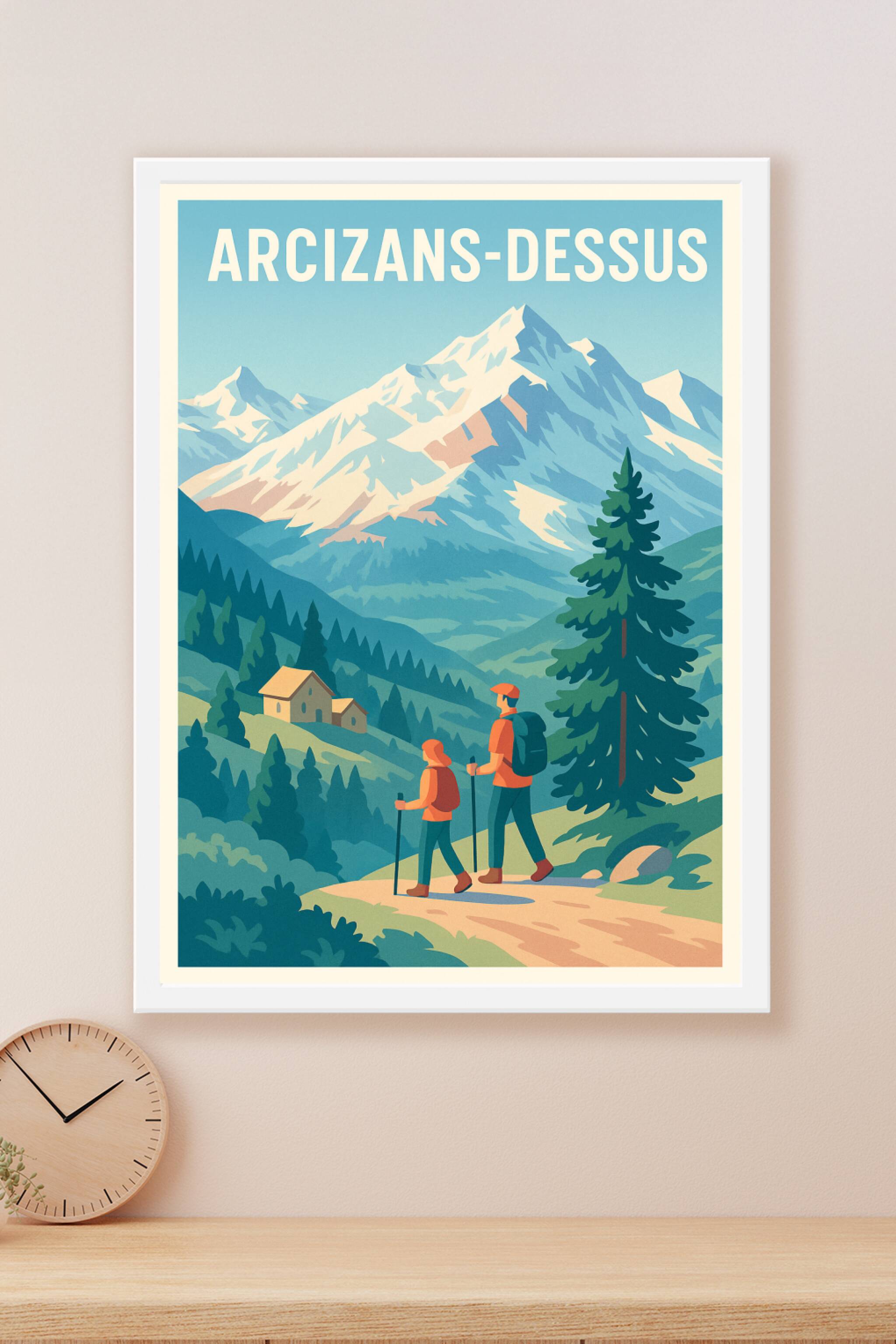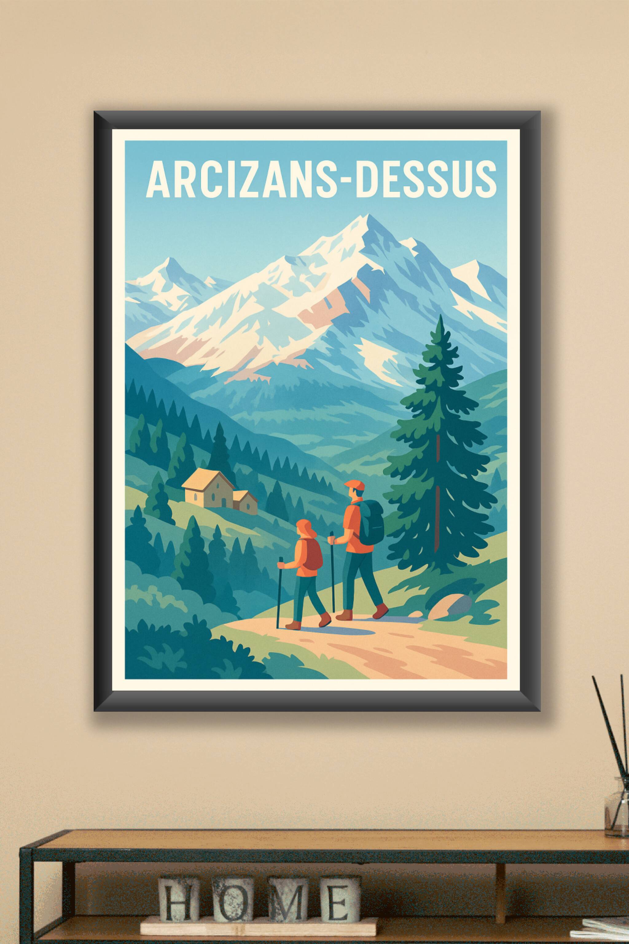Découvrez la beauté naturelle et sereine d'Arcizans-Dessus avec cette affiche au style vintage inspirant l'aventure en montagne. Représentant deux randonneurs sur un sentier dominant un paysage de sommets enneigés et de forêts verdoyantes, ce poster est une invitation à l'évasion et à la détente en pleine nature.Ce poster est imprimé en tirage "Fine Art" sur papier 305g coton garantissant une qualité d'impression exceptionnelle, des couleurs vives et une excellente durabilité. Disponible en formats A1 à A4, vous pouvez choisir votre affiche avec ou sans cadre pour sublimer votre décoration intérieure ou offrir un cadeau raffiné aux passionnés de montagne et de randonnée.Provenant d'une fabrication 100% française, cette affiche au style rétro apporte une touche d'authenticité et de fraîcheur à chaque intérieur.