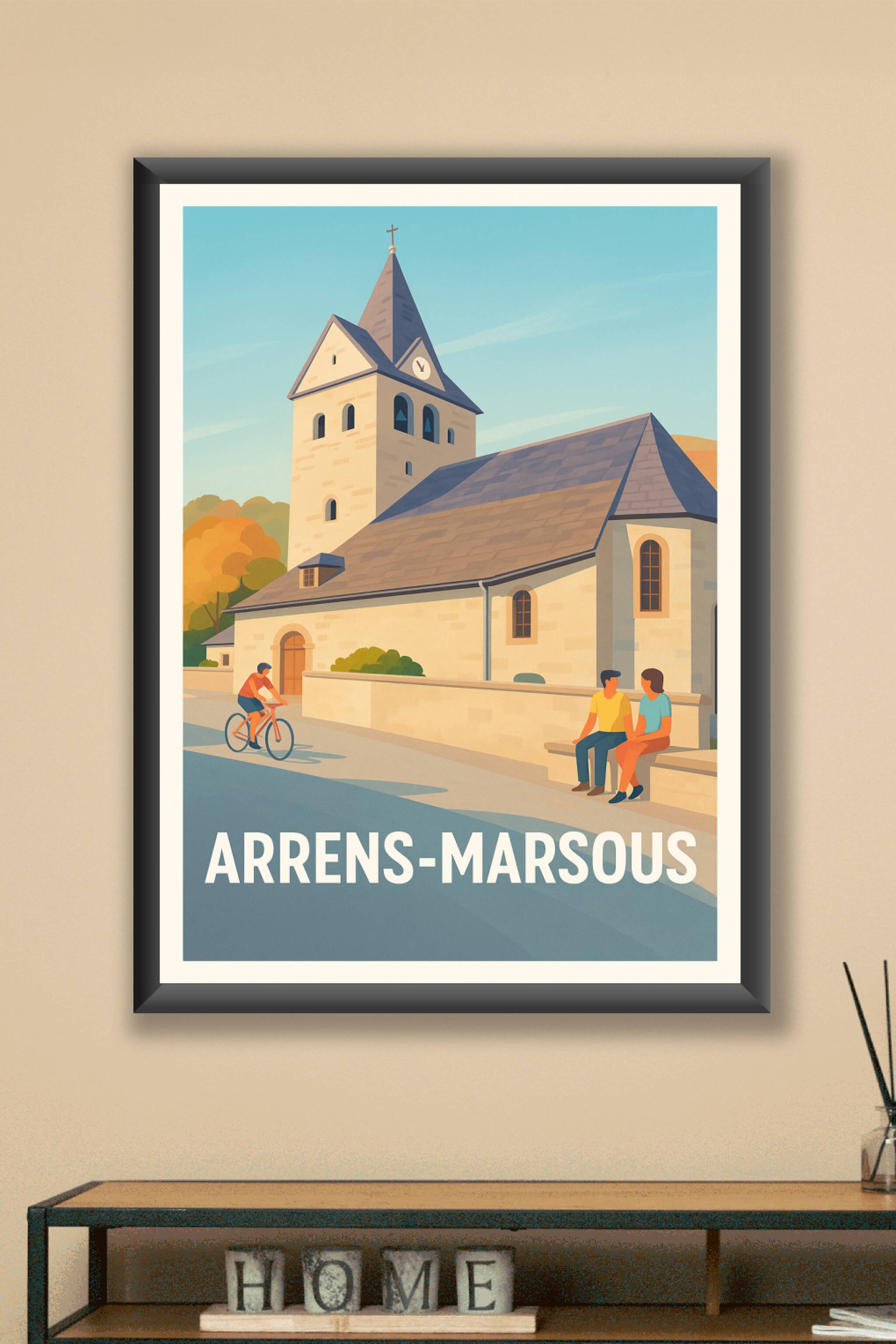 Découvrez l'élégance paisible d'Arrens-Marsous à travers cette affiche illustrée mettant en scène une église typique baignée de lumière chaude, entourée d'un décor naturel aux teintes automnales. Ce poster, au style graphique doux et épuré, invite à la sérénité et à l'évasion au cœur des Pyrénées.Cette affiche est imprimée en tirage "Fine Art" sur papier 305g coton, garantissant une qualité d'impression irréprochable et des couleurs profondes qui subliment chaque détail. Disponible en formats A1 à A4, avec ou sans cadre, elle s'adapte parfaitement à votre intérieur pour y apporter une touche d'authenticité et de tranquillité.Profitez d'un produit 100% fabriqué en France, idéal pour les amoureux de la montagne, à offrir ou à s'offrir comme souvenir unique et raffiné.