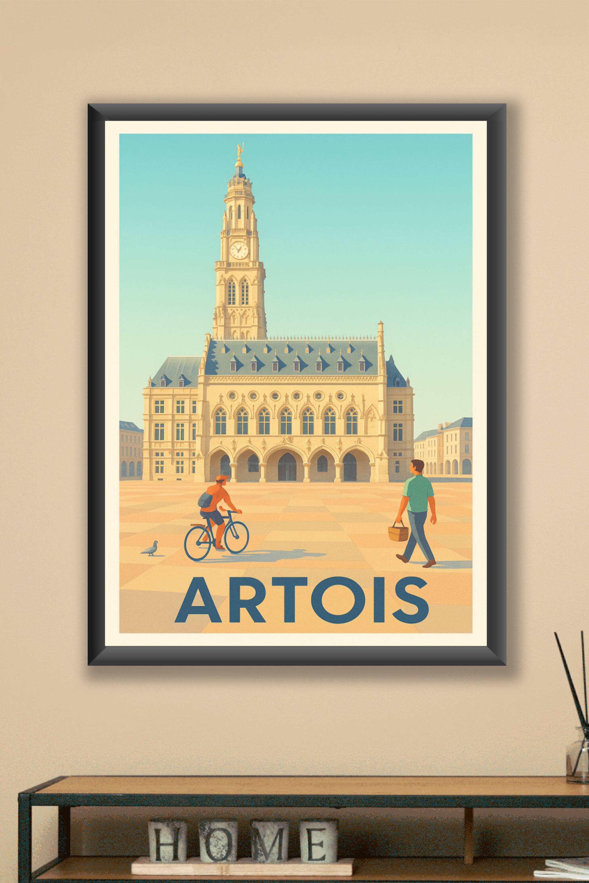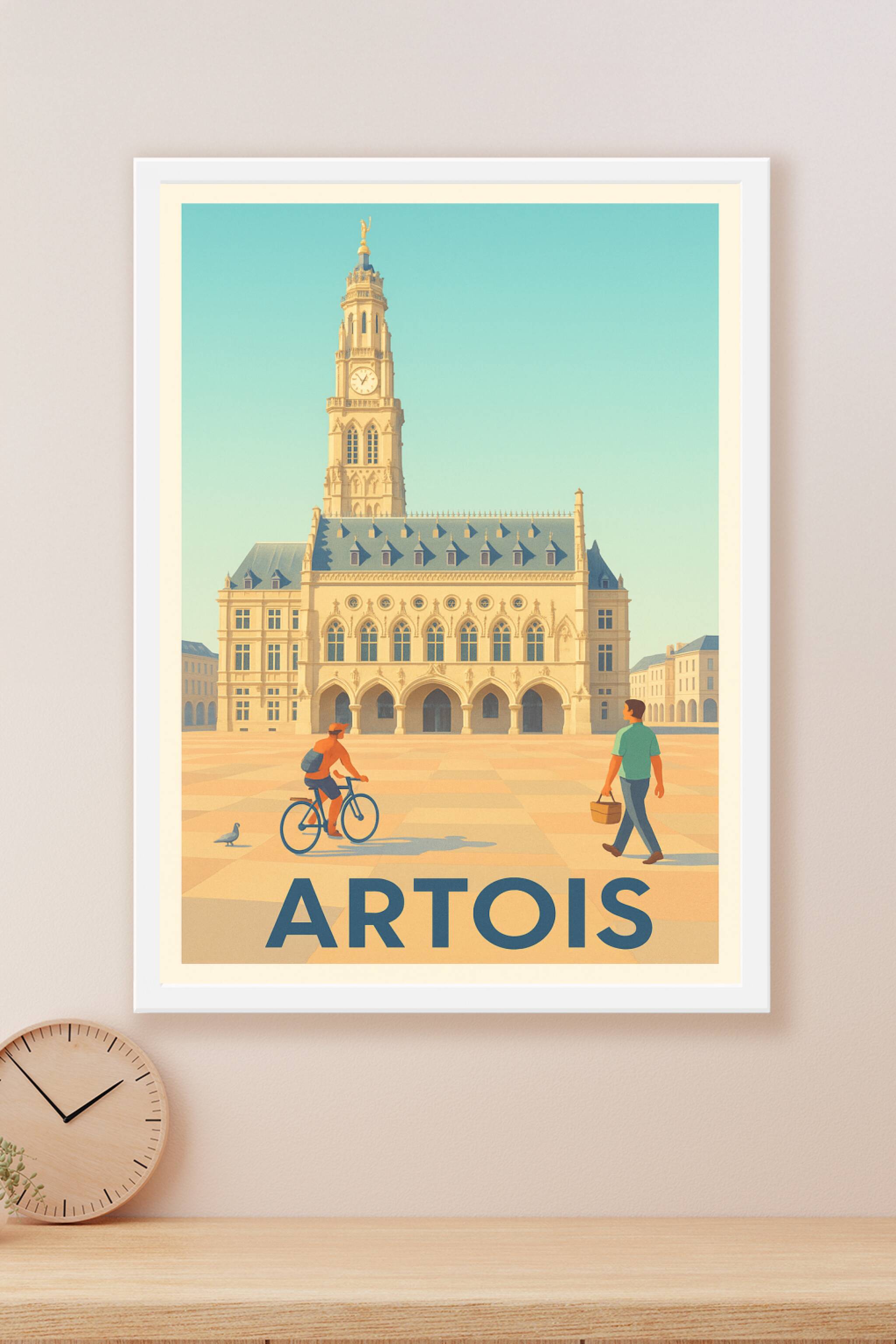 Découvrez l'élégance architecturale d'Artois avec cette affiche illustrative représentant un monument emblématique dans la lumière douce du jour. C...