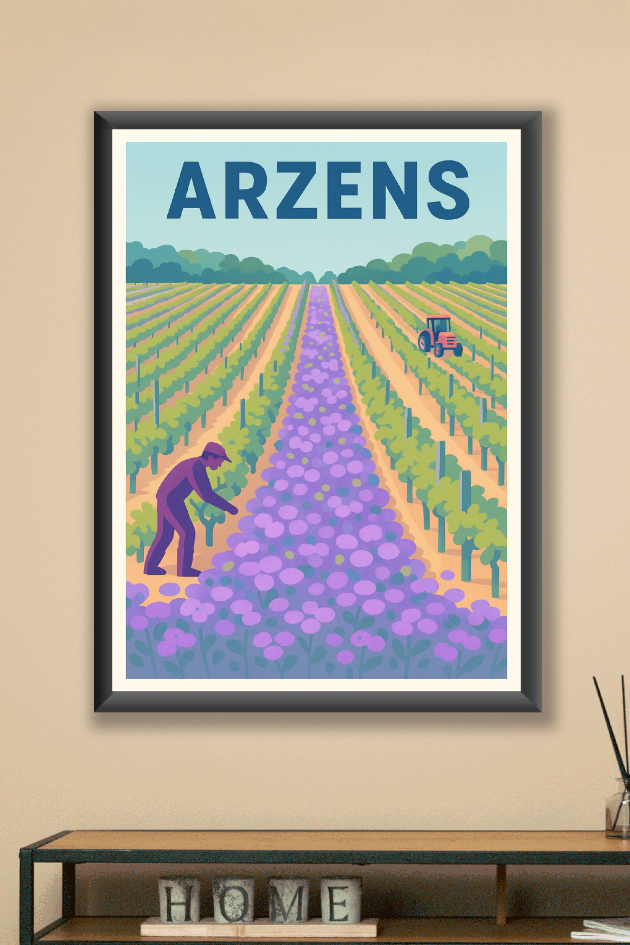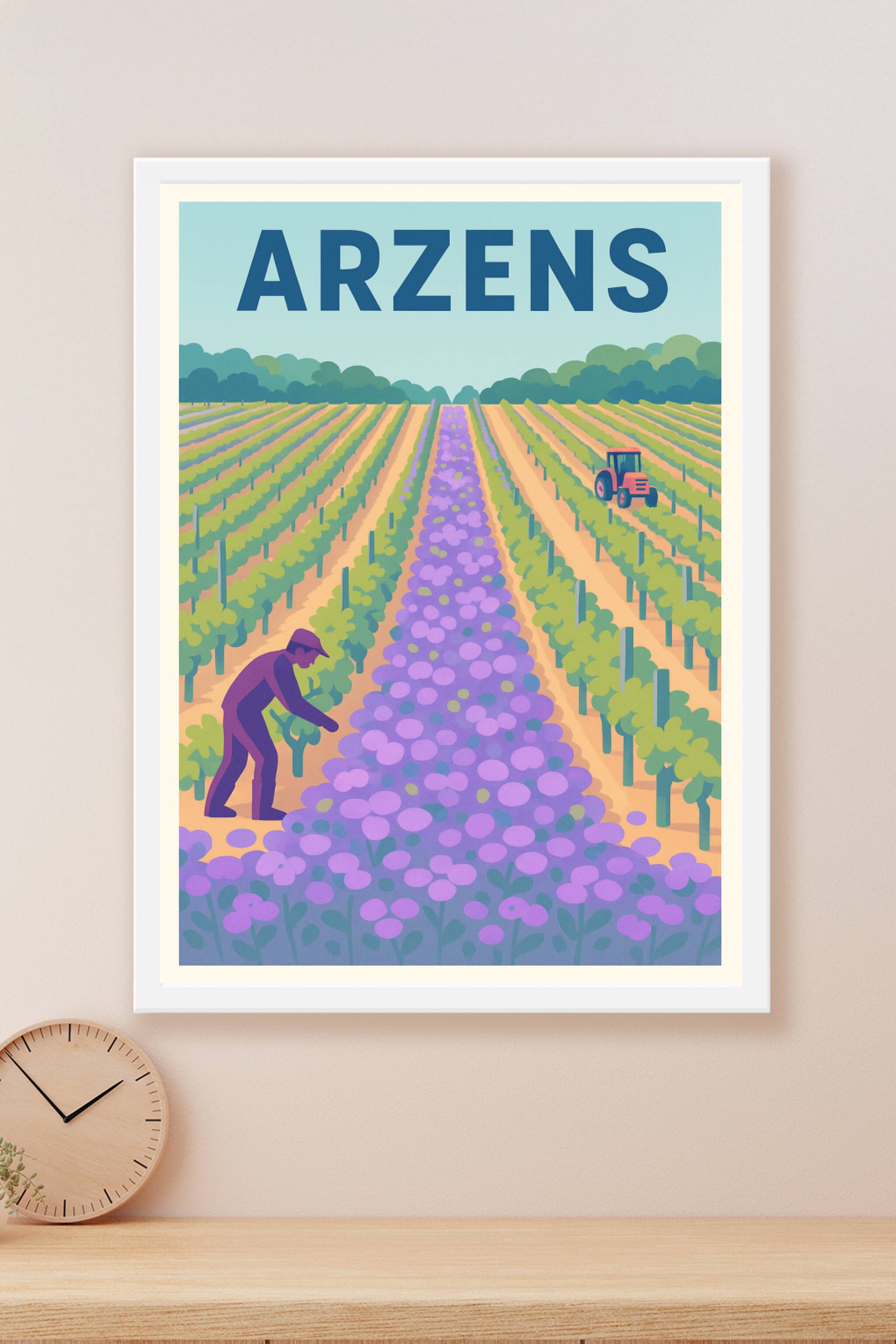 Découvrez l'affiche Arzens, une illustration vibrante et colorée qui célèbre la richesse des paysages agricoles de cette charmante région. Parfaite...