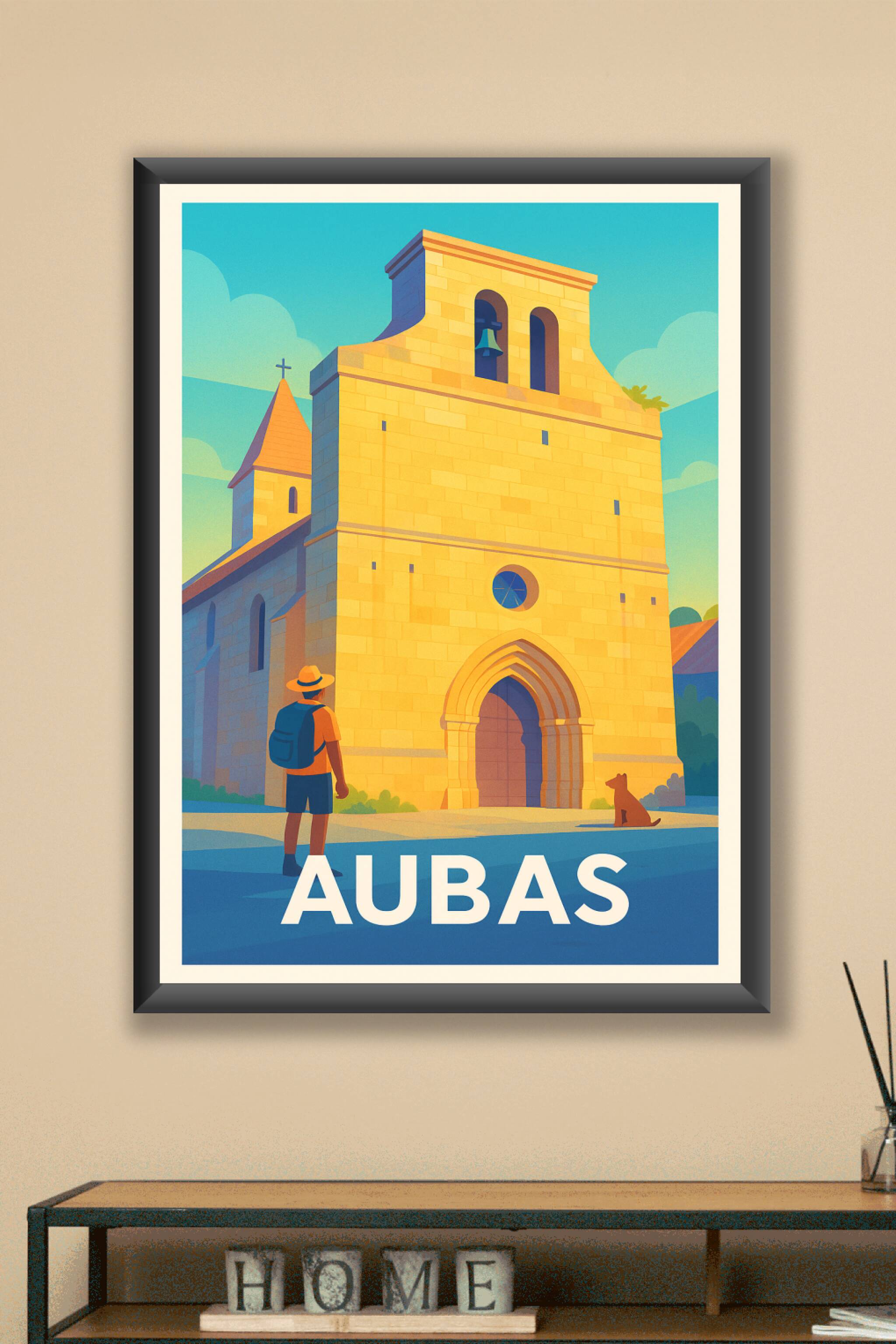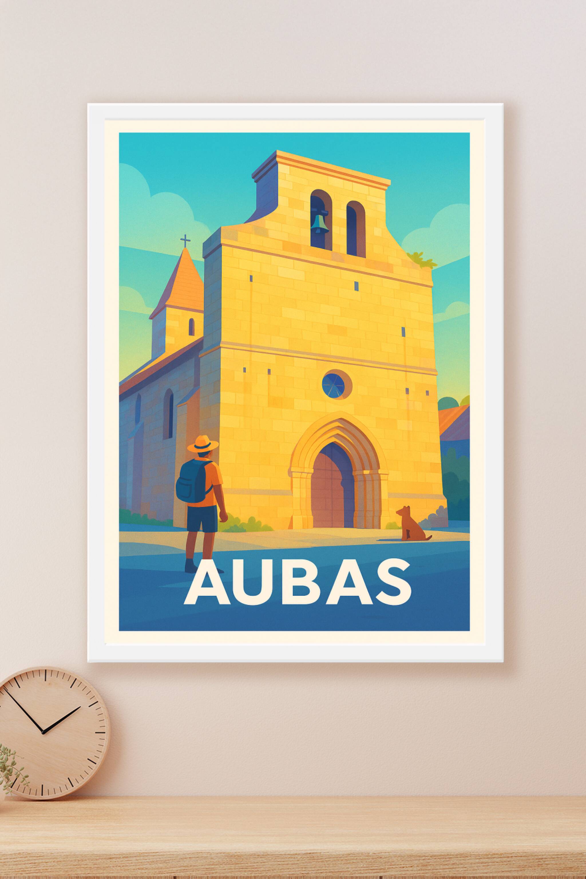 Découvrez Aubas à travers cette affiche artistique mettant en lumière son architecture emblématique sous un doux éclairage doré. Idéale pour les pa...