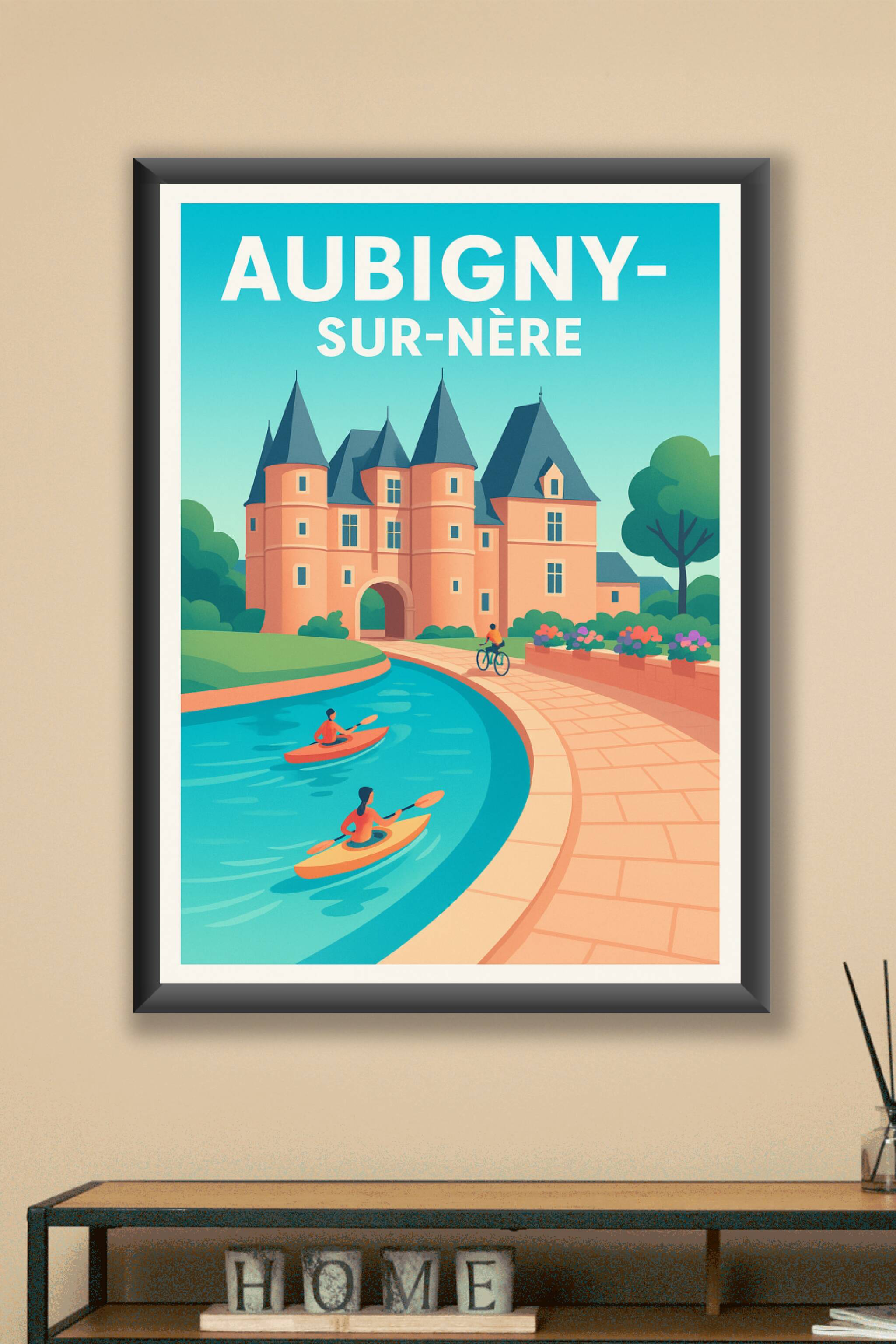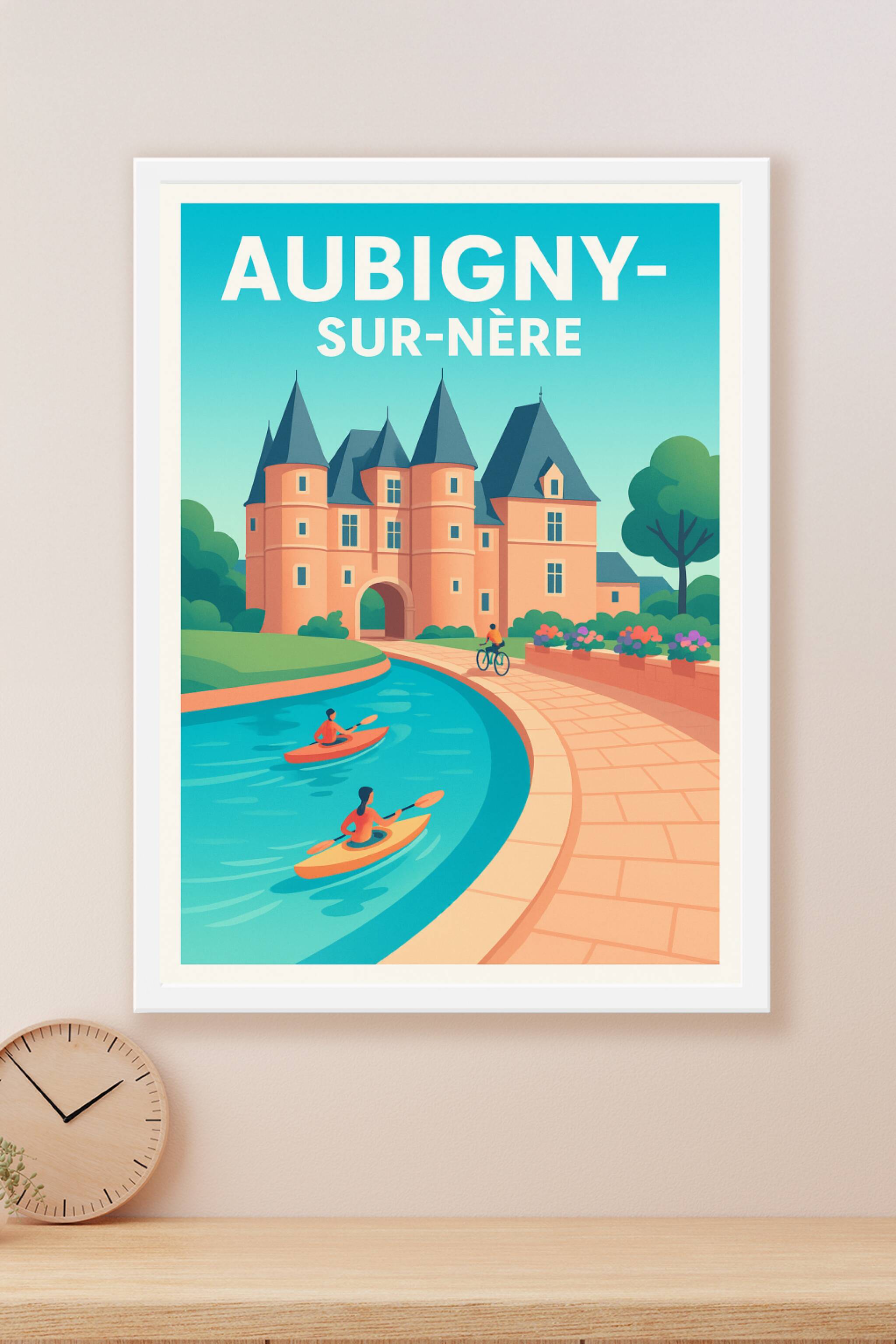 Découvrez l'élégance intemporelle d'Aubigny-sur-Nère à travers cette superbe affiche illustrée, mettant en scène son architecture remarquable et ses activités de plein air au fil de l'eau. Ce poster invite à une immersion paisible dans un décor où l'histoire rencontre la nature, avec ses kayaks glissant sur la rivière et son château emblématique.Cette affiche est proposée en tirage "Fine Art" sur papier 305g coton, garantissant une qualité d'impression exceptionnelle et des couleurs éclatantes qui dureront dans le temps. Disponible aux formats A1, A2, A3 et A4, avec ou sans cadre, elle est idéale pour personnaliser votre intérieur ou comme cadeau raffiné pour les passionnés de belles destinations françaises. Fabriquée en France avec soin, cette poster allie esthétisme et qualité pour sublimer votre décoration.