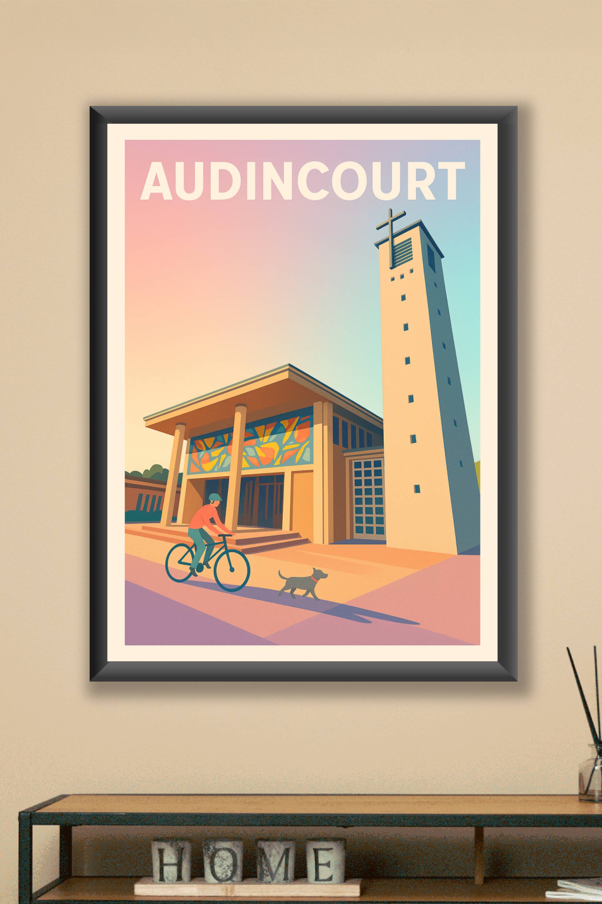 Découvrez la tranquillité d'Audincourt avec cette affiche graphique représentant un moment de vie simple et apaisant devant un édifice moderne et lumineux. Le poster met en valeur une balade à vélo sous un ciel dégradé aux teintes chaleureuses, évoquant douceur et sérénité.Cette affiche est imprimée en tirage "Fine Art" sur papier 305g coton de haute qualité, garantissant des couleurs vives et un rendu éclatant qui sublimera votre décoration intérieure. Disponible en plusieurs formats, de A1 à A4, avec ou sans cadre, ce poster s’adapte à tous les espaces et styles.Offrez-vous ou faites plaisir avec cette création artisanale, 100% fabriquée en France, qui apporte une touche d’élégance et de poésie à votre intérieur.