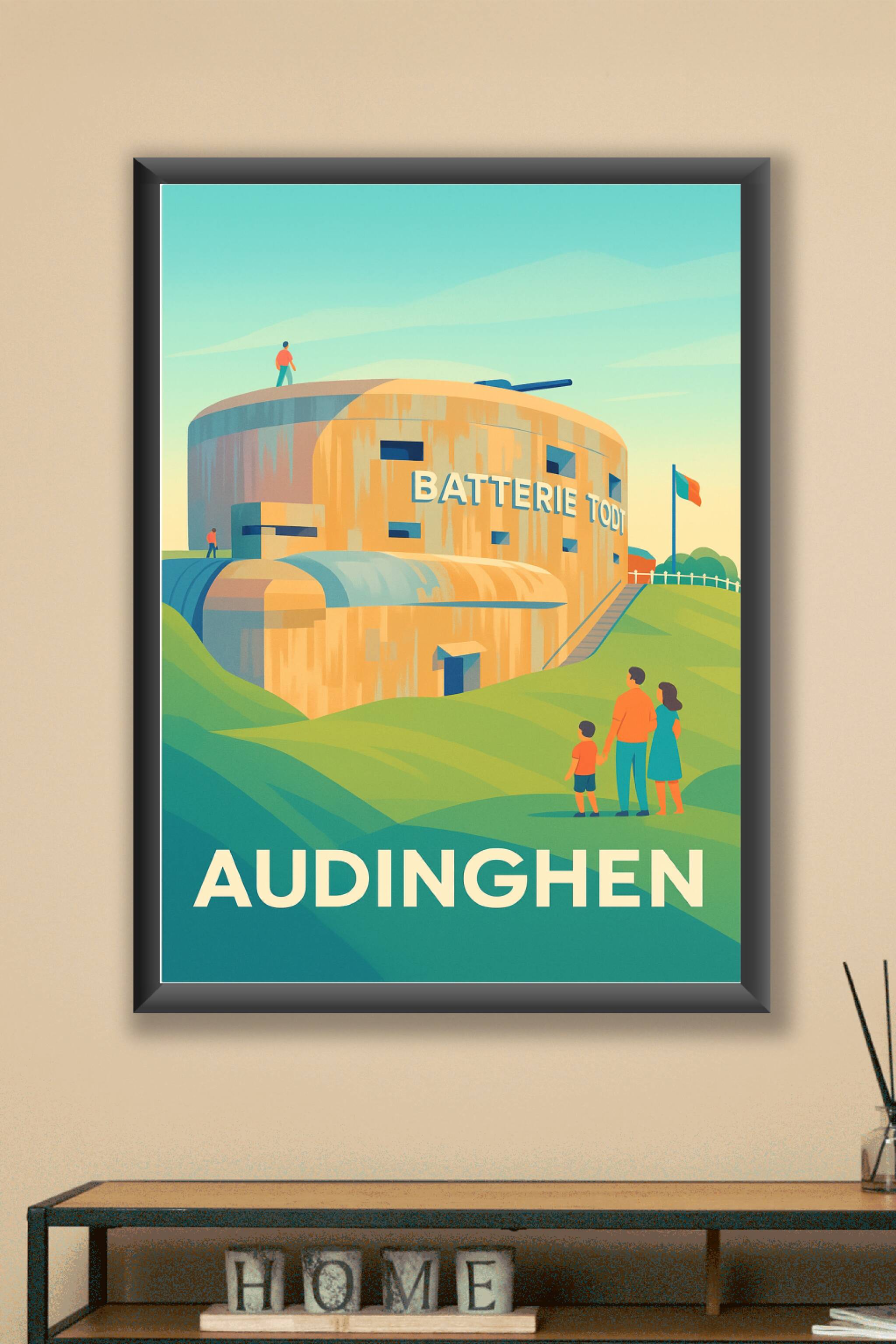 Apportez une touche historique et artistique à votre intérieur avec cette affiche représentant la Batterie Todt à Audinghen, célèbre site du patrim...