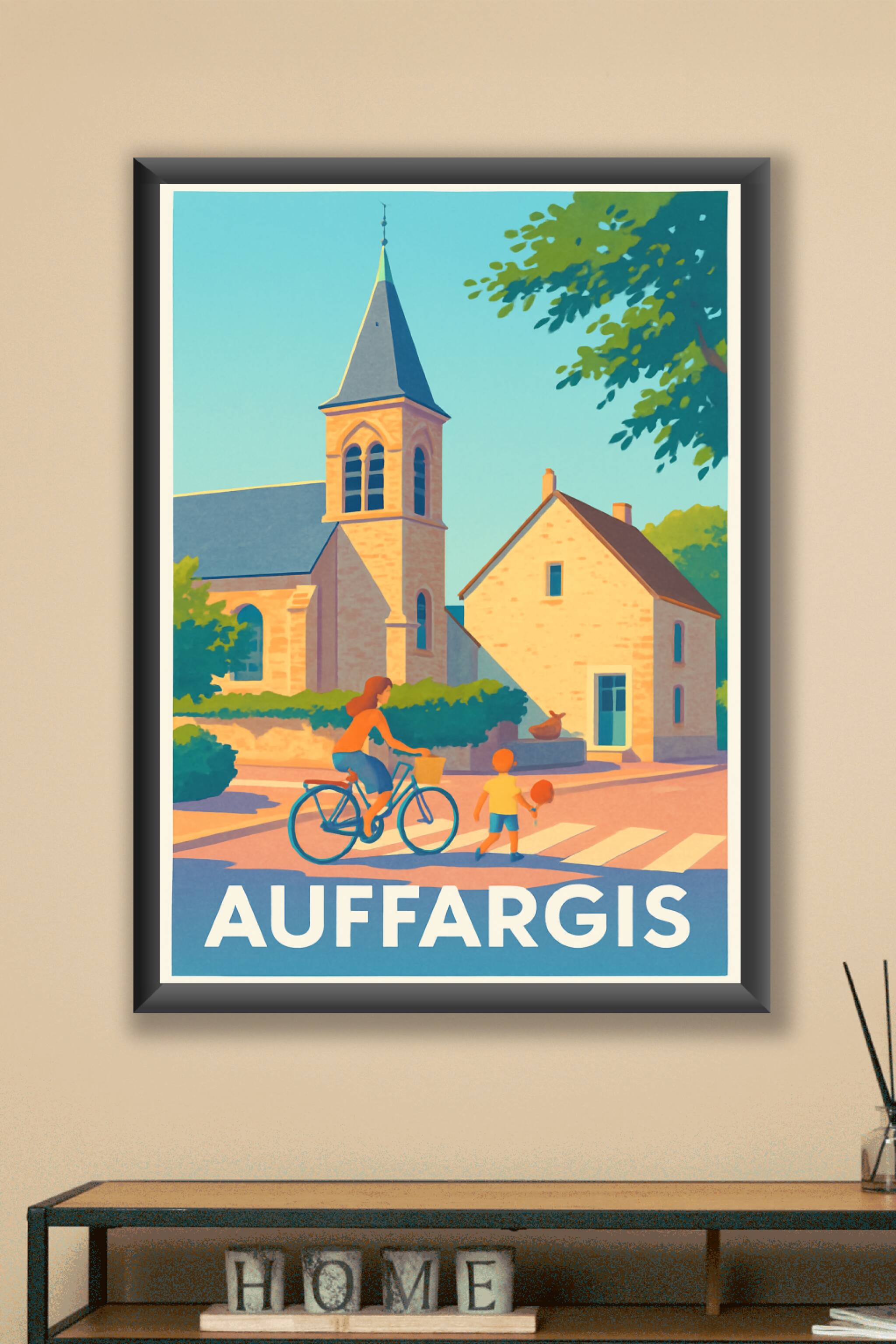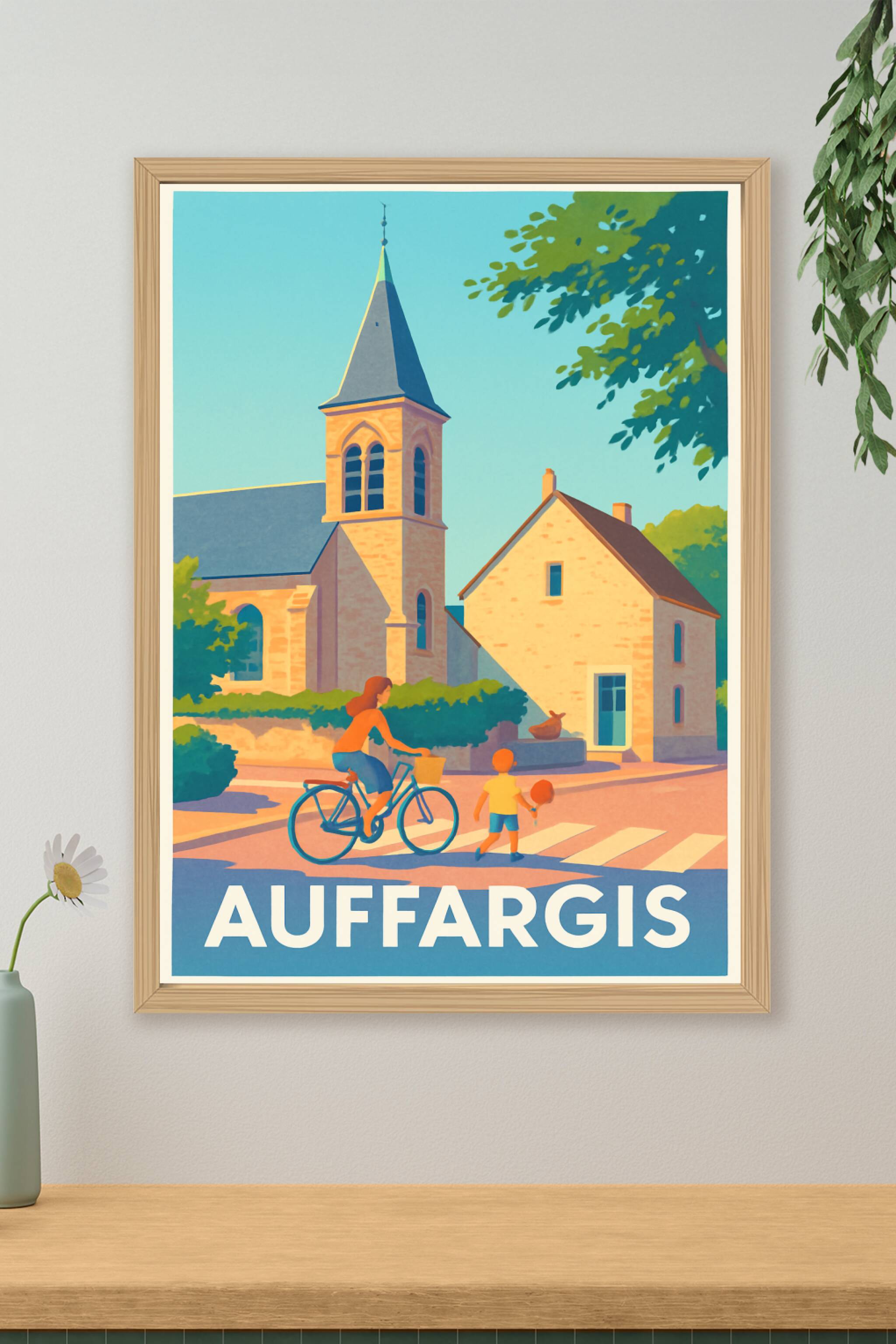 Découvrez l'ambiance paisible et bucolique d'Auffargis à travers cette affiche illustrée pleine de douceur, où la lumière d'un après-midi d'été met...