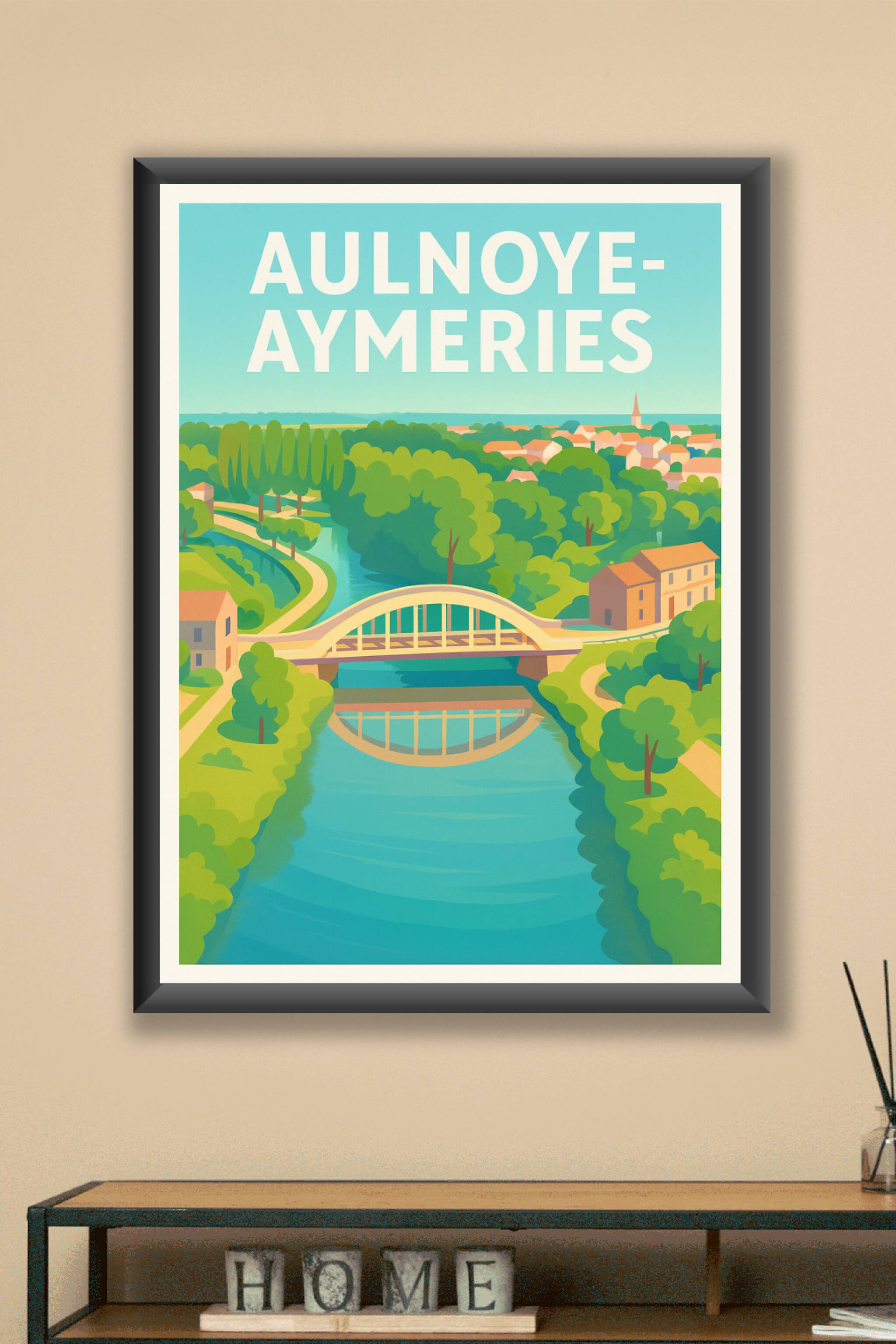 Découvrez la douceur de vivre à Aulnoye-Aymeries à travers cette affiche illustrée qui met en valeur ses paysages verdoyants, son pont emblématique...