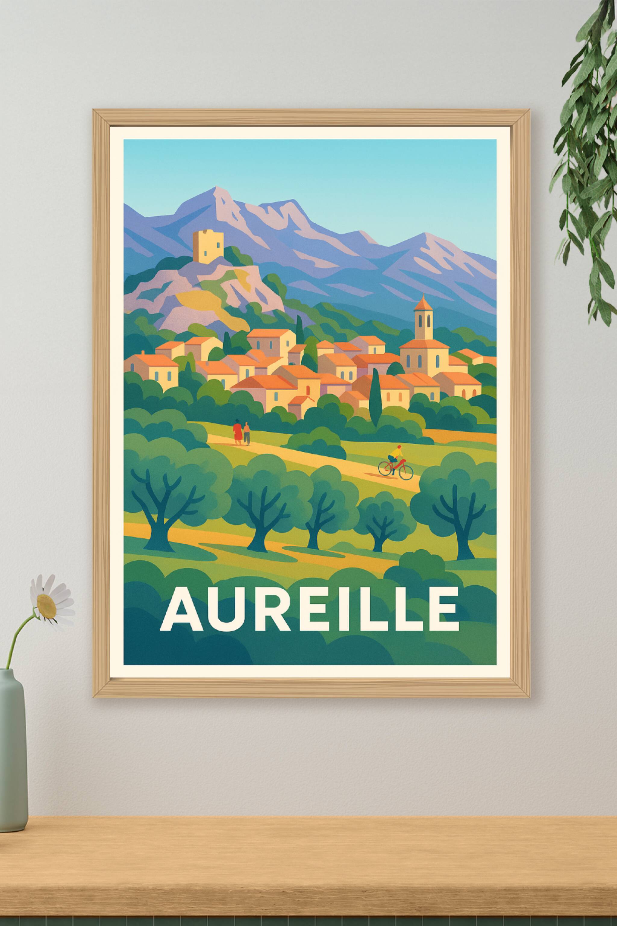 Découvrez l'affiche illustrée d'Aureille, un village pittoresque niché entre collines verdoyantes et montagnes majestueuses. Cette scène idyllique met en lumière les toits orangés, les oliviers et une douce promenade où cyclistes et promeneurs profitent d'un cadre naturel exceptionnel. Ce poster est imprimé en tirage "Fine Art" sur papier coton 305g, garantissant une qualité d'impression supérieure et des couleurs riches et durables. Disponible en formats A1 à A4, avec ou sans cadre, cette affiche s'intègre parfaitement dans tout intérieur pour apporter une touche de Provence authentique et apaisante. Offrez-vous ou à vos proches un souvenir raffiné, 100% fabriqué en France, pour embellir votre décoration.