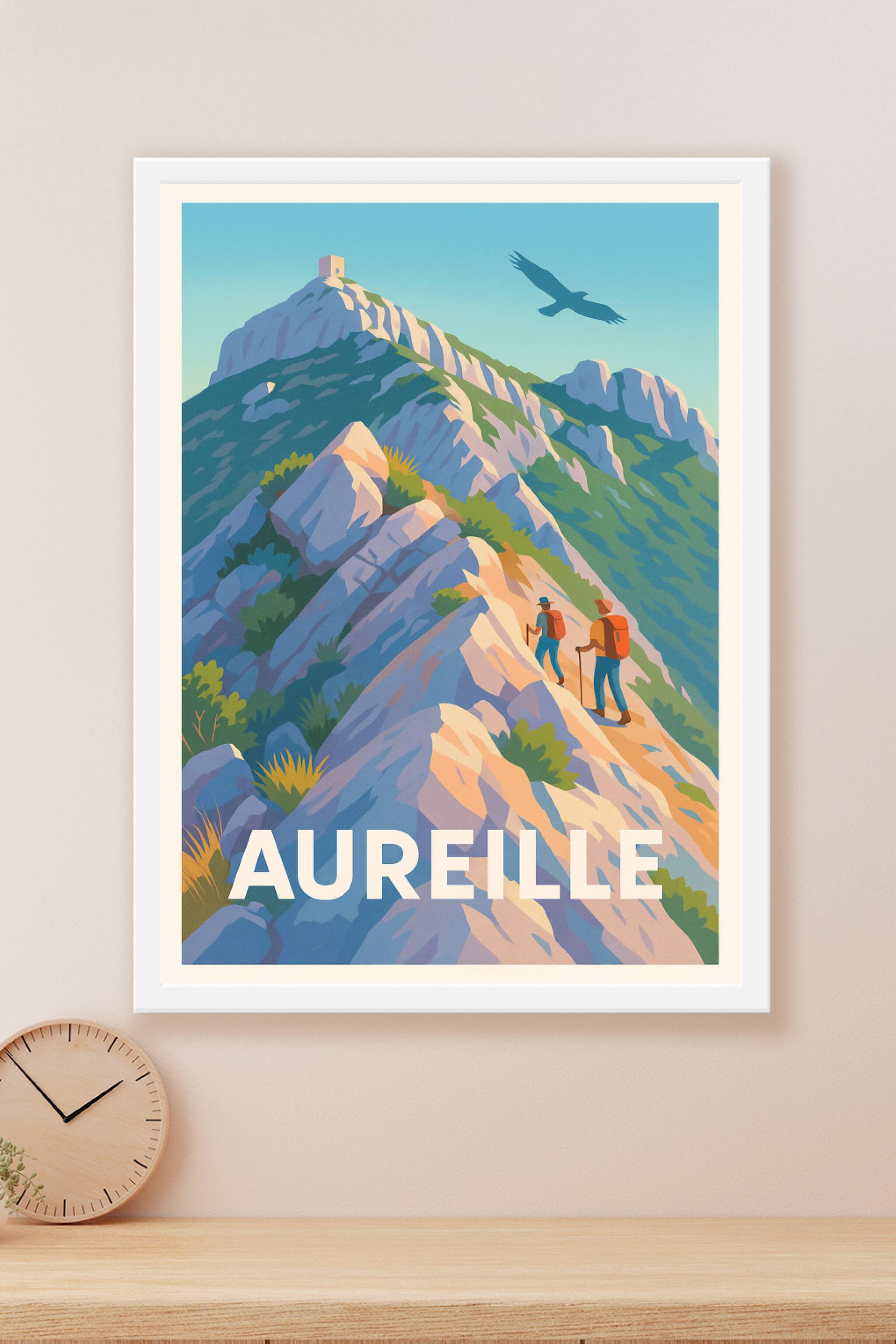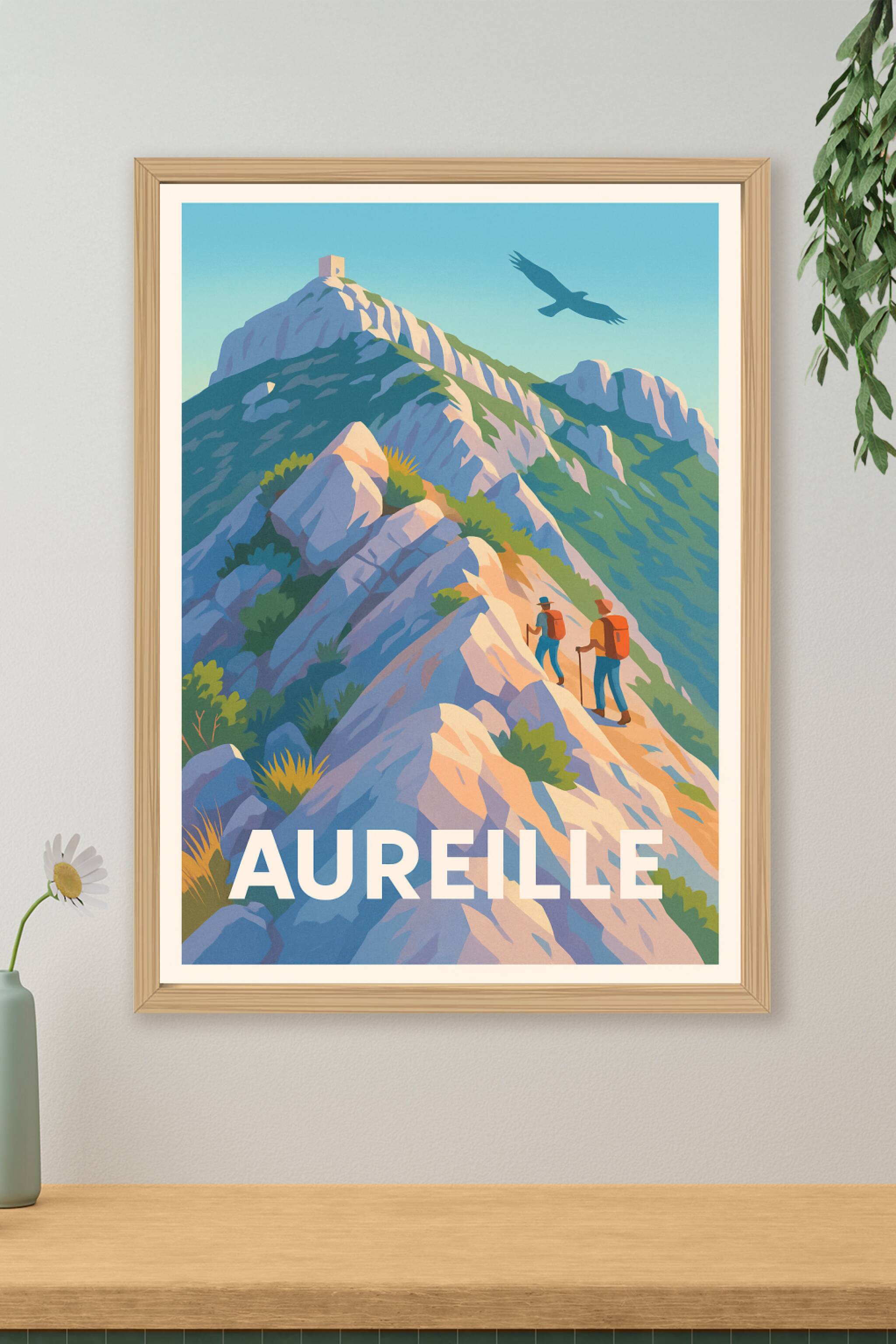 Découvrez la beauté sauvage d'Aureille avec cette affiche inspirante illustrant une randonnée au cœur des paysages rocheux. Parfaite pour les amour...