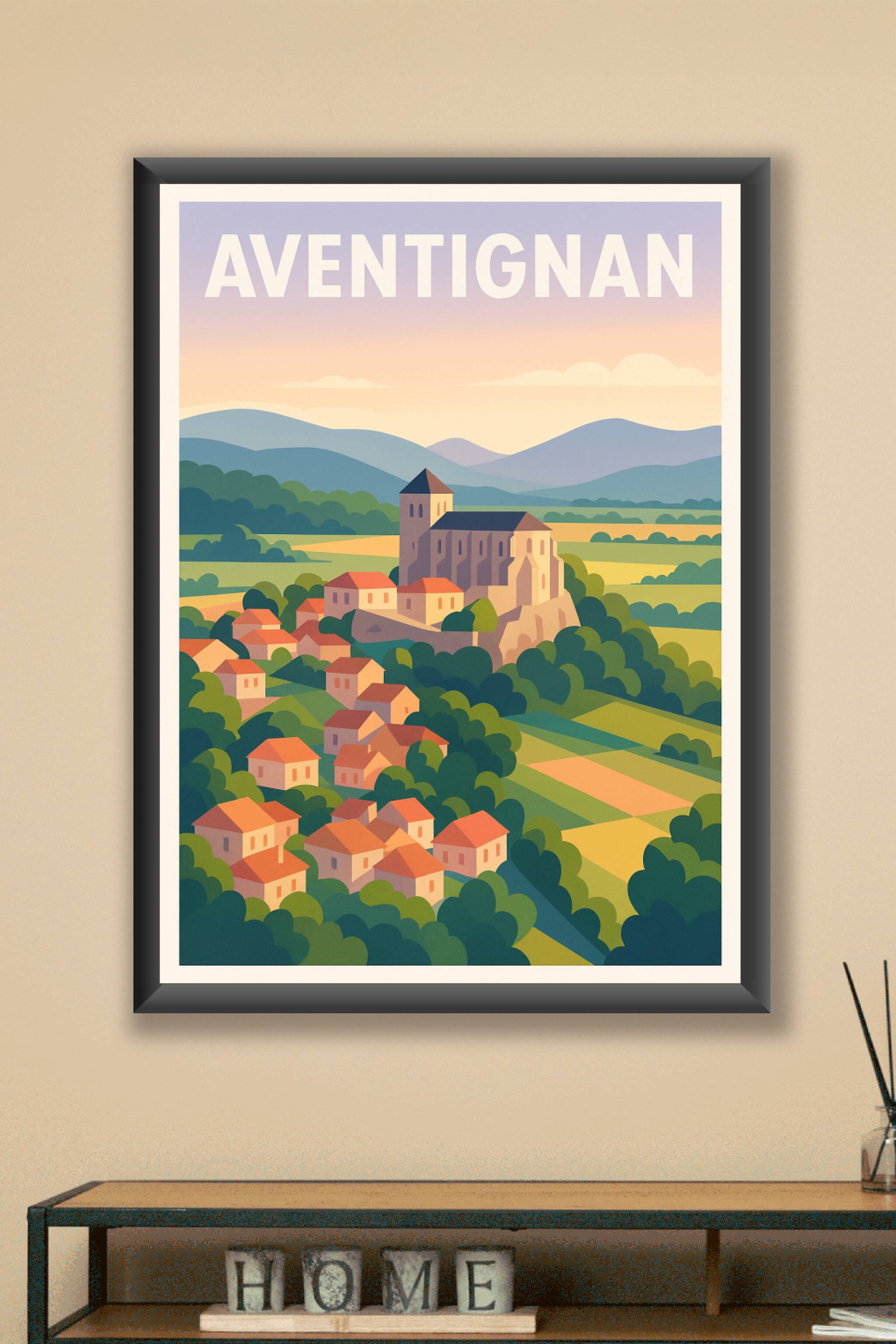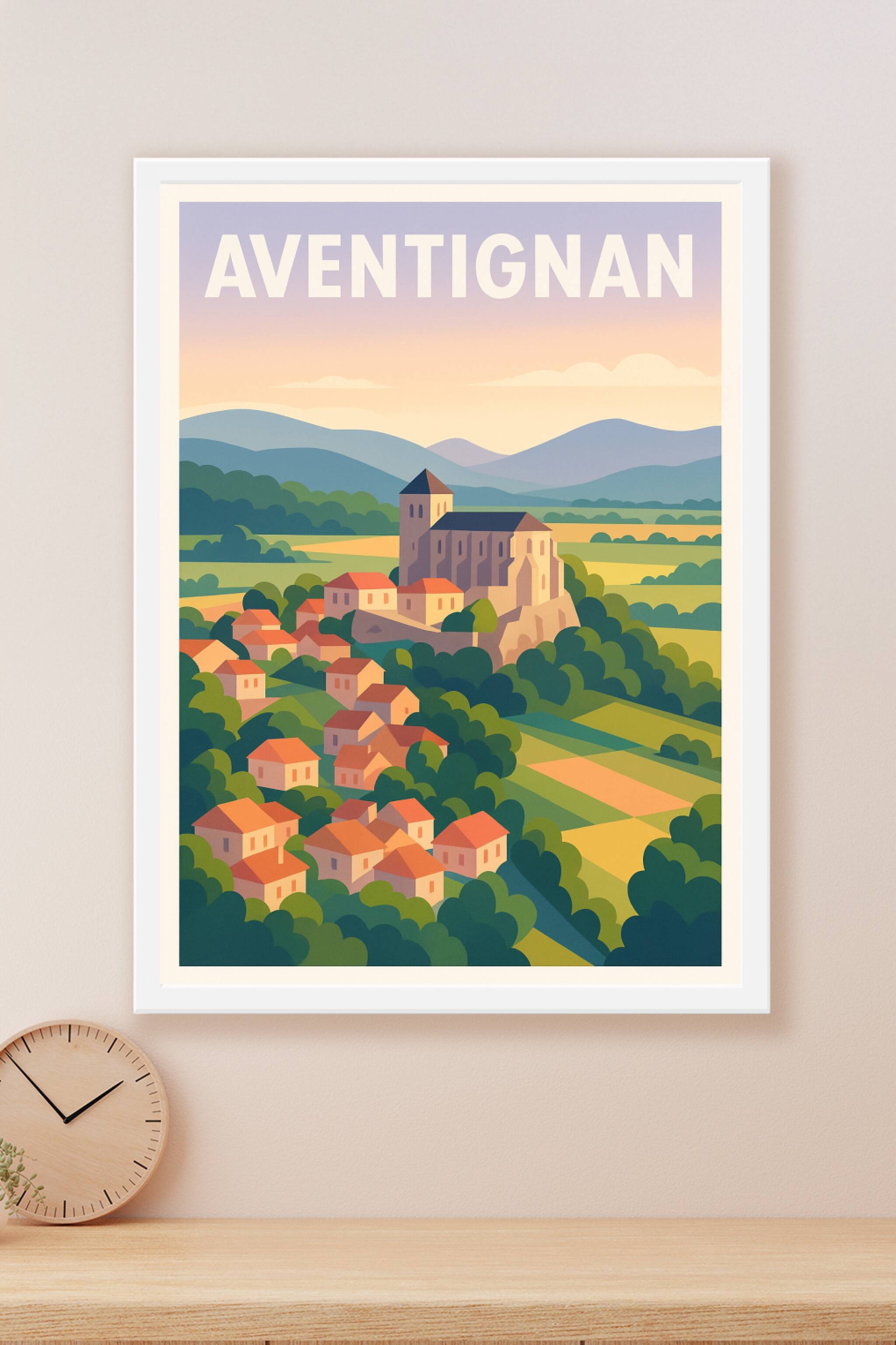 Découvrez la douceur de vivre d'Aventignan avec cette affiche illustrée mettant en scène ses collines verdoyantes et son village pittoresque. Ce poster, au style artistique épuré et aux couleurs apaisantes, saura apporter une touche de sérénité et d'authenticité à votre intérieur.Cette affiche est imprimée en tirage "Fine Art" sur papier 305g coton, garantissant une qualité d'impression exceptionnelle et des couleurs éclatantes. Disponible en formats A1 à A4, avec ou sans cadre, elle s'adapte parfaitement à toutes les décorations et espaces.Vivez ou faites vivre un souvenir de la charmante région d'Aventignan grâce à ce poster premium, 100% fabriqué en France, idéal pour décorer votre maison ou offrir un cadeau unique.