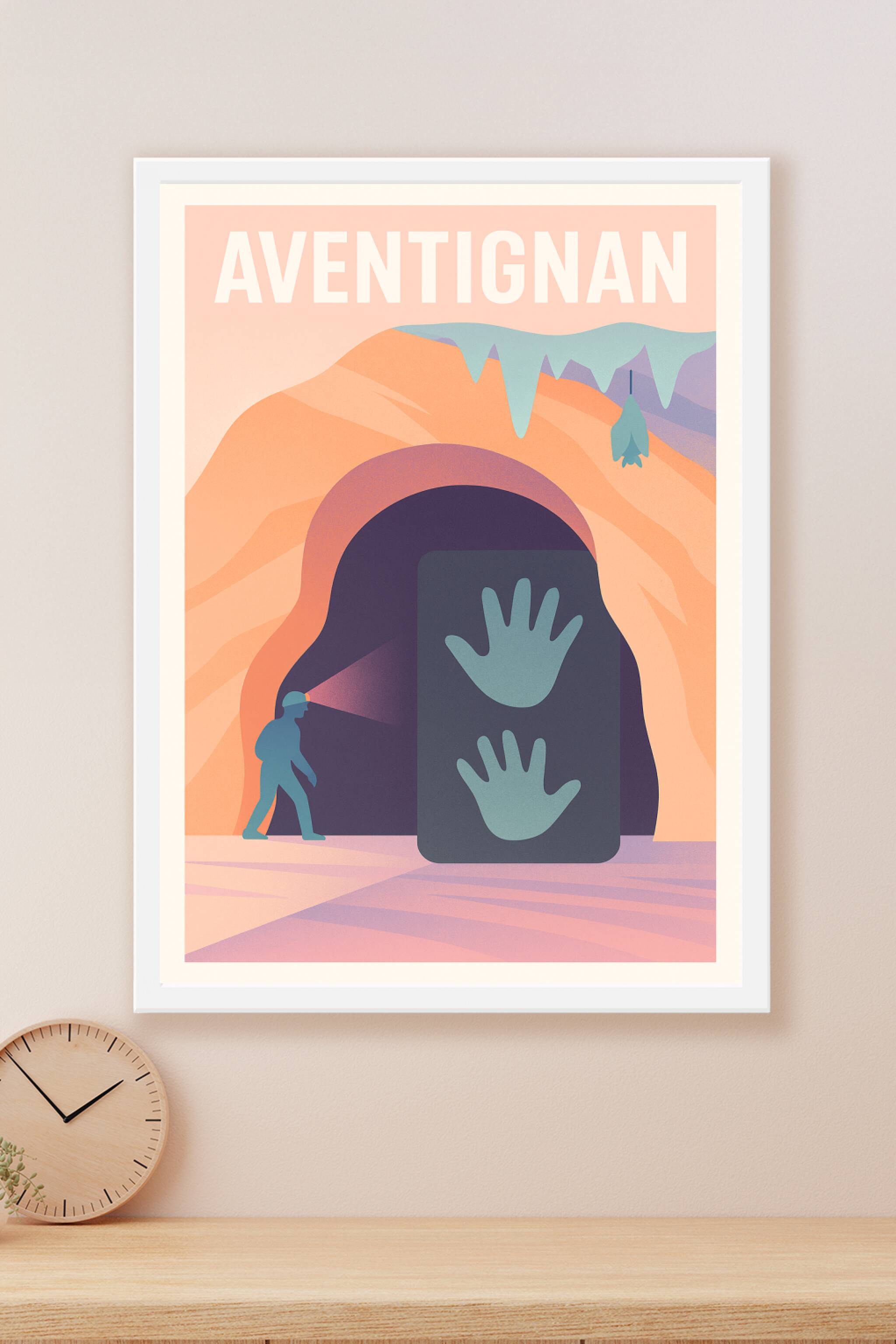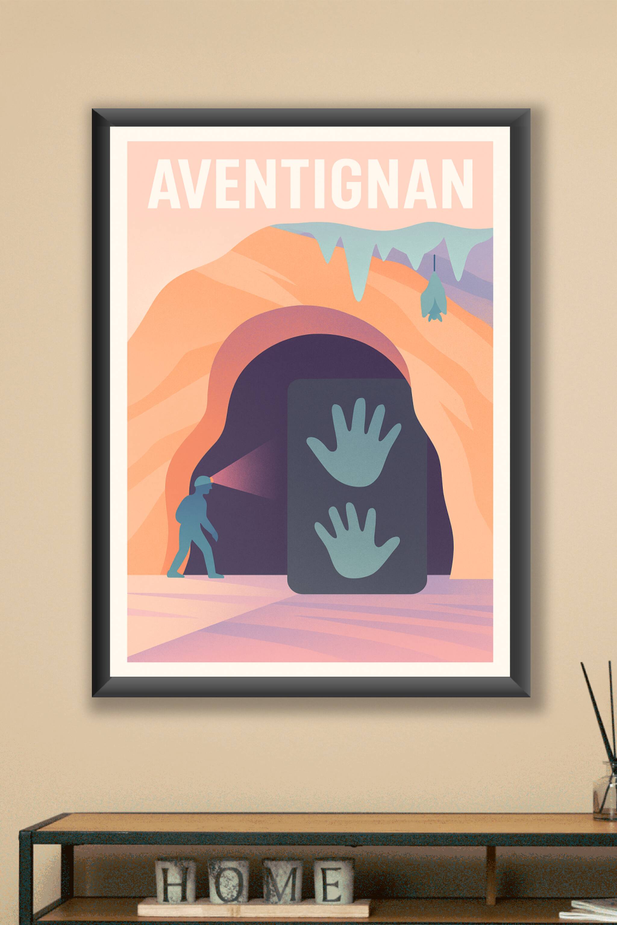 Découvrez l'ambiance mystérieuse et captivante d'Aventignan avec cette affiche illustrée mettant en scène une exploration souterraine. L'entrée d'une grotte aux teintes chaudes et apaisantes révèle un mystérieux panneau aux empreintes de mains, symbole de l'histoire préhistorique de la région.Ce poster est imprimé en tirage "Fine Art" sur papier 305g coton, garantissant une qualité d'impression exceptionnelle et une tenue durable. Disponible en formats A1 à A4, avec ou sans cadre, cette affiche s'intégrera parfaitement à votre décoration intérieure ou constituera un cadeau original pour les passionnés d'aventure et de patrimoine. Profitez d'une finition premium, 100% fabriquée en France, pour sublimer votre intérieur avec ce visuel unique et évocateur.