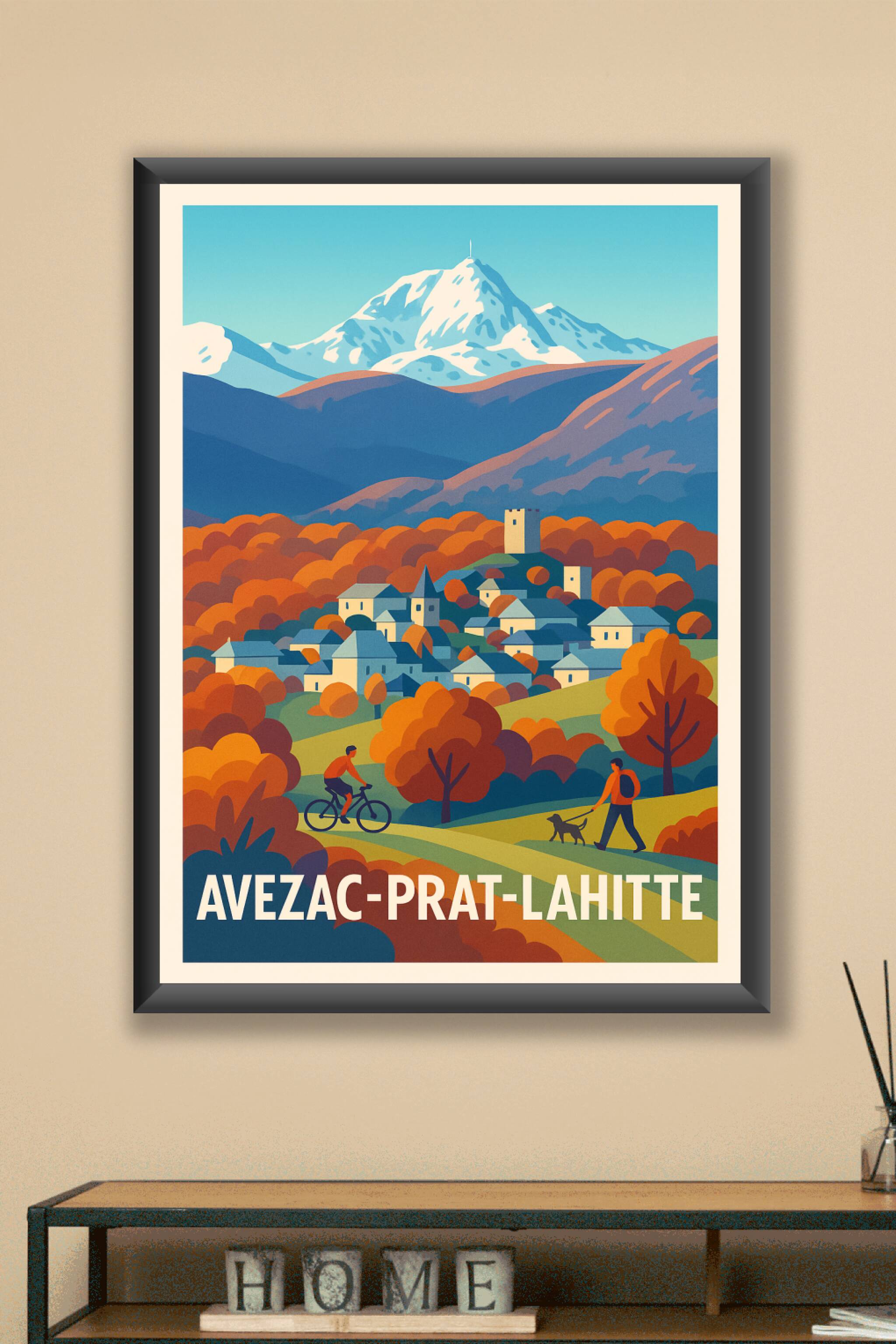 Découvrez la quiétude et la beauté naturelle d'Avezac-Prat-Lahitte avec cette affiche illustrée qui met en avant ses paysages pittoresques et ses couleurs automnales vibrantes, sur fond des majestueuses Pyrénées enneigées. Ce poster, au style rétro et chaleureux, invite à une balade contemplative, entre village authentique et randonnée pédestre ou à vélo. Disponible en tirage "Fine Art" sur papier 305g coton pour une finition haut de gamme, cette affiche est imprimée avec une qualité d'impression exceptionnelle 100% fabriquée en France. Offrez-vous ce souvenir unique en formats du A1 au A4, avec ou sans cadre, pour décorer votre intérieur ou faire un cadeau raffiné aux amoureux de la nature et des villages authentiques.