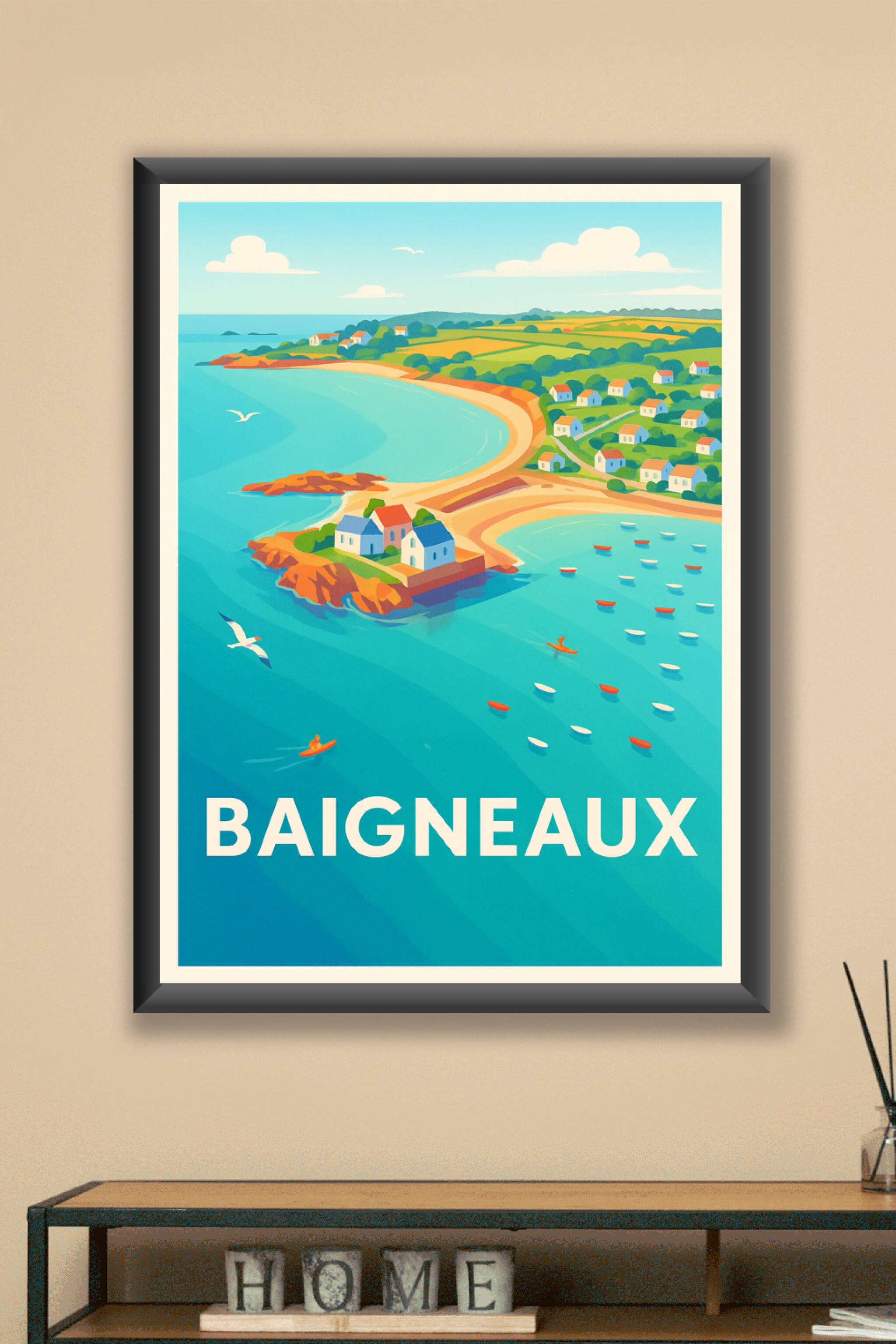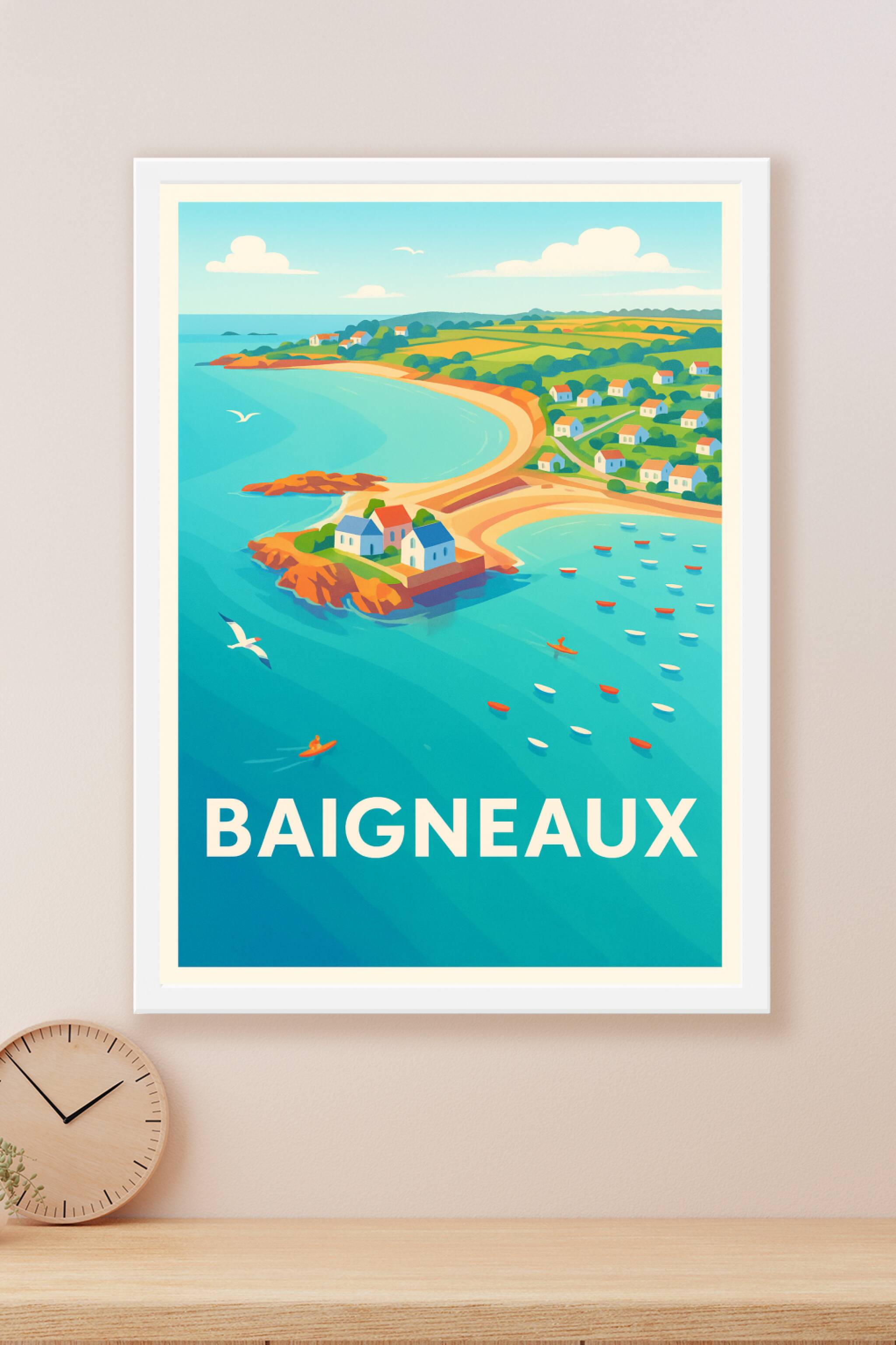 Découvrez la beauté paisible de Baigneaux avec cette affiche illustrée qui capture l'essence d'un littoral baigné de soleil et de sérénité. Ce post...
