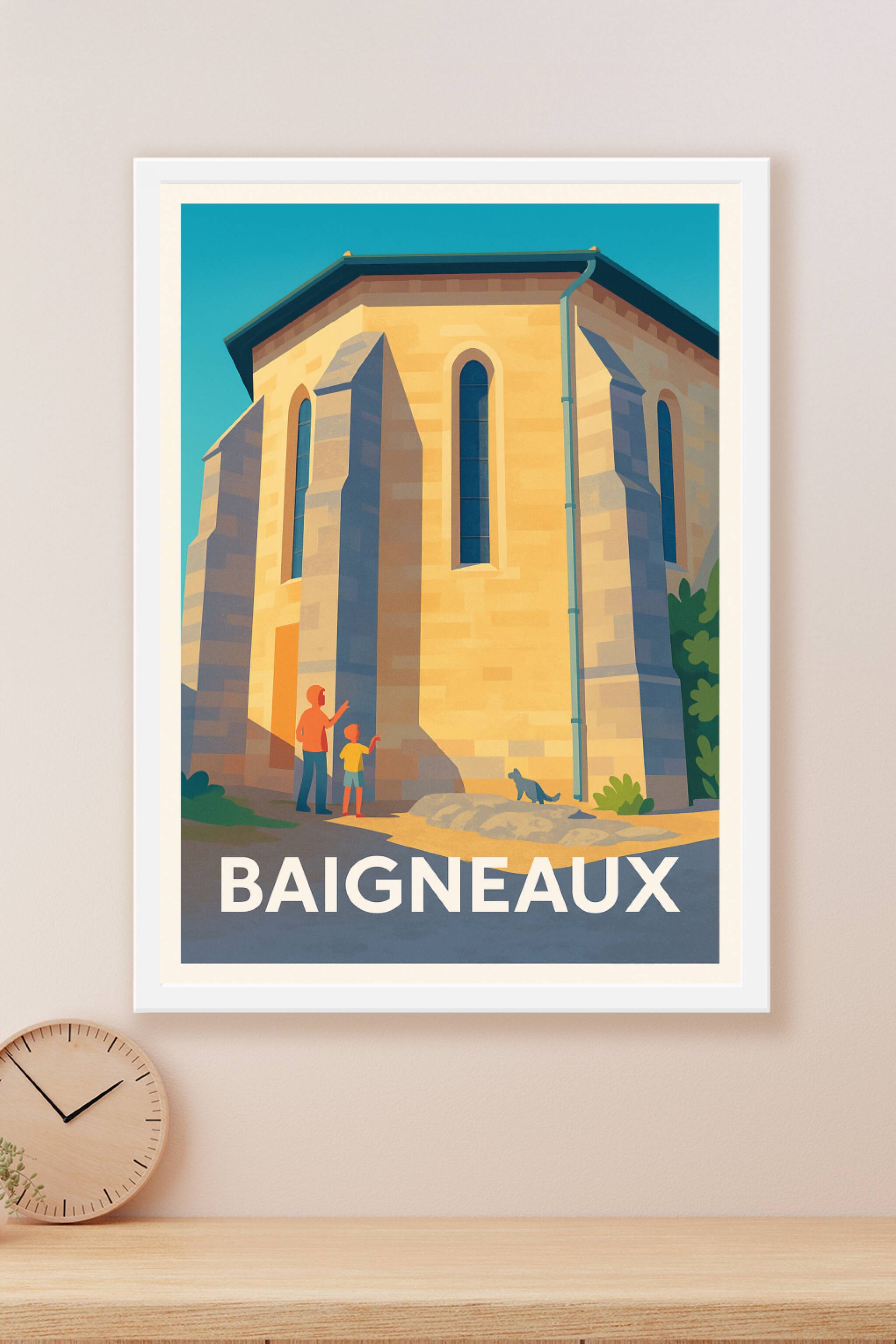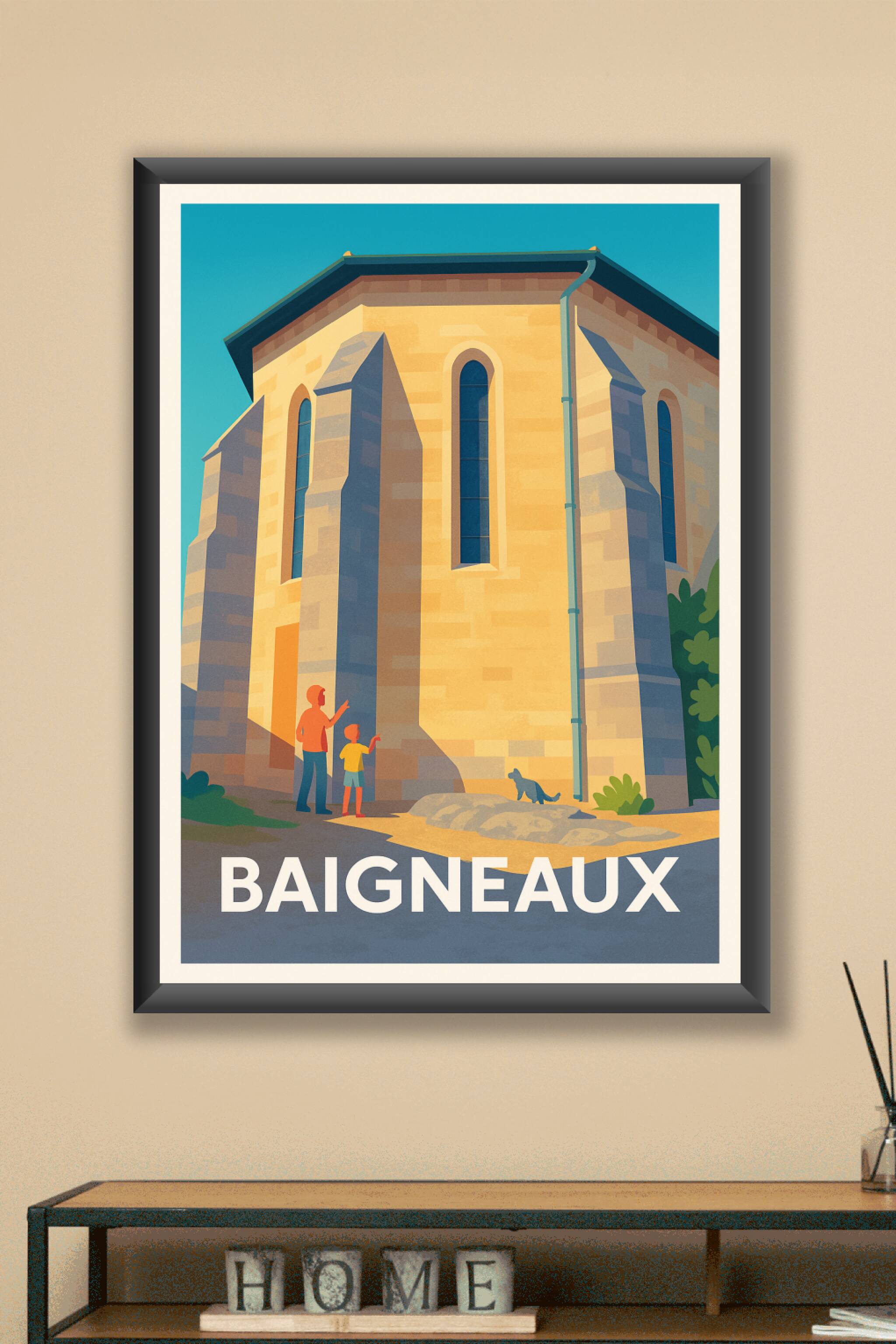 Découvrez l'élégance intemporelle de Baigneaux à travers cette affiche illustrée, mettant en lumière la lumière chaude et les lignes authentiques d...