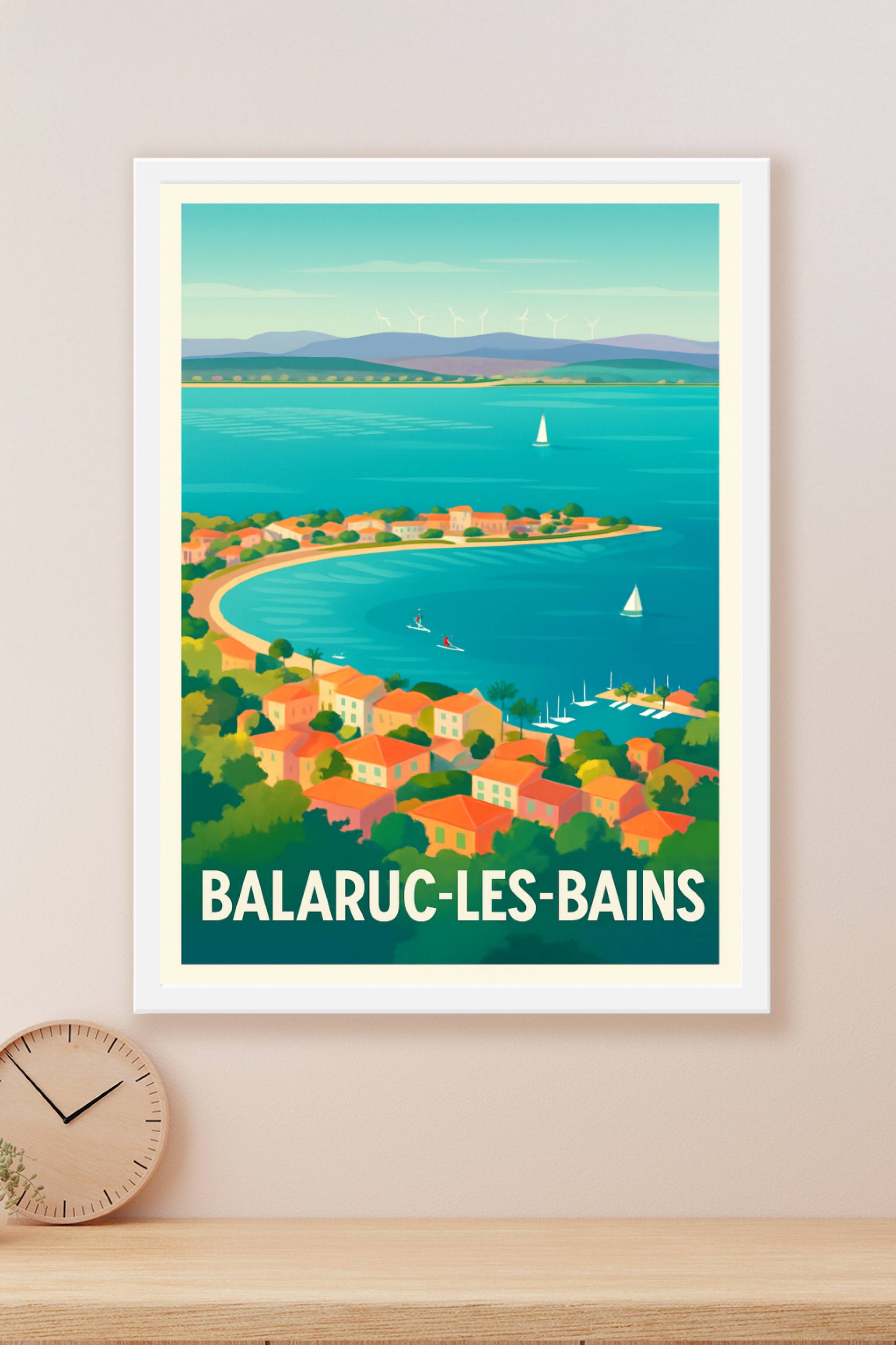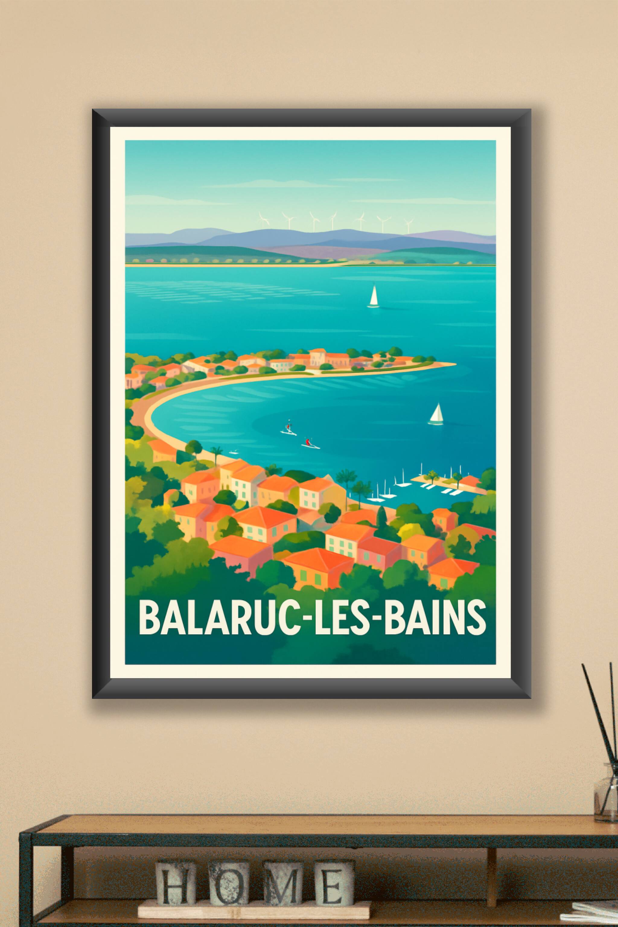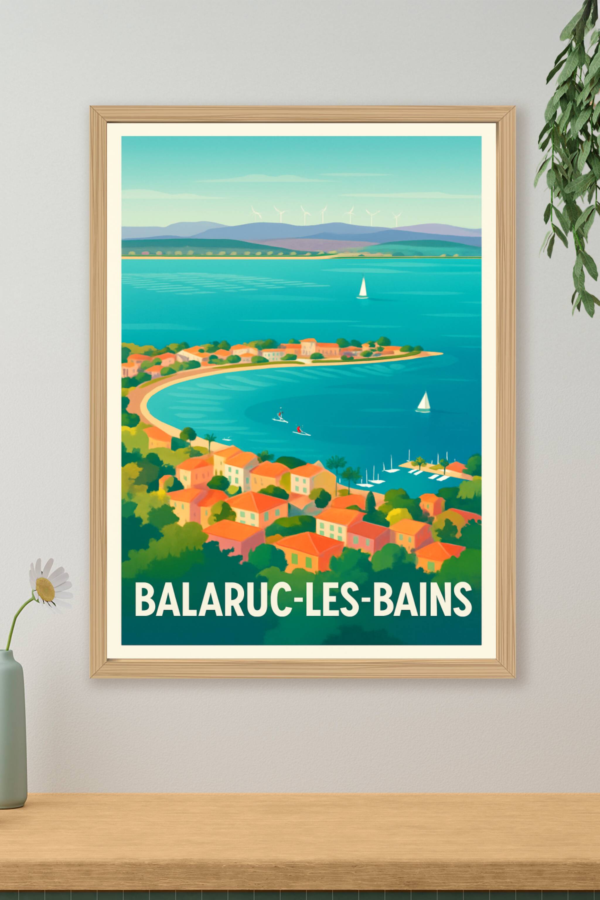 Découvrez la douceur de vivre méditerranéenne avec cette affiche illustrée de Balaruc-les-Bains, charmante station balnéaire nichée au bord de la l...