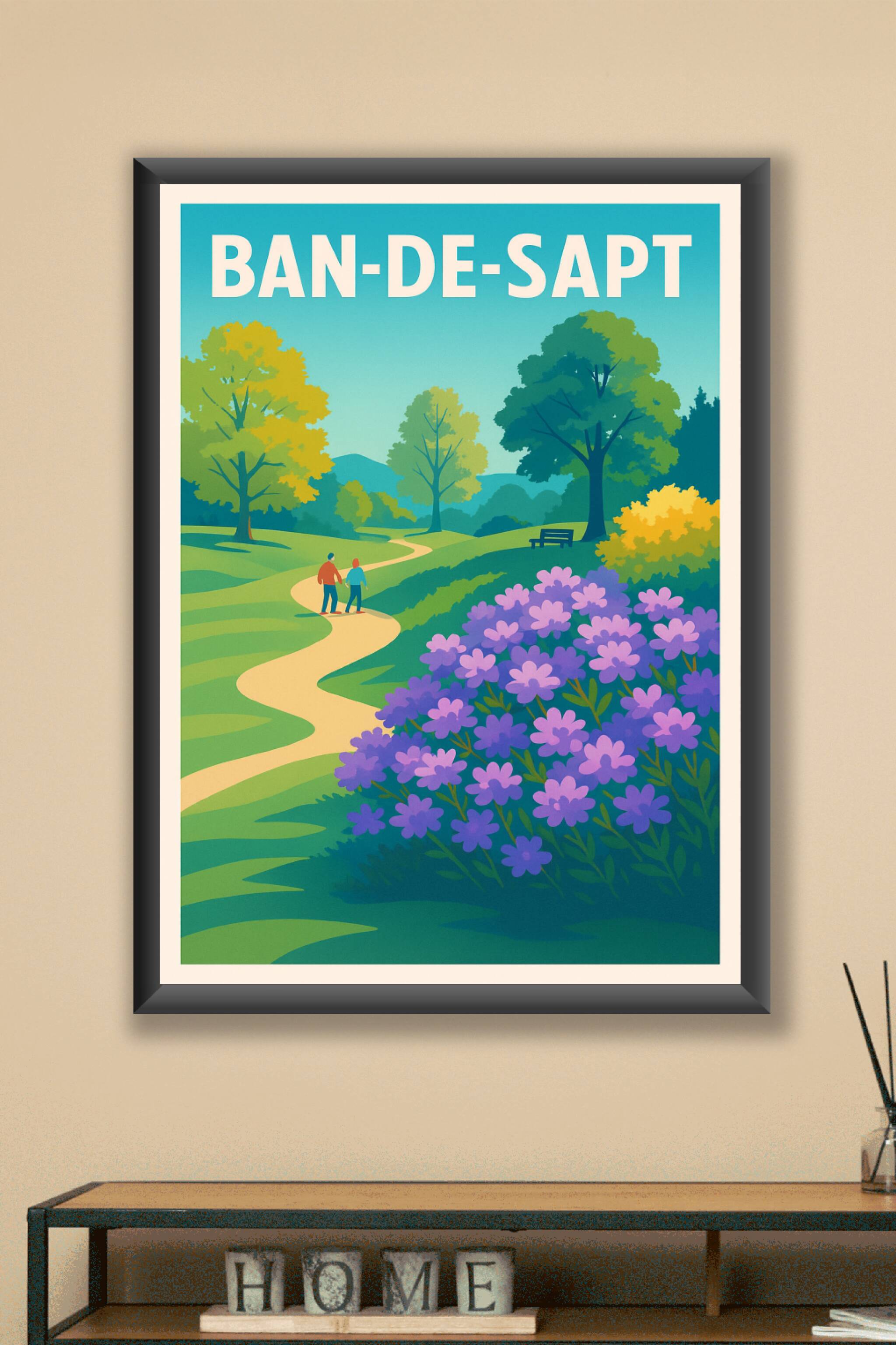 Découvrez la beauté sereine de Bandol mise en valeur sur cette affiche au style graphique doux et coloré. Ce poster illustre un sentier sinueux au cœur d'un paysage verdoyant, parsemé de fleurs violettes et bordé d'arbres paisibles, parfait pour offrir une atmosphère apaisante à votre intérieur.Cette affiche est imprimée en tirage "Fine Art" sur un papier 305g coton de haute qualité pour garantir des couleurs vives et un rendu durable. Disponible en formats A1 à A4, avec ou sans cadre, ce poster s'adapte à tous les espaces et styles de décoration.Apportez une touche élégante et naturelle à votre décoration grâce à cette affiche Bandol, idéale pour les amoureux de la nature et des moments de détente. Imprimée en France, cette pièce unique respecte les plus hauts standards de qualité.