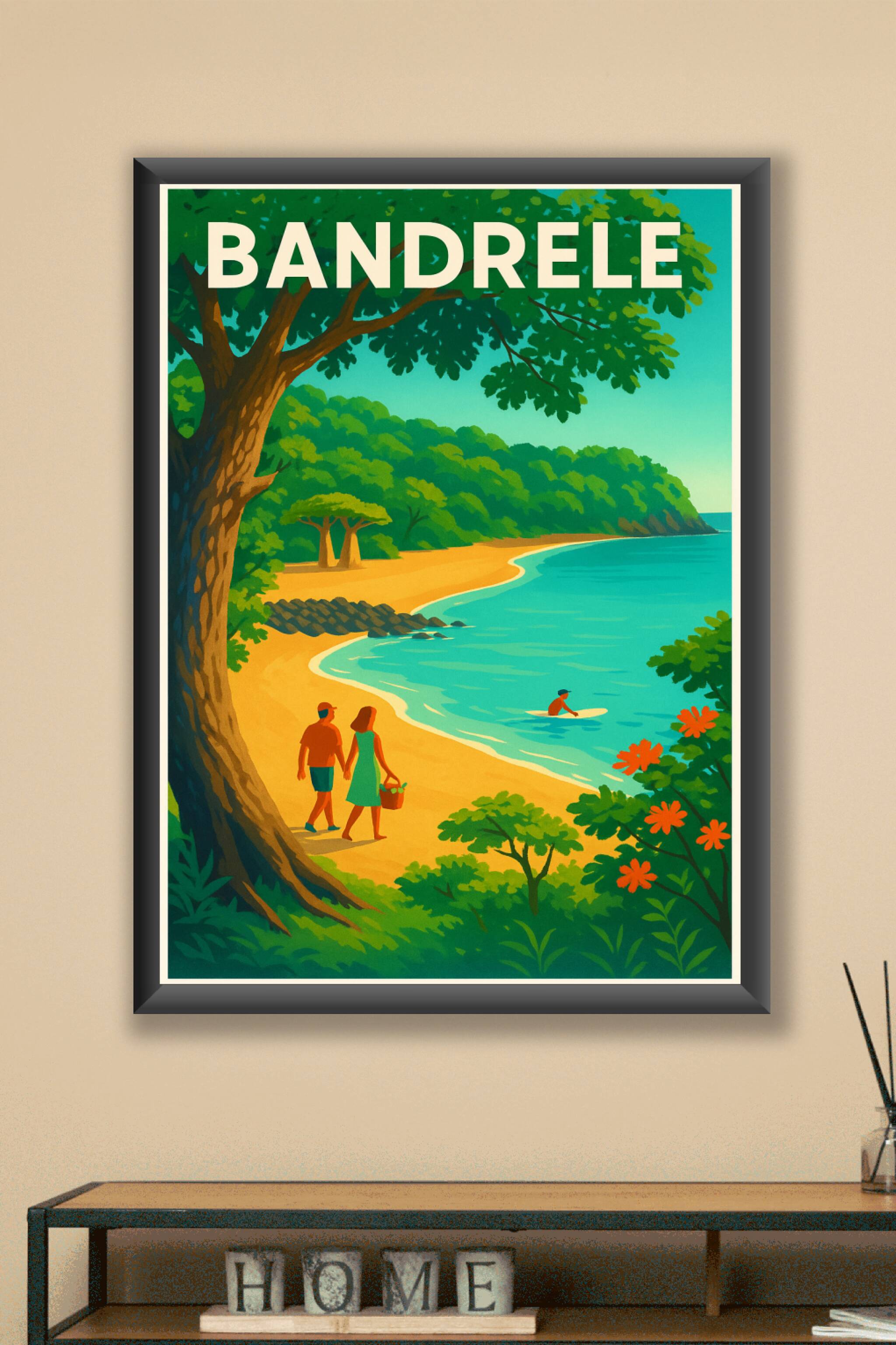 Découvrez la beauté sauvage de Bandrélé avec cette affiche illustrée qui capture une scène paisible au bord de la mer. Entre plages dorées, eaux tu...